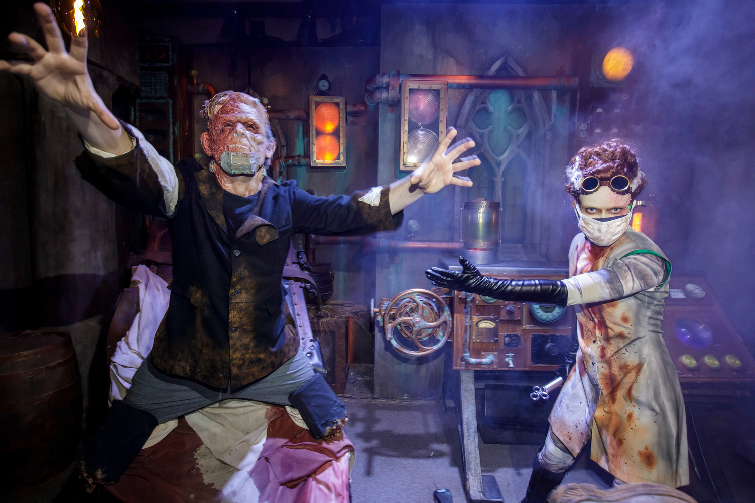 What I find the most interesting is how The Bride spends all of 5 minutes in the original 1935 film, but has quickly turned into this full fledged bad ass character for this story. It makes me want to see more from the character and continue the series of tracks created by Slash for the event. Speaking of which, I’m happy to admit when I’m wrong and I was incredibly wrong about the music. When it was announced that Slash was doing the music, I wasn’t overly excited. I thought other music could have easily done it just as well, but I was so wrong. The music Slash created for the maze and scare zone not only elevated the experience but helped progress the story in ways I thought was impossible. We desperately need all the music Slash has created for the event on a vinyl release! We’d pay a good amount of money for that!