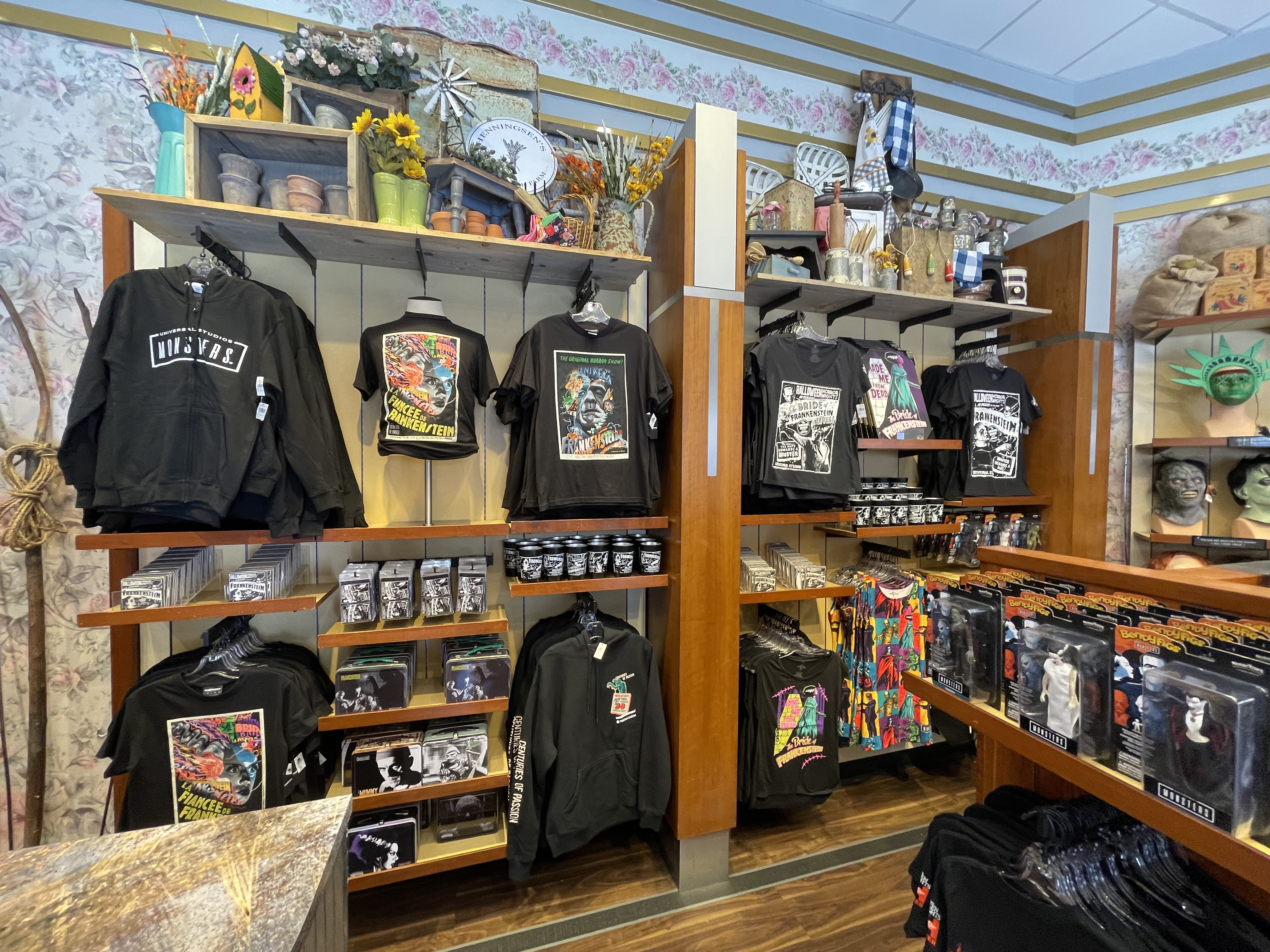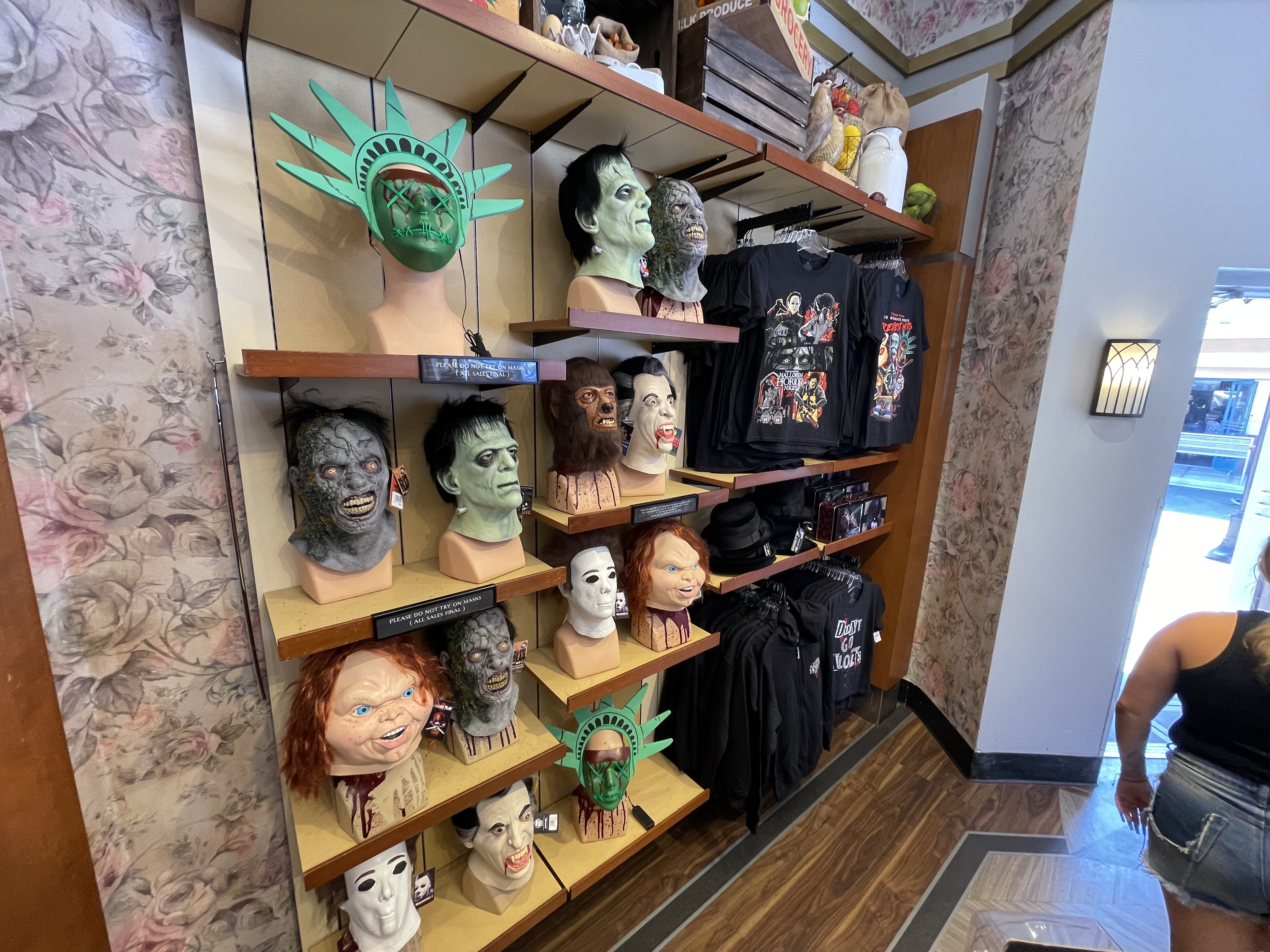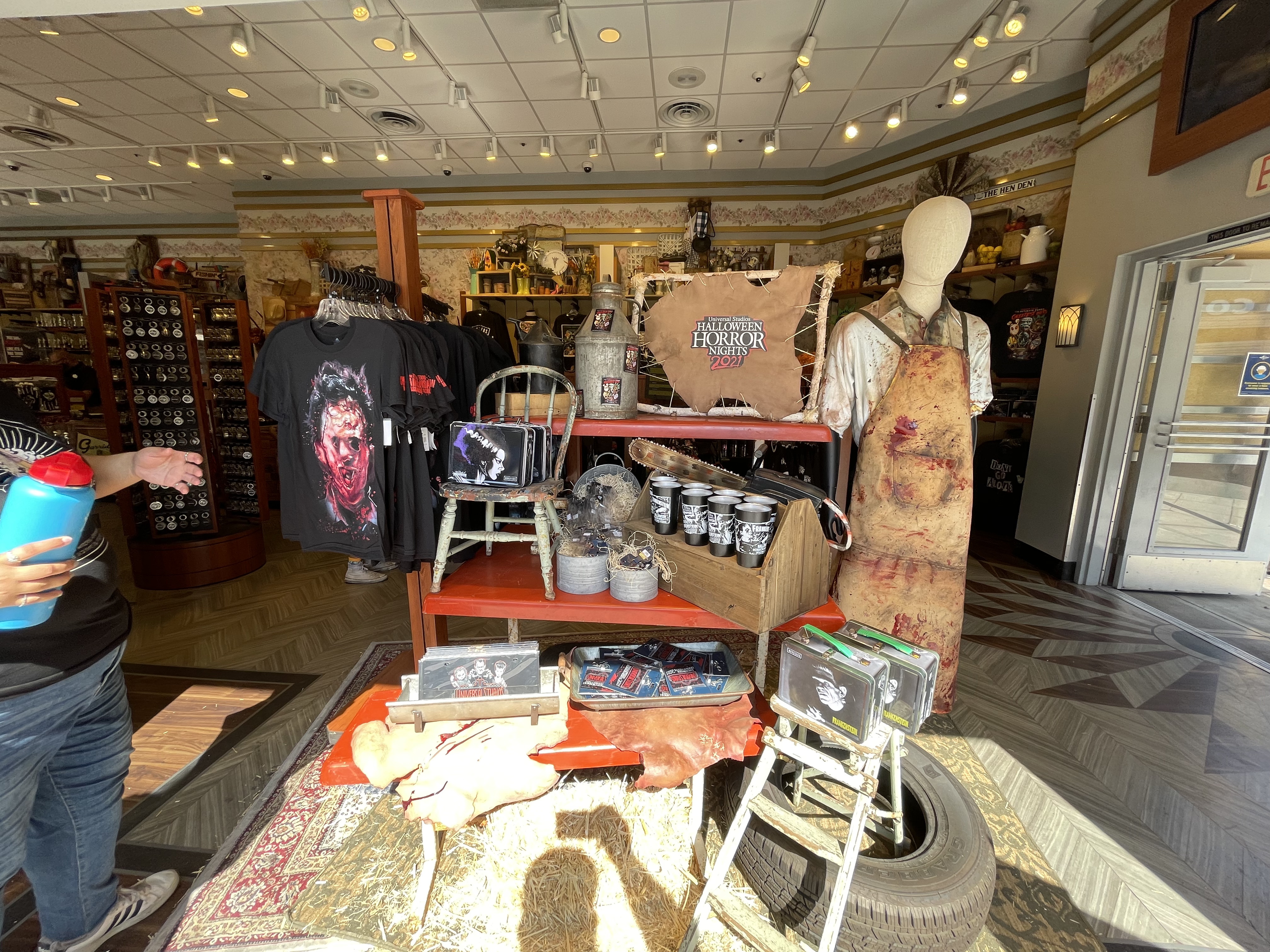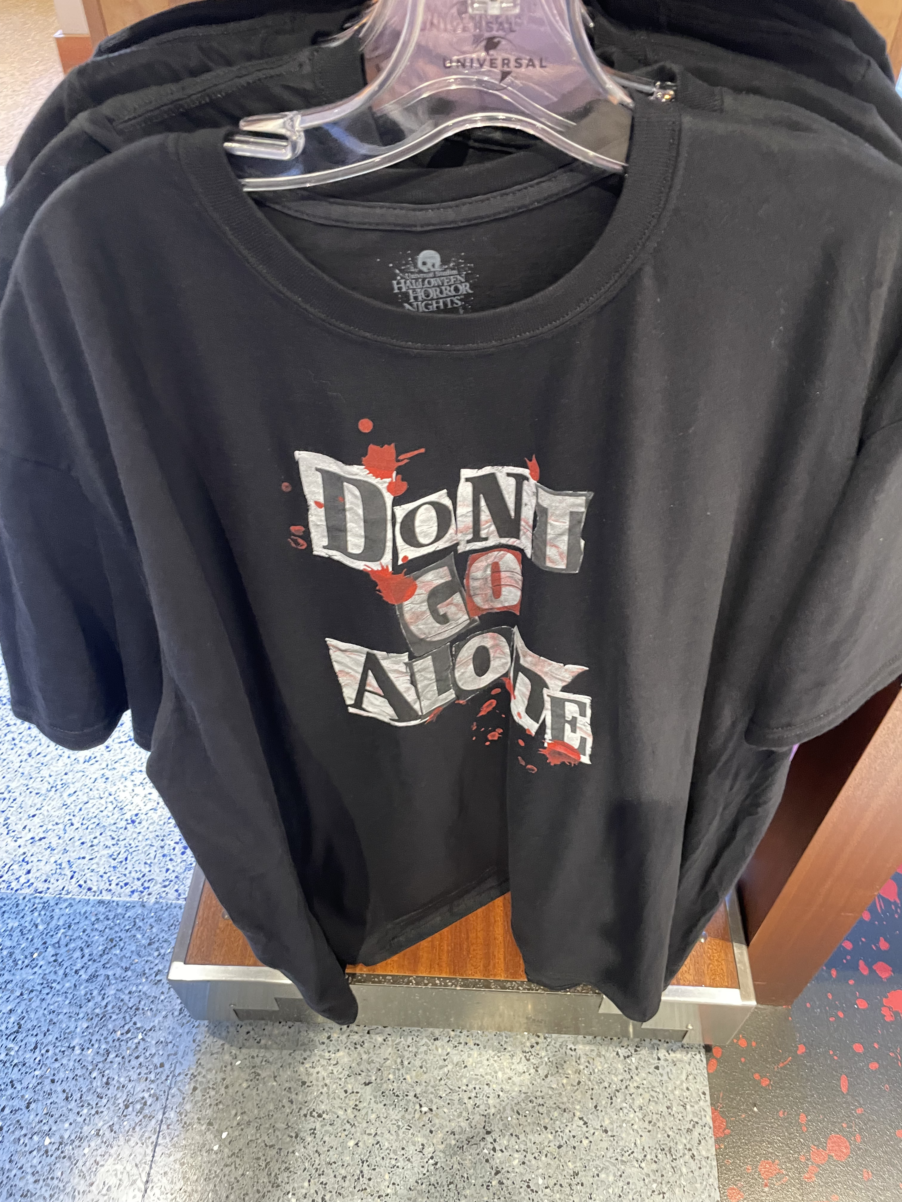 We did notice this year that USH was utilizing the classic Universal Studios Logo a lot and even with its HHN merchandise. We love to see the black, red, and grey version of the logo with some of our favorite characters looming behind. They even released a USH AP shirt for HHN as well! Sadly, they were out of my size when I was attending the event.