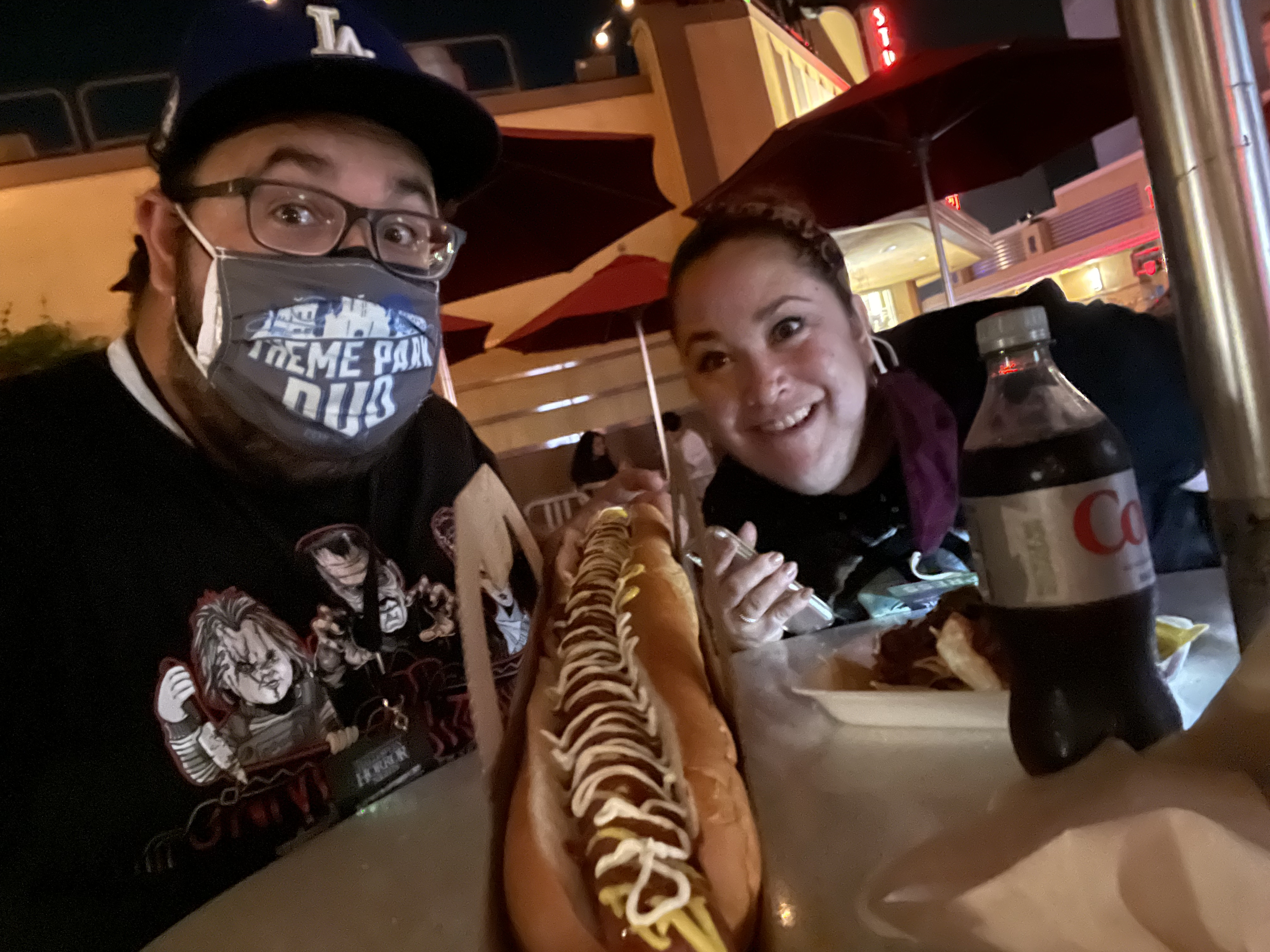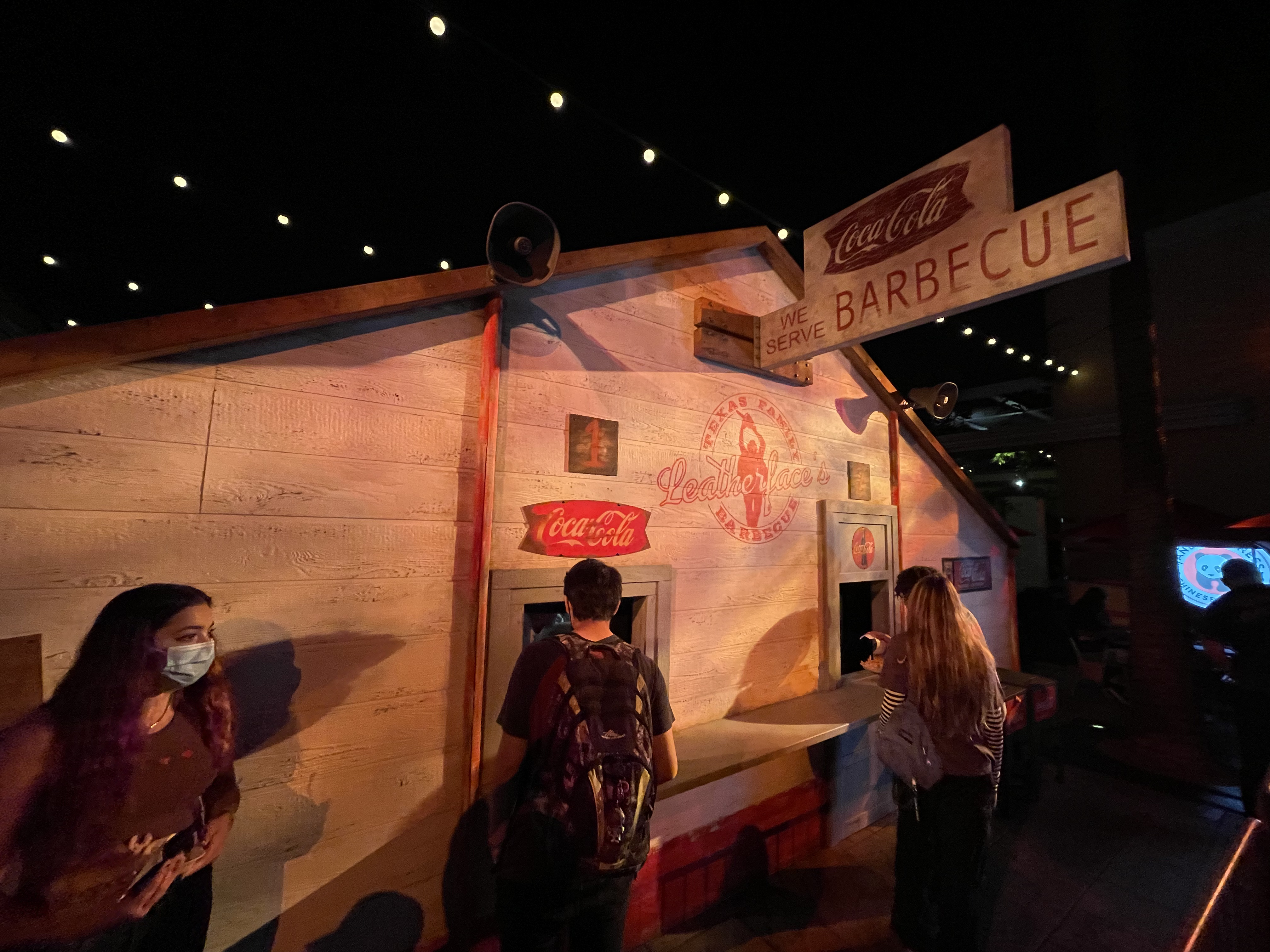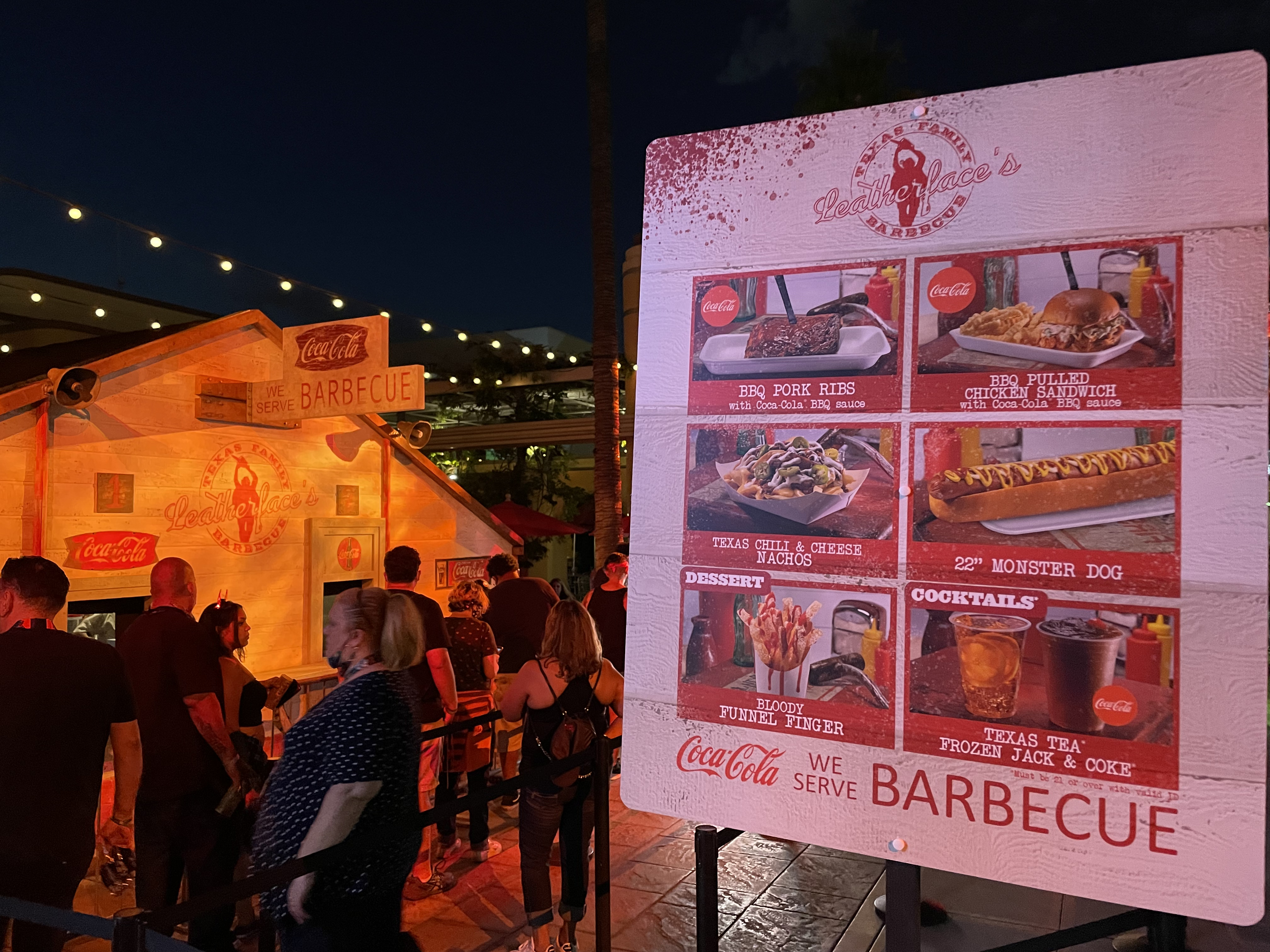 Our next stop was at Leatherface’s Texas Family BBQ on the lower lot. Here we bought the 22 inch Hot Dog and Nachos! Both were really good, but we had to share the hot dog because it was just too damn big. One small detail that I loved but also equally grossed me out is that the nachos come on a styrofoam plate similar to how raw meat is packed at the super market.
