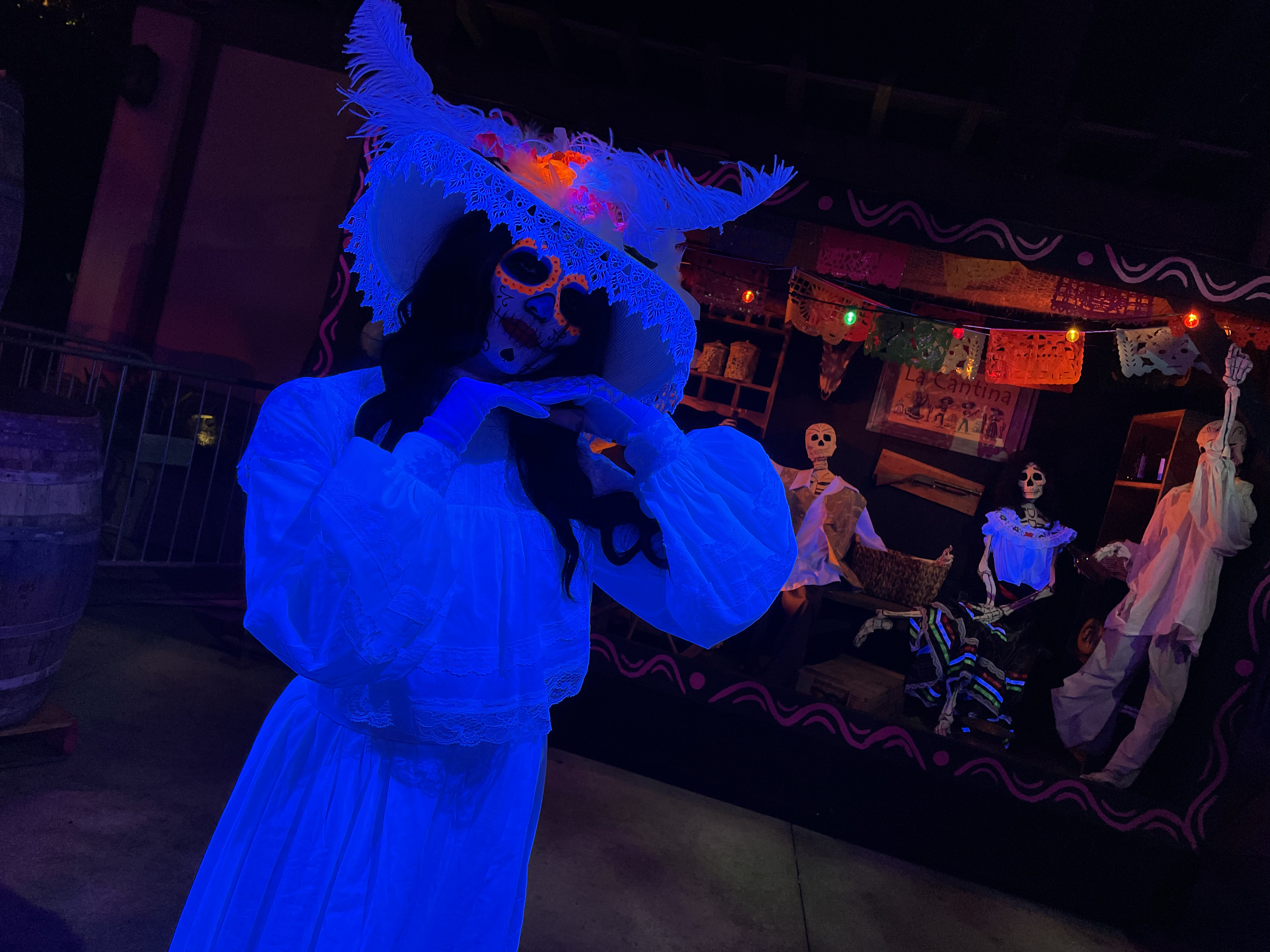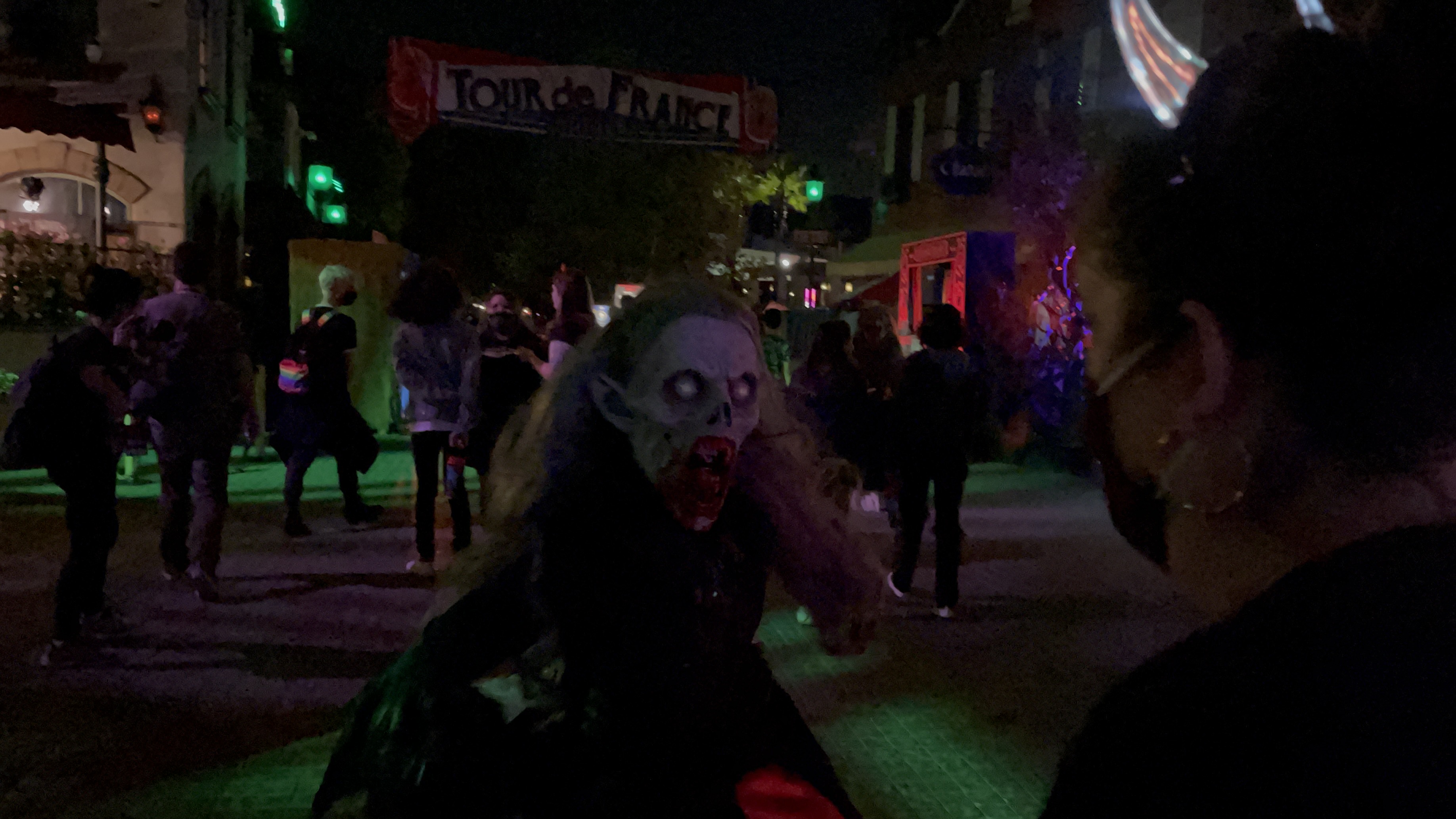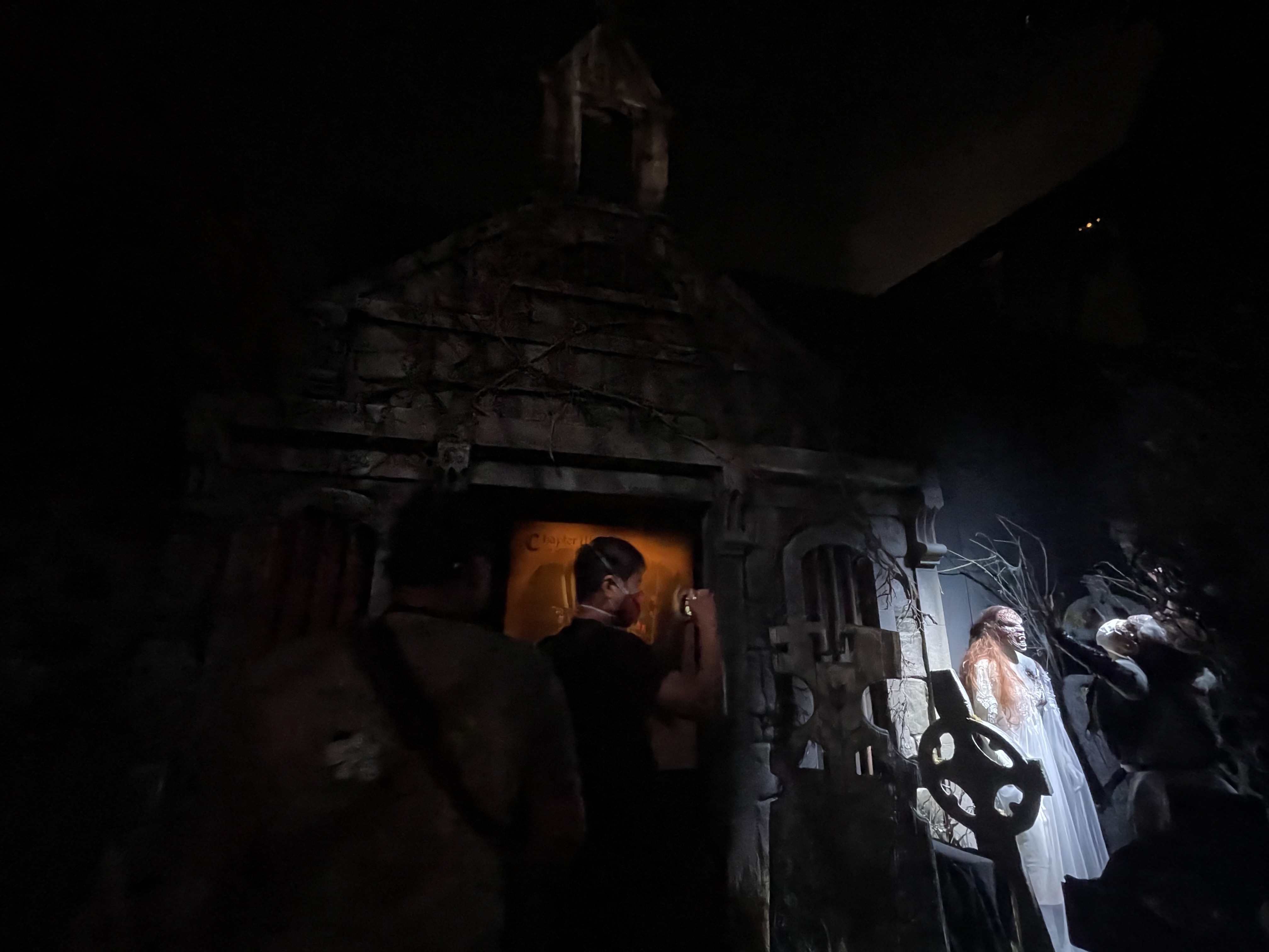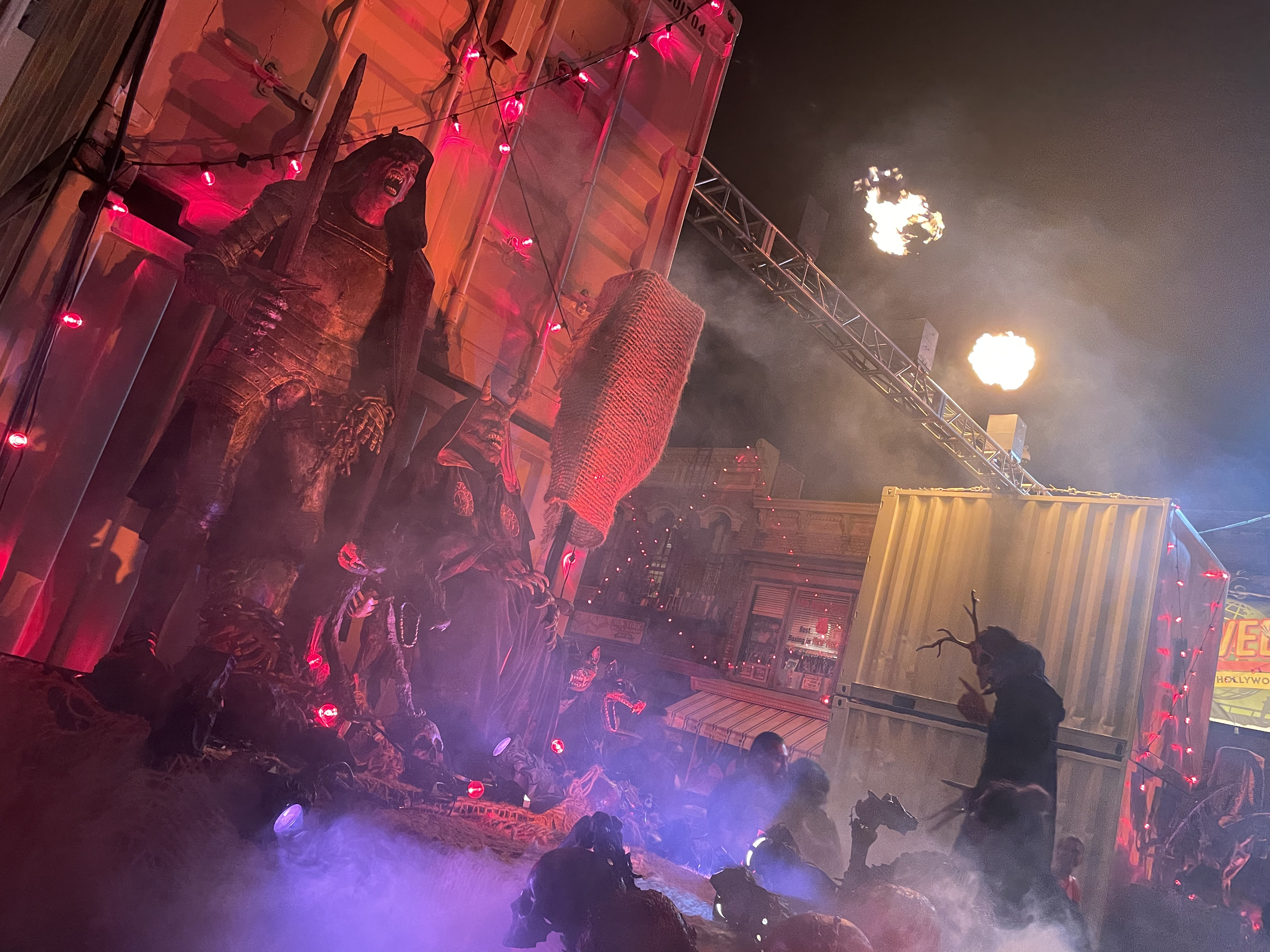 This is hands down the best zone of the night! It’s because the props, costumes, music, fog and tone all worked harmoniously together to create a wonderful experience. Even better, you didn’t need to go through the maze this year to experience the zone! The only issue we see is there really isn’t a reason to head in that direction, so people might easily miss it.
