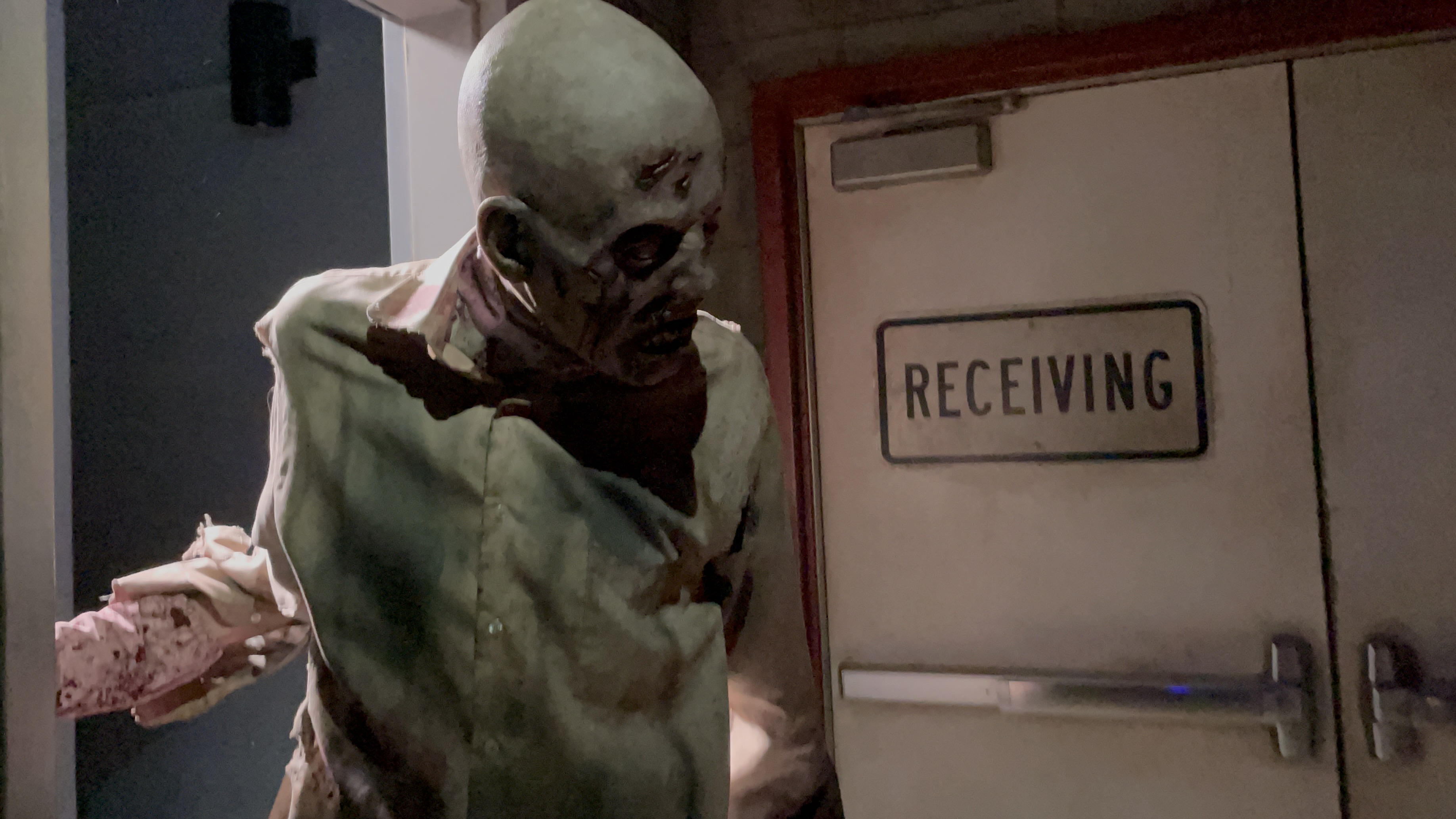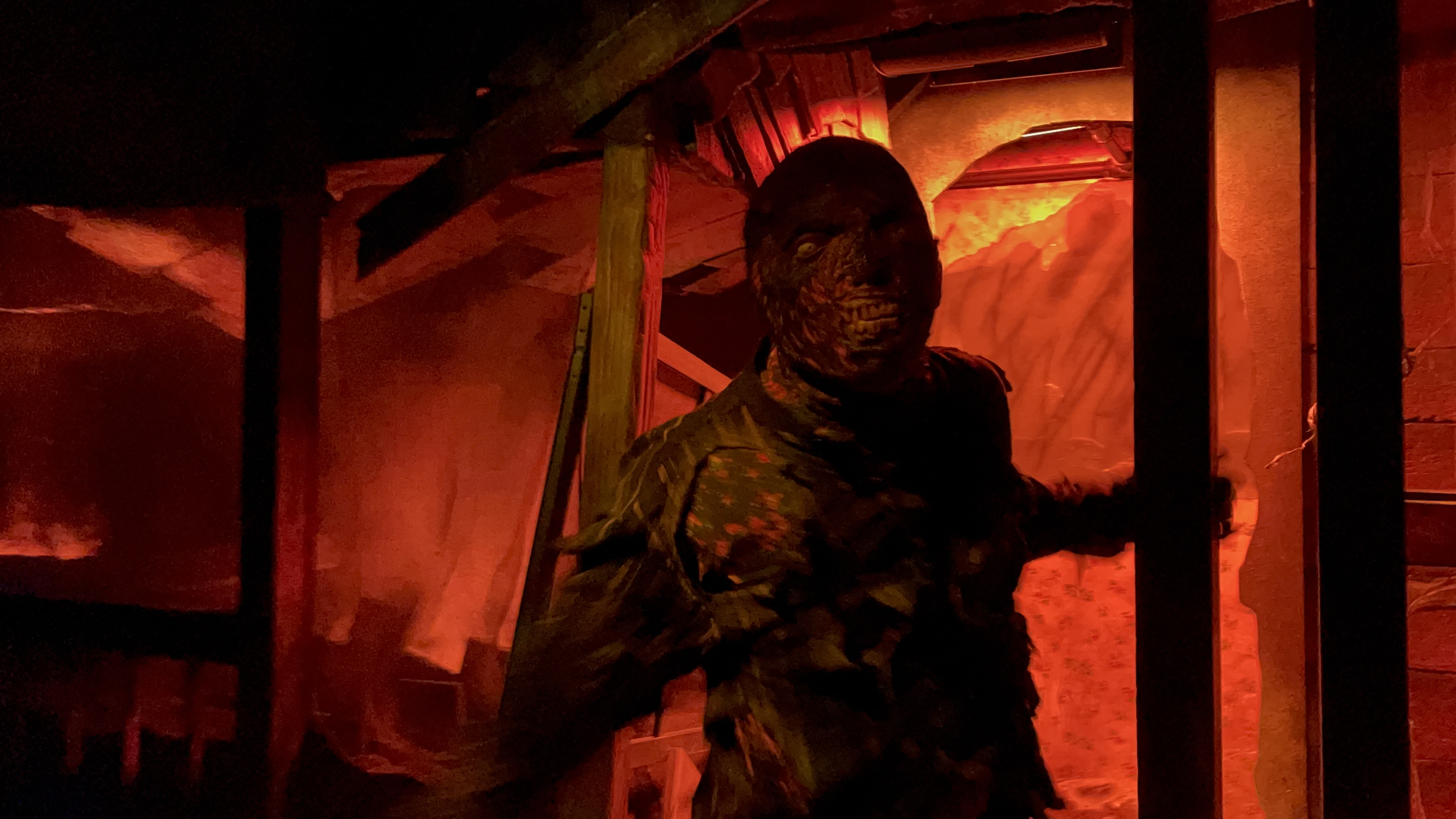 Similar to The Exorcist, plexiglass was used at certain points in the maze but it didn’t cause a detriment to the experience. Some of my favorite moments are when the plexiglass was used as a window and Michael would menacingly reach through the window at guests passing by!