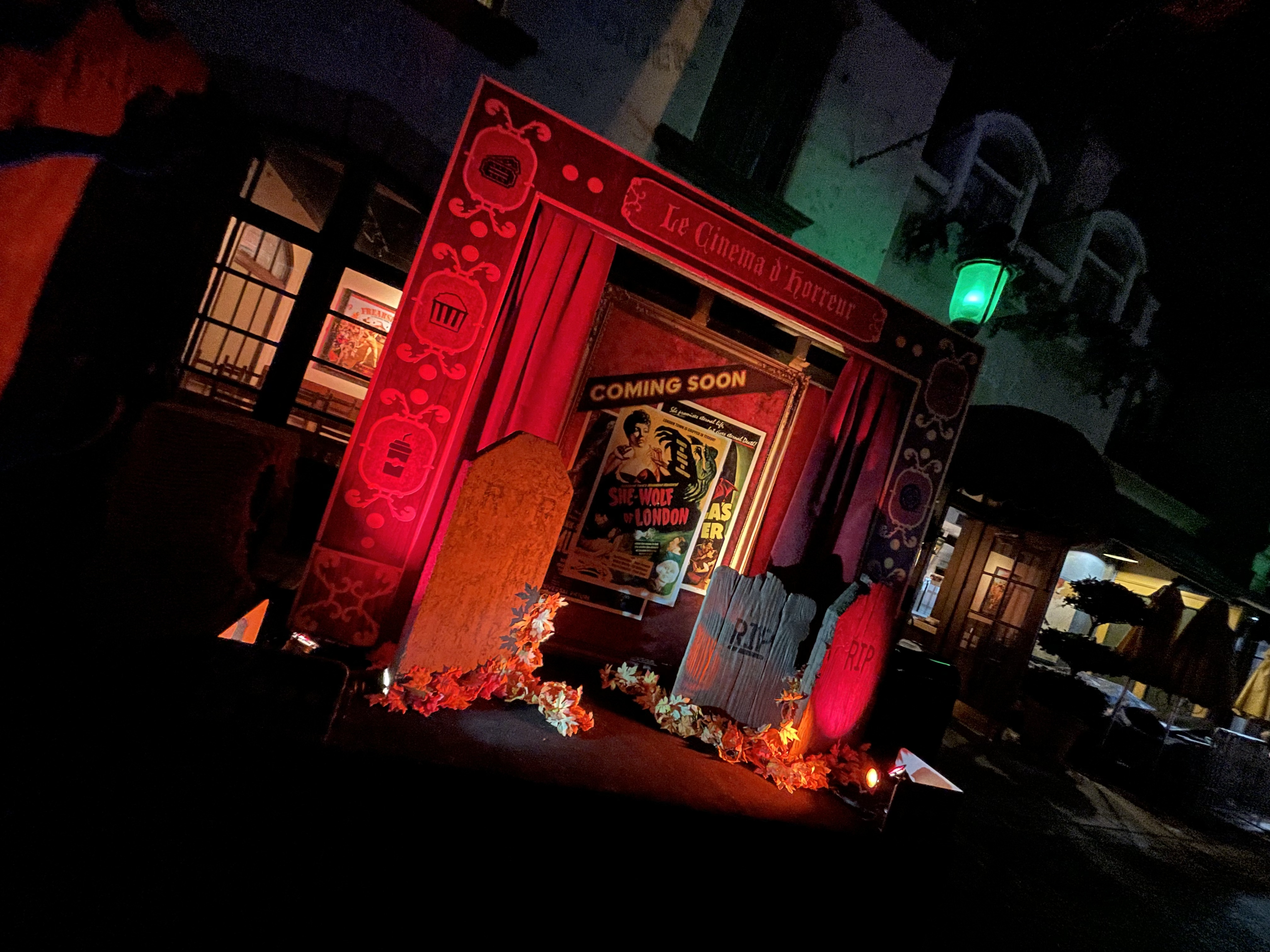 Overall, the themed food and drink options at this years event really took a step forward for us. We also really loved how the Universal Plaza was utilized this year. In the past it’s usually the queue for the maze that’s in the Parisian Courtyard. But we feel like this is the best use of the space and gives people a spooky alternative to the Demon City scare zone to enjoy their food. Not only that, but they had some atmosphere characters walking around in costume.