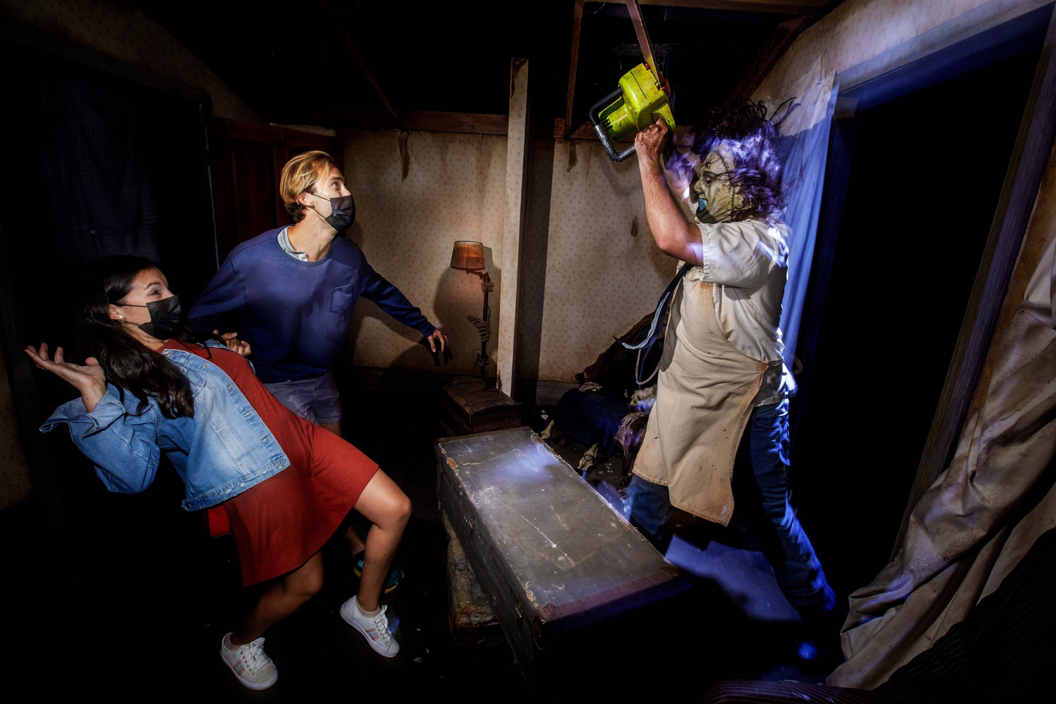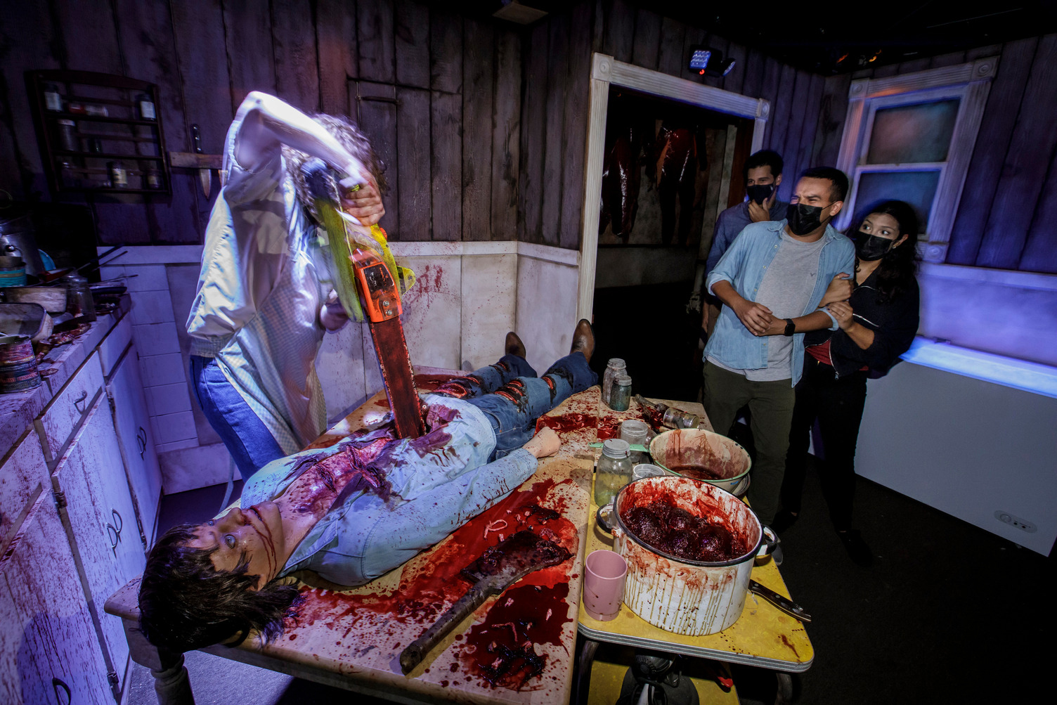 Based on the original 1974 film, this maze takes us right back to Texas to enjoy some good ol’ fashioned Sawyer Family BBQ. This maze has all the expected scenes that play out in gory detail. Faces being peeled off, bodies being cooked, and obviously chainsaws going through bodies! It really is the “greatest hits” of the film, which will make you want to shower after having experienced it in person.
