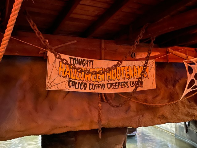 Every year the citizens of Timber Mountain invite the mysterious creatures that live out in the woods and caverns of the area to join them as they celebrate the season at the Halloween Hootenanny. The ride’s interior features surprises as guests venture past the Calico Coffin Creeper Band, the town’s Green Witch, and splash down Skull Mountain through a labyrinth of jack-o-lanterns. This Halloween adventure is set around an original song performed by Krazy Kirk and the Hillbillies.