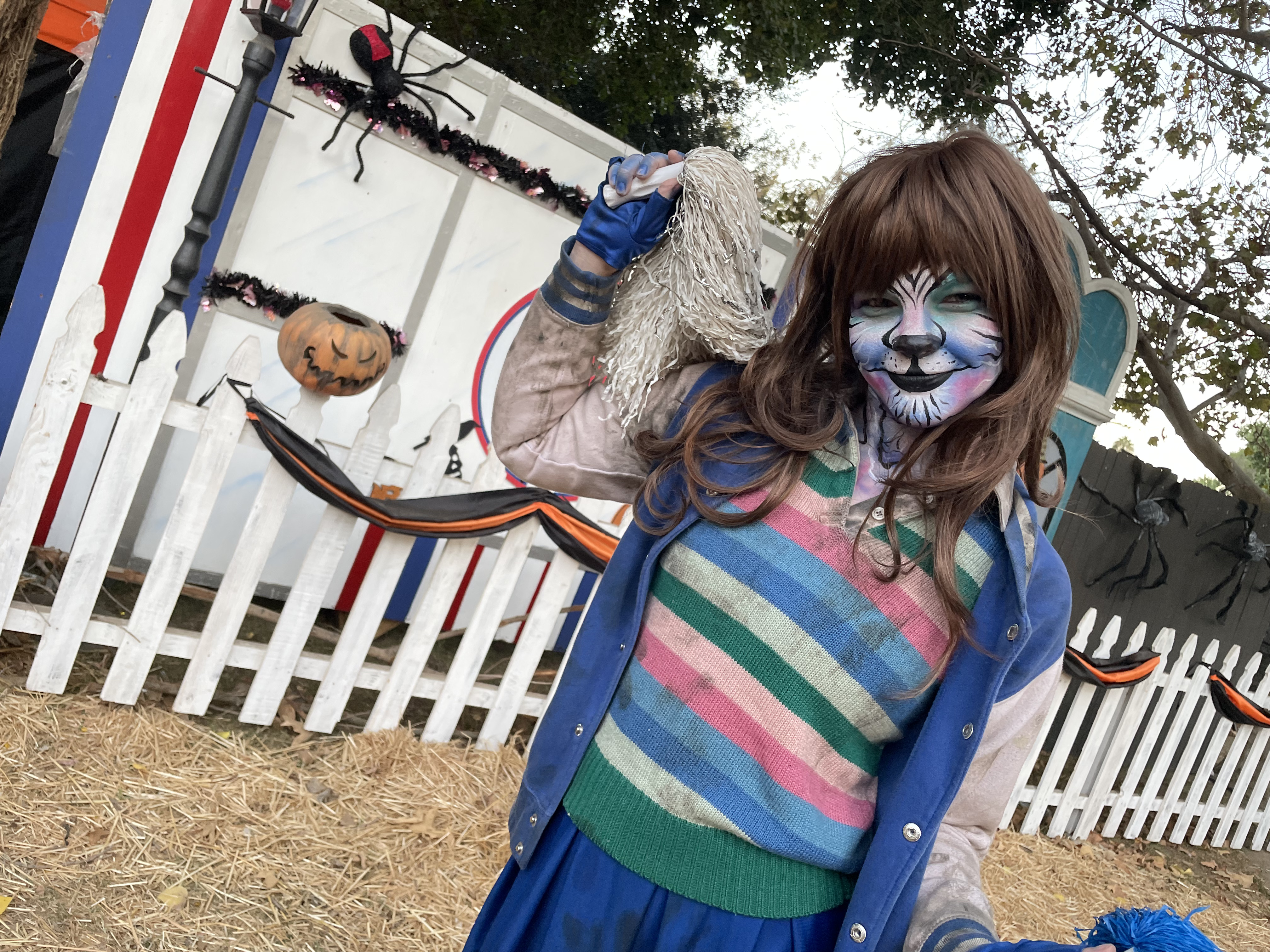 The main attraction for LAHH…is the hayride. Not something you’d find in Los Angeles, something typically reserved for the Midwest. Because it’s not something we usually have, it’s such a novelty to have it. Unlike 2019, which had vignettes that were separated by the landscape of Griffith Park in which you’d stop for each one. 2021 felt more continuous with smaller moments and many more decorations in-between. We found the timing of the scenes to be off and with scares; it’s all about the timing! Sometimes scenes went off after we’d already pass through and that also happened with animatronics. Although we were sitting near the front of the hayride; scenes should happened for the whole car. This was a bit disappointing because we constantly felt like we were missing the scares. If the hayride itself stopped in scenes more, we might have felt differently.