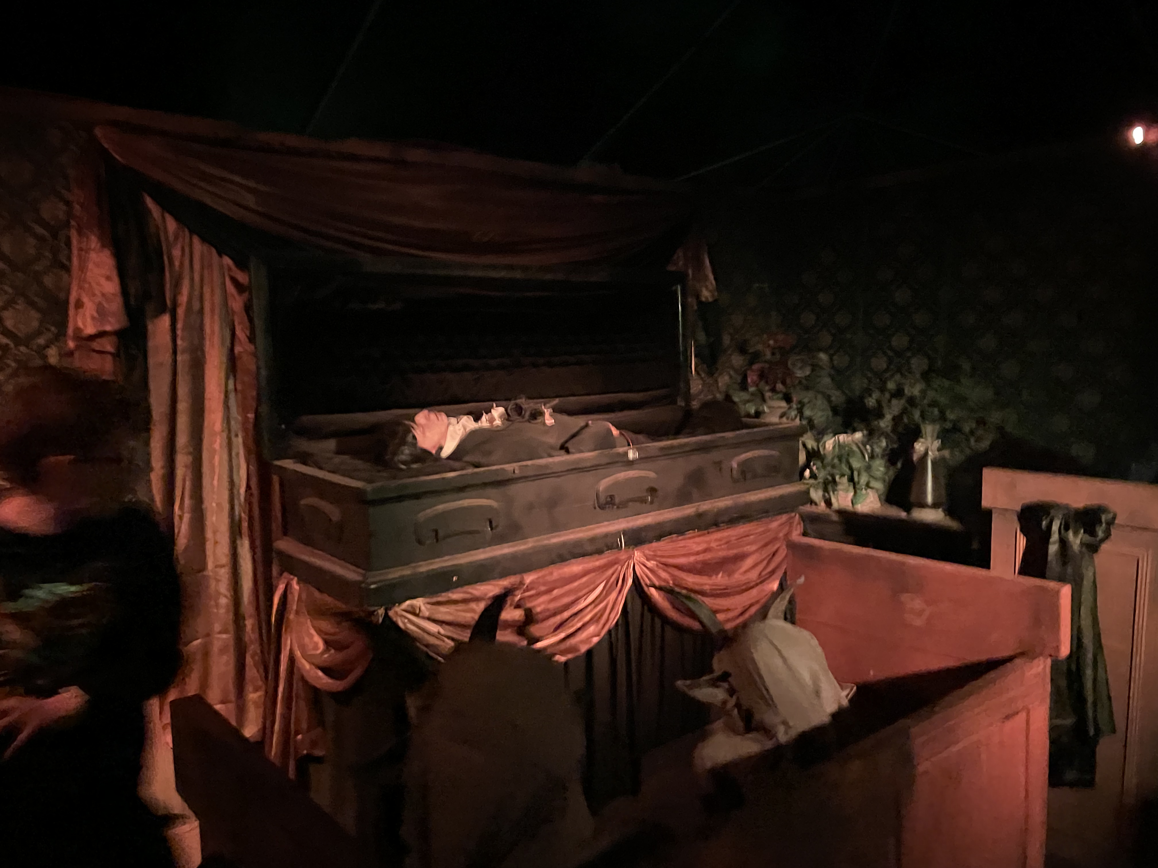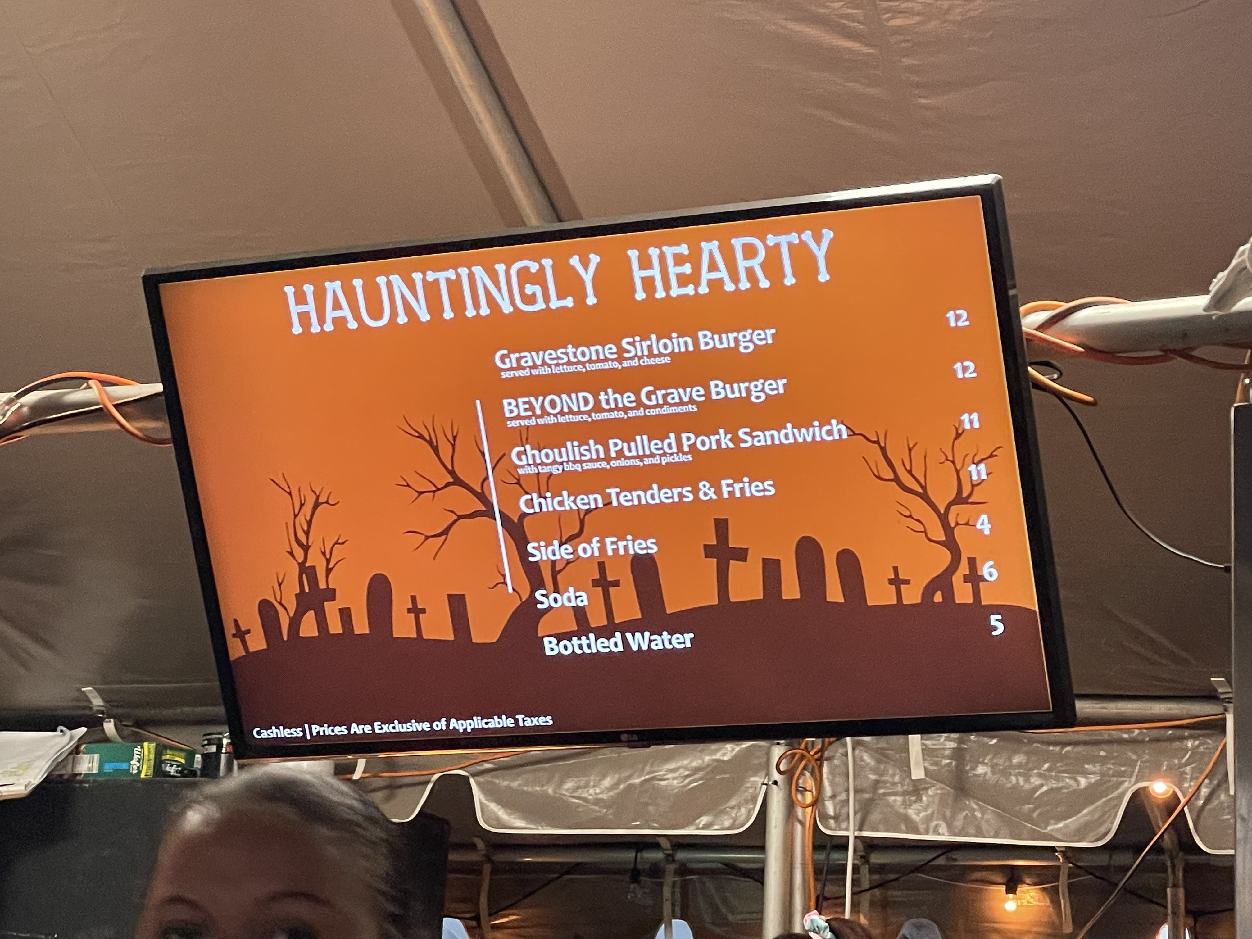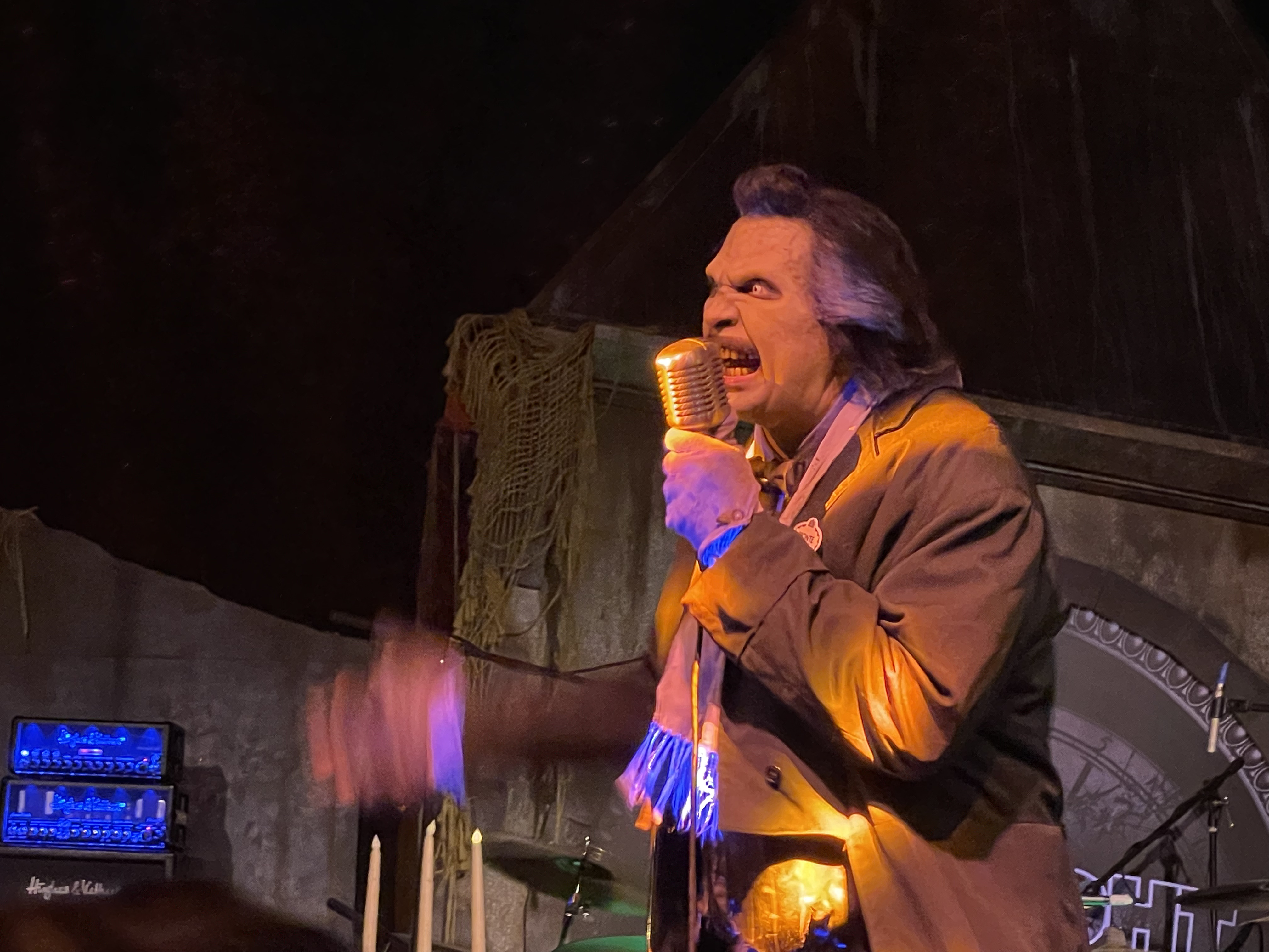 To be perfectly honest, we only stopped to experience a bit of the show before we went to the next maze. But we found ourselves wanting to stay longer and ended up staying the whole show! Because of the new location, the show has much more room for guests to gather around the stage. We highly recommend taking a moment to enjoy the antics of Monte Revolta and his Band of the Living Dead! You won’t regret it! According to Monte, you might regret it. He was continually trying to replace himself in the band.