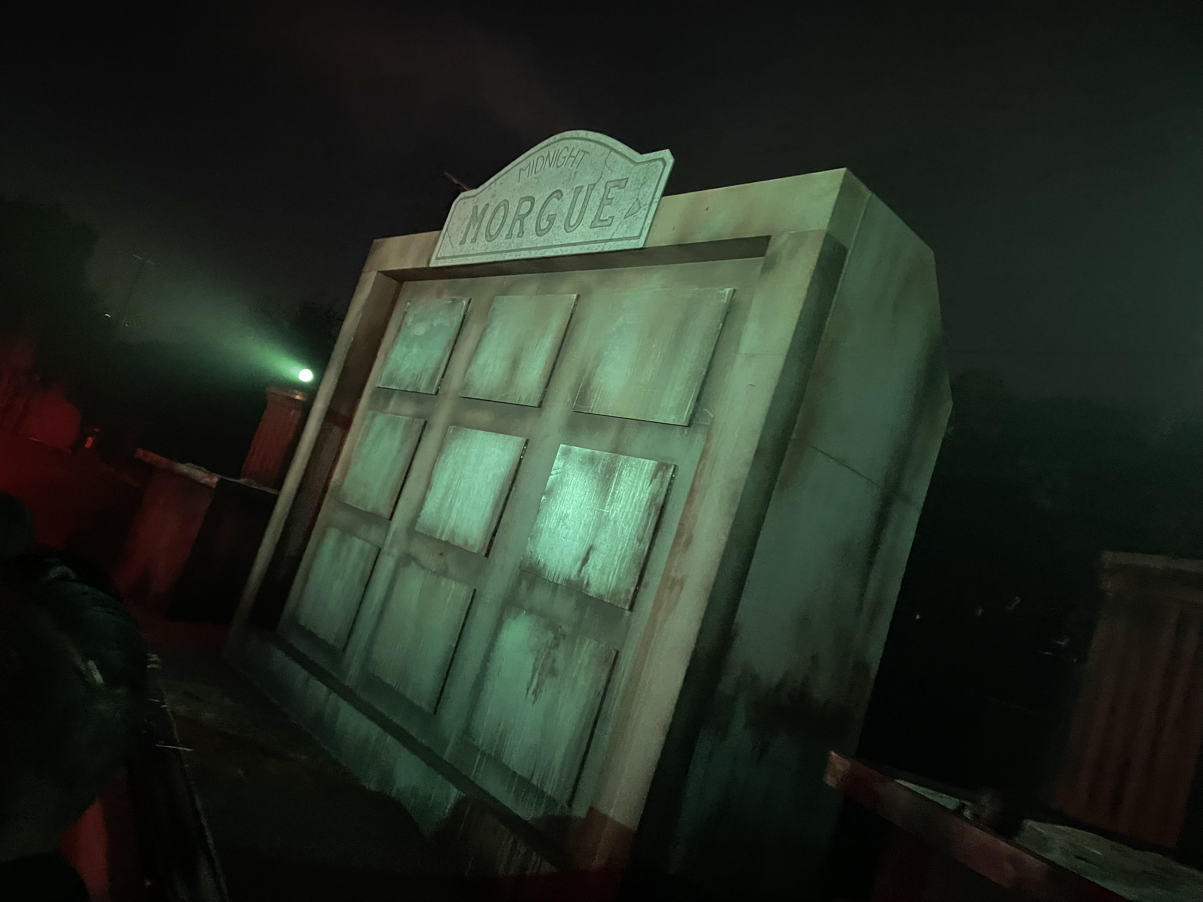 This was our favorite maze of the night! Midnight Mortuary is dark, scary, long, and packs a punch. It has a beautiful facade which some might miss if they get ushered into the experience too quickly! We love how the maze goes through different locations in and around the mortuary without anything getting convoluted. Gritty, dark, and incredibly atmospheric; Midnight Mortuary is filled with intimidating monsters that lurk around each corner.