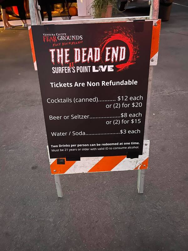 As you enter the event, you are greeted by “The Dead End” which has lots of tables for eating and drinking as you wait to enter the Fear Grounds. They don’t open the attractions until Dusk so it gives you plenty of time to grab a Taco and some liquid courage. There are even monsters roaming about and some fun photo ops.