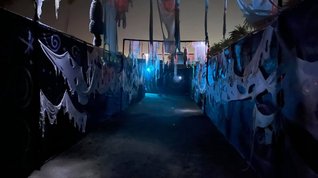 The Terror Trail took us about 20-25 minutes to get through. If you are familiar with the Ventura County Fair Grounds, the trail stretches from the very front of the fair grounds, through the horticulture exhibit and quite a few of the warehouses. They use every inch of the fairgrounds for this event and many of the trees that are there every year.