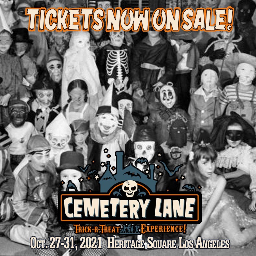 Safe, secure… and spooky. Cemetery Lane, a Halloween experience featuring 13 trick-or-treating stops along a private, gated row of Victorian manors rumored to be haunted, takes over Heritage Square Museum (3800 Homer St. Los Angeles, CA 90031) October 27th – 31st, 2021 – with hourly timed entry ticketing making the eerie event even more exclusive.