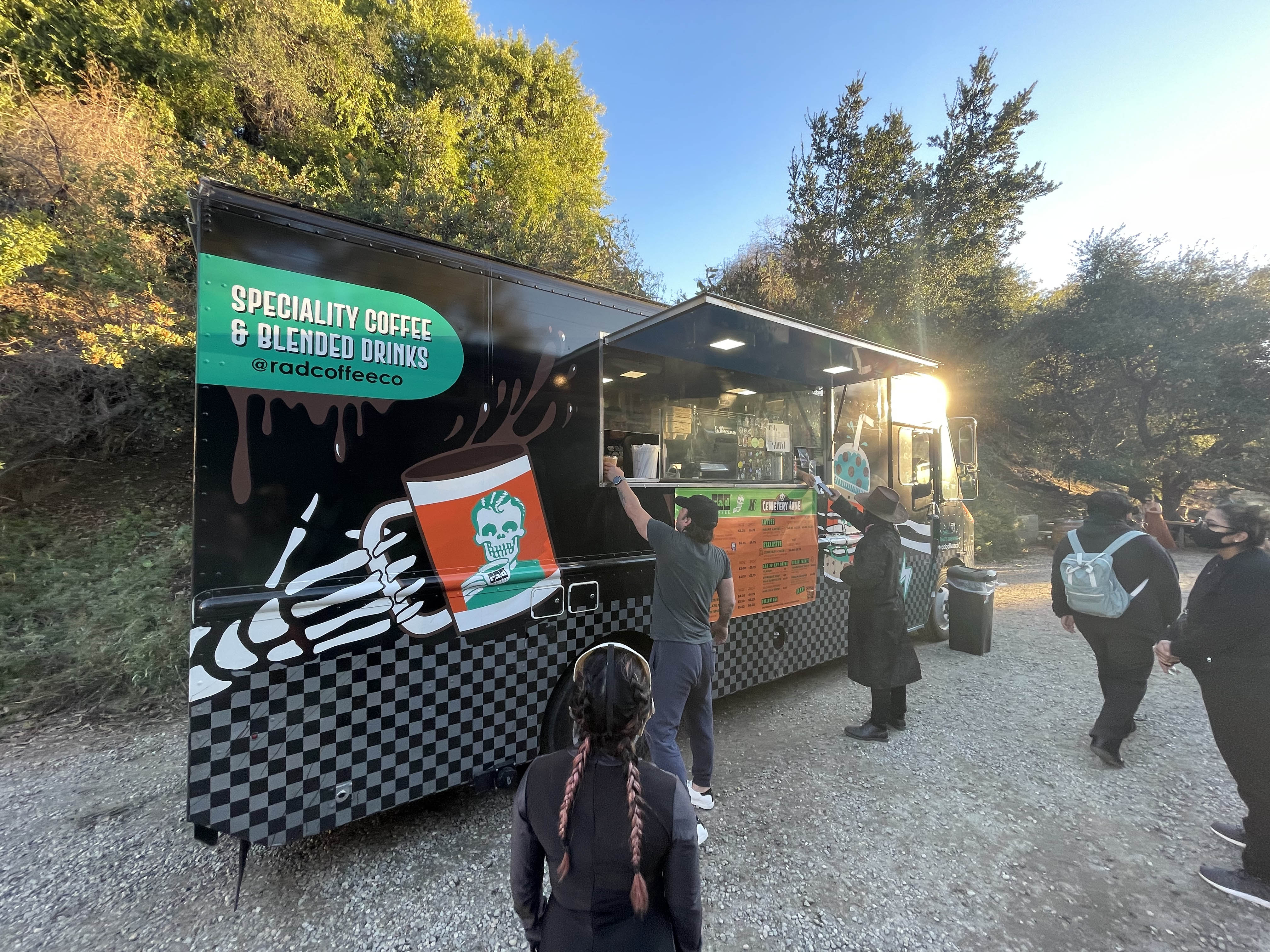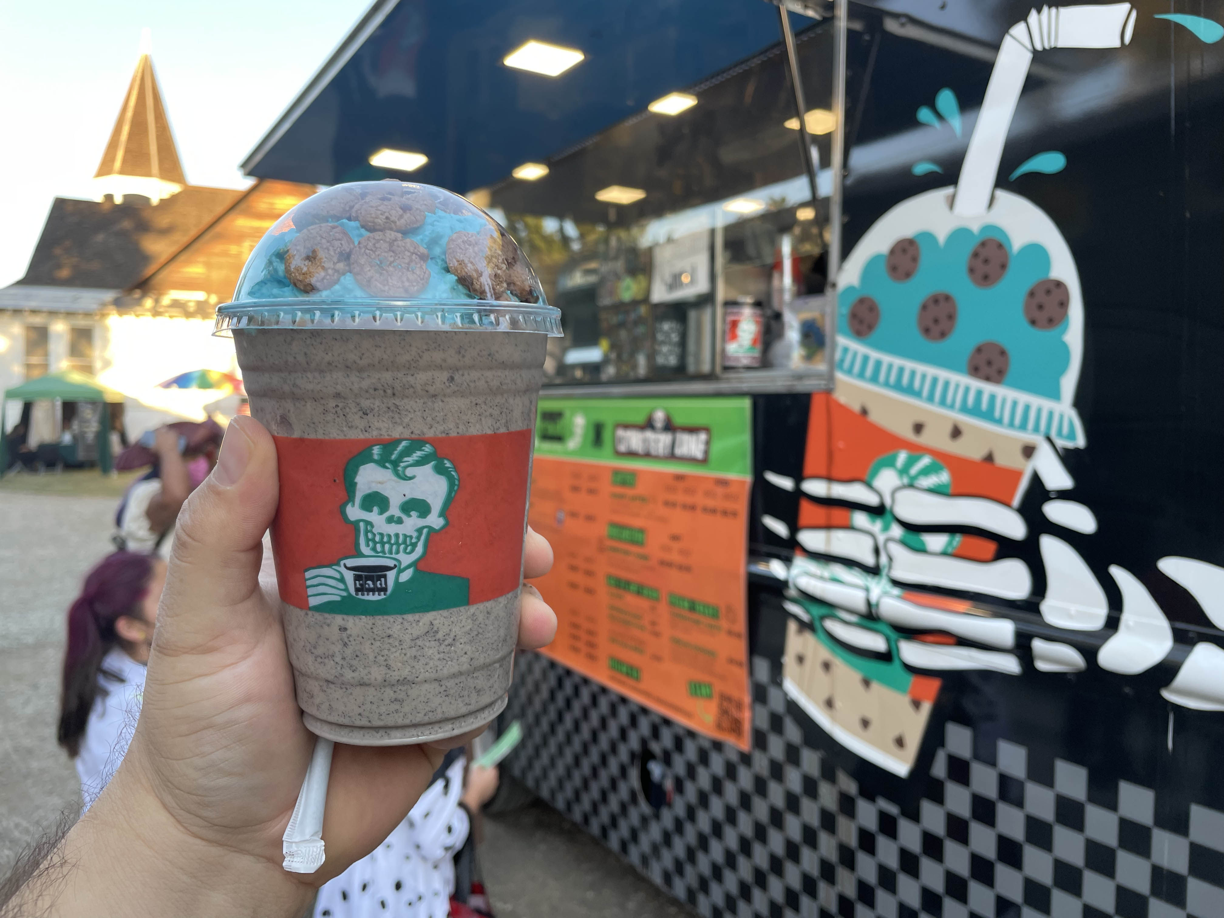,Aside from the different trick or treat locations, you can find a good amount of food to eat at the event. Including the RAD COFFEE truck which offered a special menu for the event! We partook in the Cookies and Scream blended drink and vegan cookie which were delicious. We also stopped by the food stand and got chicken strips and fries. We were pleasantly surprised by how juicy and crispy the chicken strips were and scarfed them down so fast!