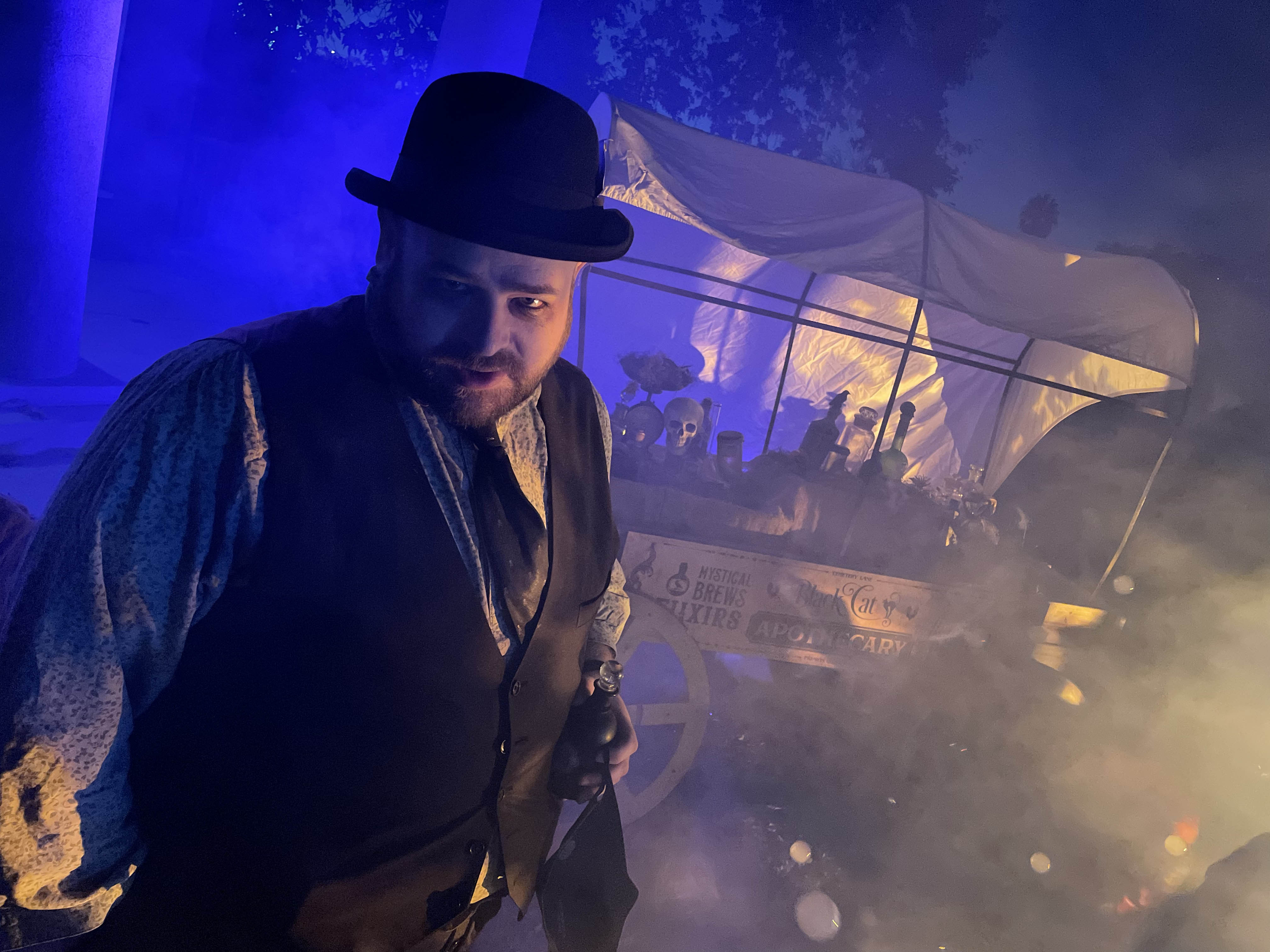 One of my favorite moments of the night was when we watched a small show near the Apothecary before receiving candy. He informed us that he has a special liquid that would cure anything and everything. If we didn’t have anything, it would give us something and then cure that! He then drank it and turned into a much more ferocious version of himself. Our Daughter was then scared half to death, only to be relieved when the man returned to normal. She laughed heartily and received her candy with a massive smile on her face.