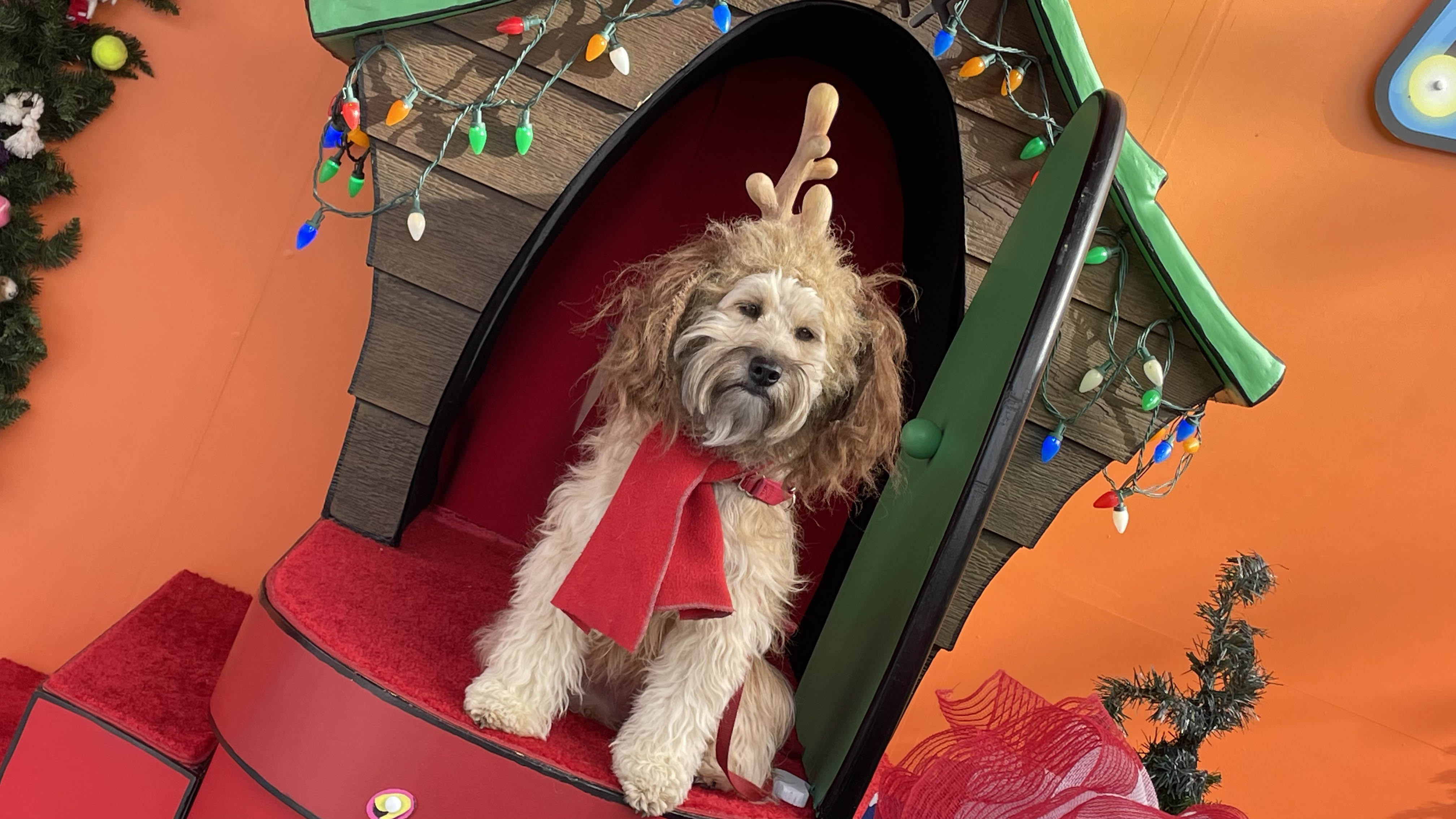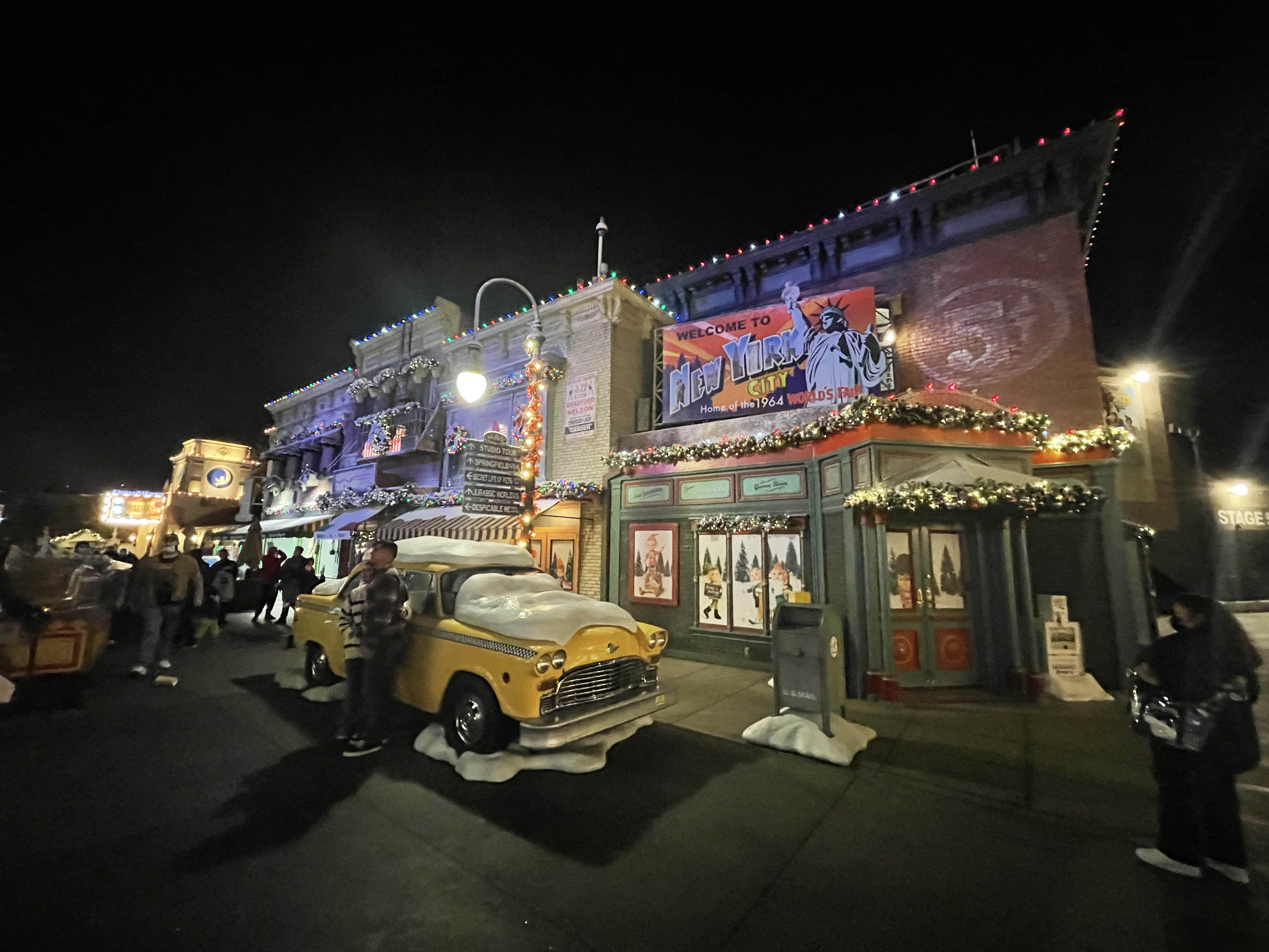 Throughout the park, you’ll find themed decorations. For instance, down on the lower lot you can find a Christmas tree with pterodactyl in it or on the upper lot Pets Place has some wonderfully cartoony presents with the films characters.