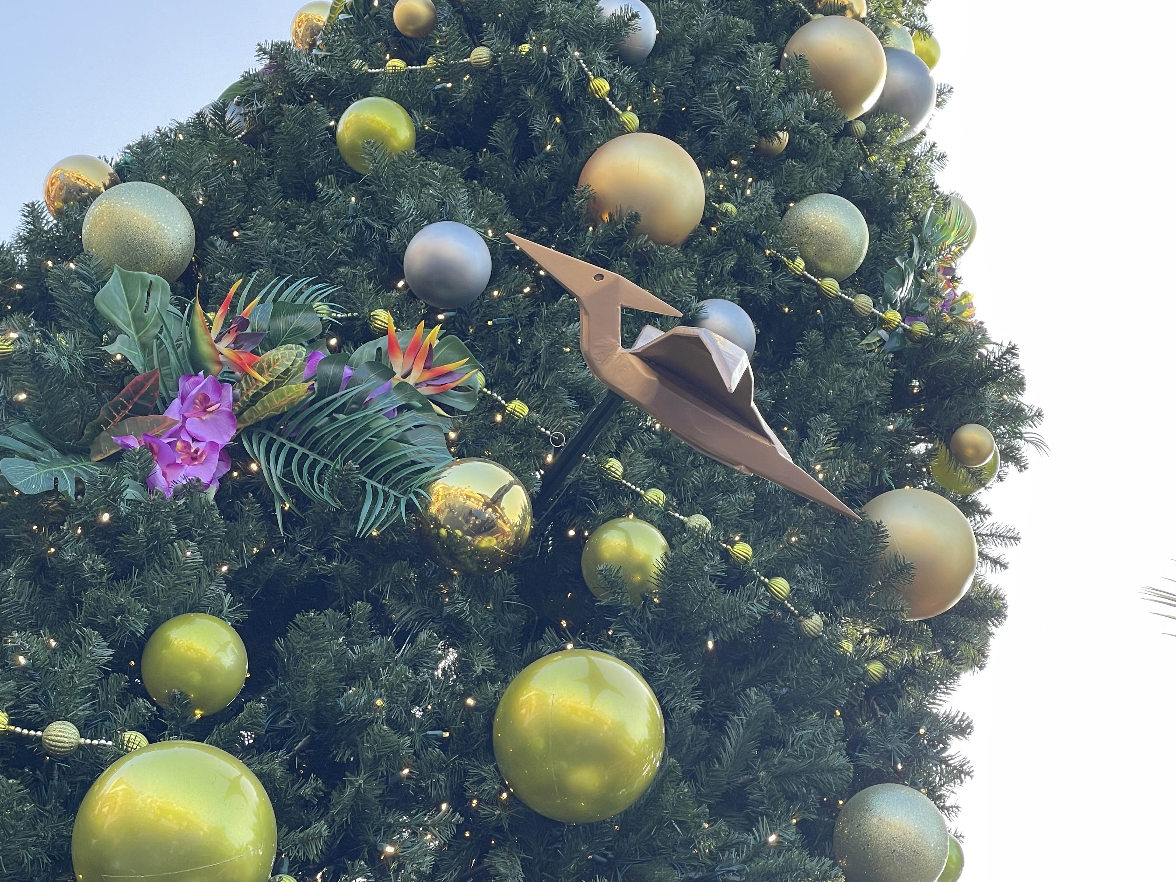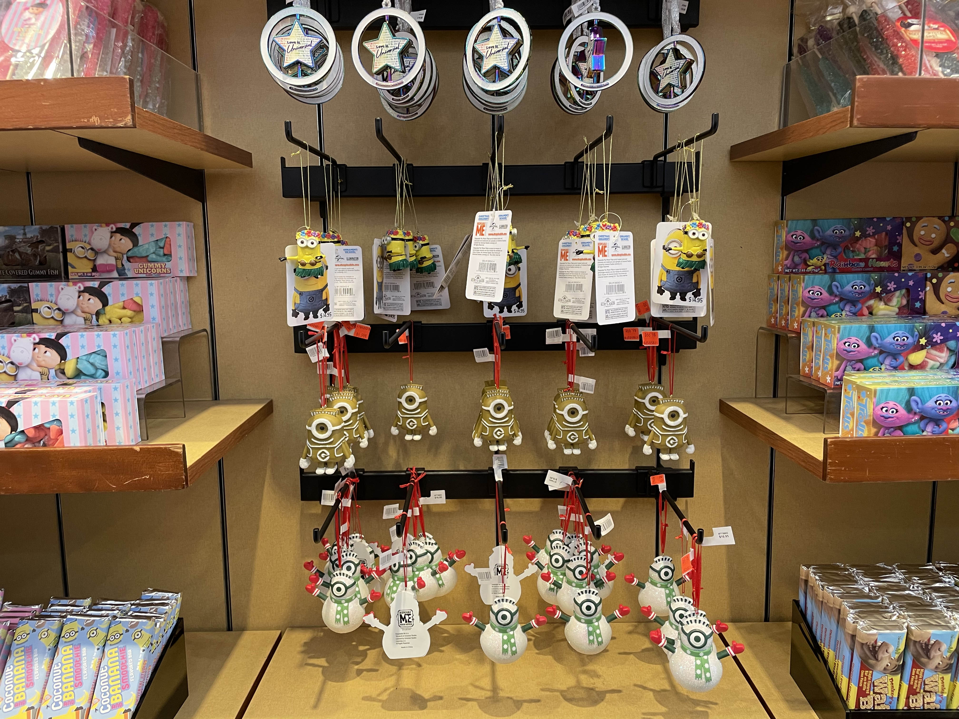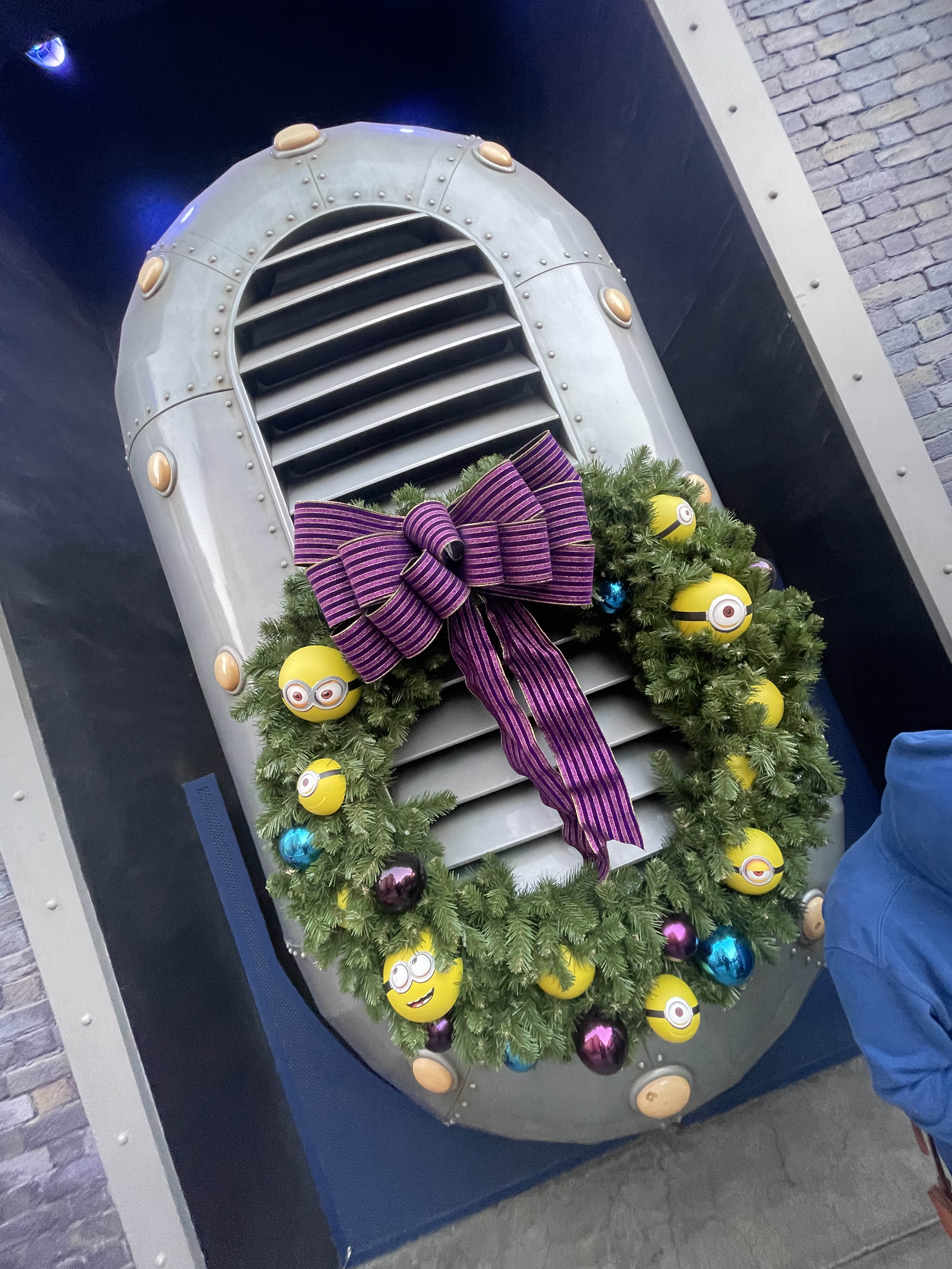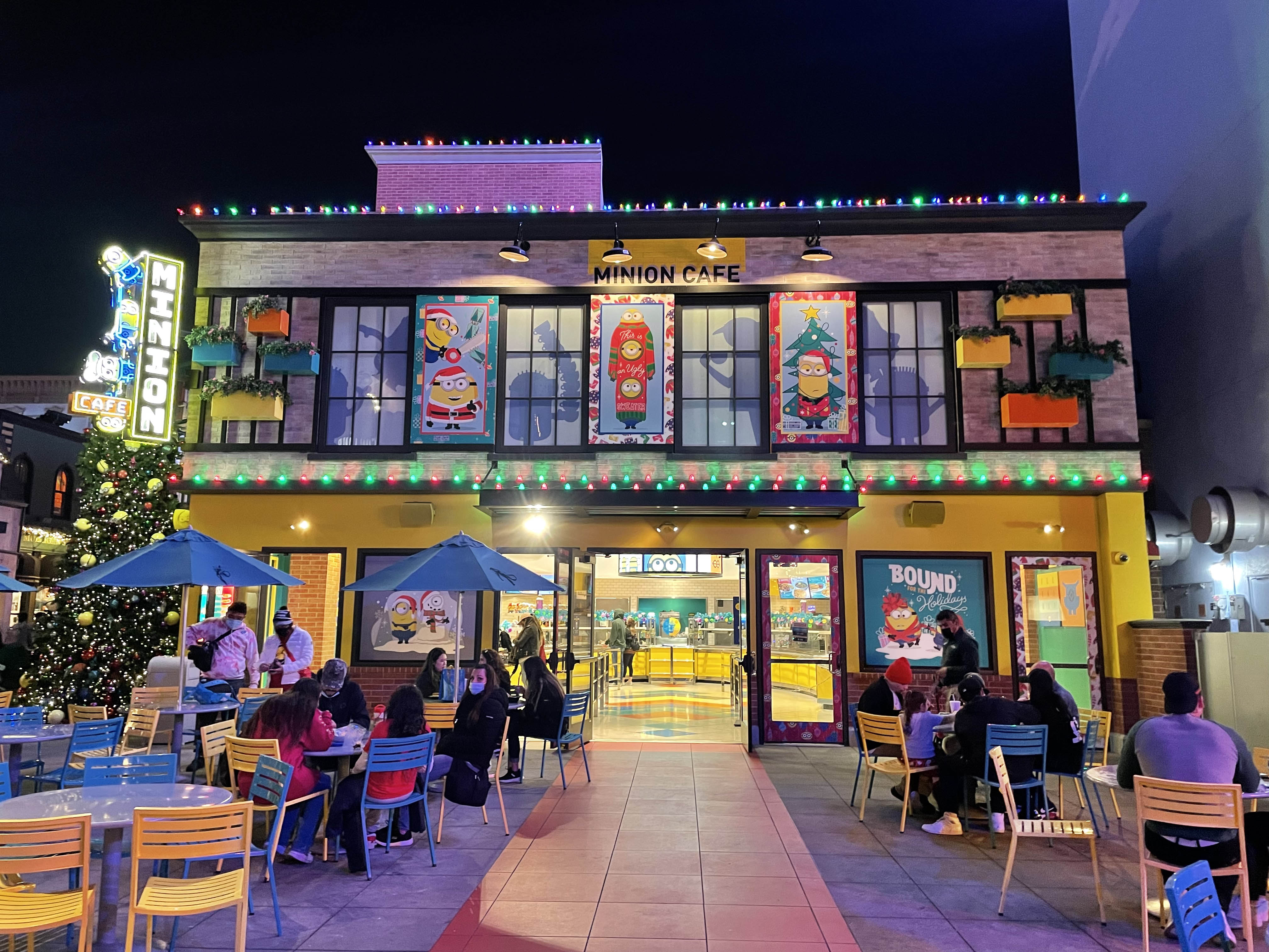 Look closely at the trees throughout the park because sometimes they have some really great detailed ornaments or hidden characters on them…like this Minion tree by the Minion attraction! Additionally, most of the walk around characters throughout the park are dressed up to celebrate the holidays. But don’t get too excited because Blue the Raptor is missing her Santa hat!
