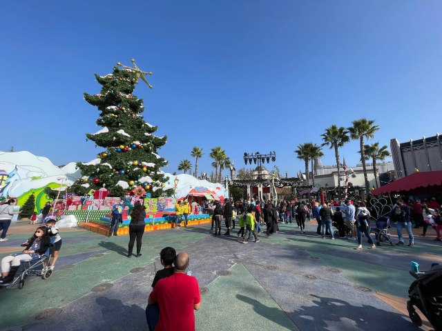 As you approach USH, the colorful and whimsical decorations of Grinchmas are there to greet you with classic holiday songs. On a crisp SoCal morning, everything felt just perfect. People were bundled in their sweaters, sipping hot coco (yes in the morning) and walking to the beat of the music, getting ready to start their day. We’ve mentioned this in the past at other events and even at this one. There’s this intangible essence to the park during the holidays. Something that just conjures up images of holidays past and makes you feel all warm and cozy inside. It really just makes you smile!
