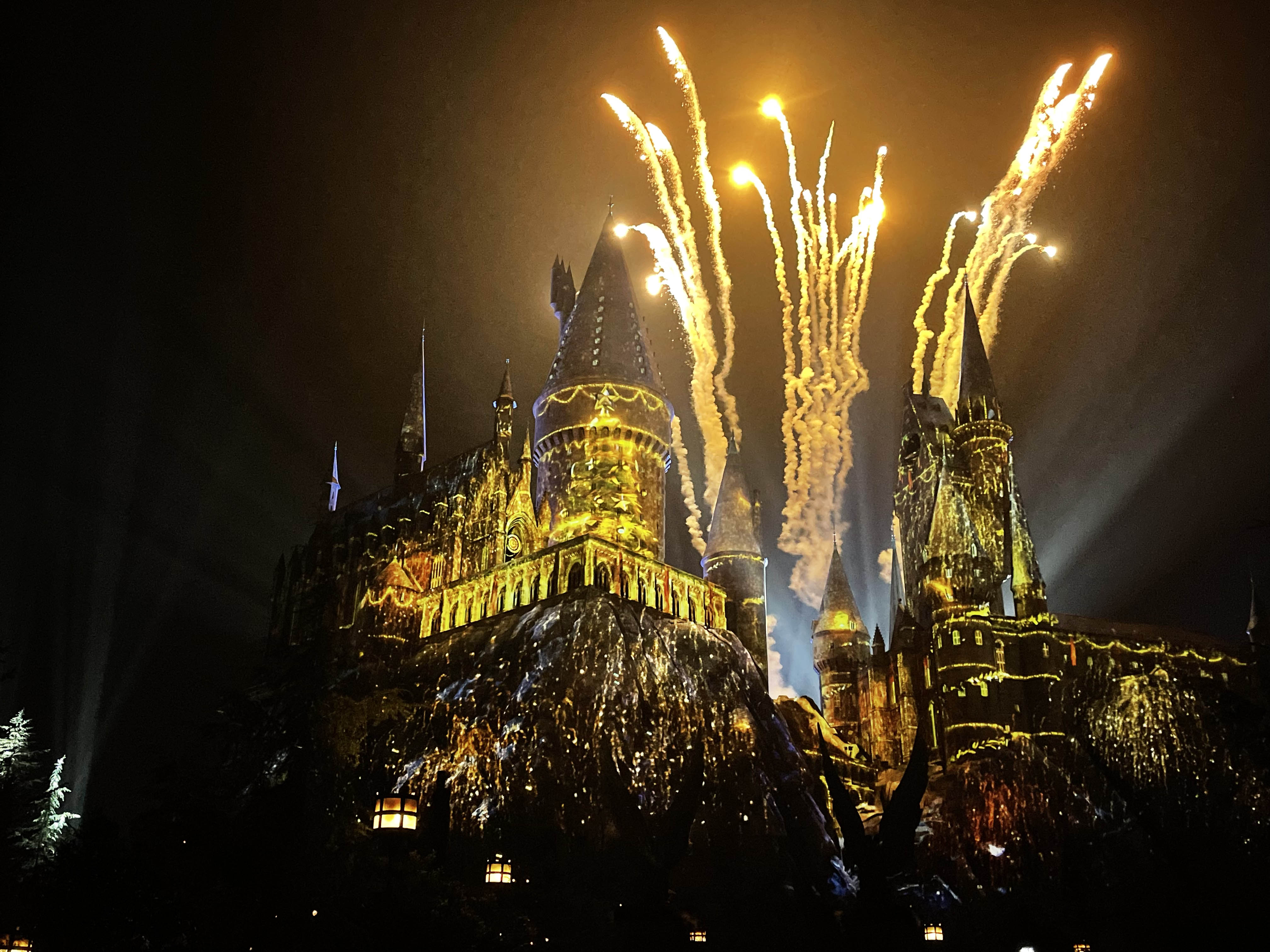 Also, keep in mind that the space within Hogsmeade is extremely limited. The best place to see this show is on the steps of the stage directly across from the furthest Butterbeer cart. Since space is limited, things can get really crowded fast. So bring your patience and come early so you can see it a couple times without needing to deal with the massive slow moving crowds.