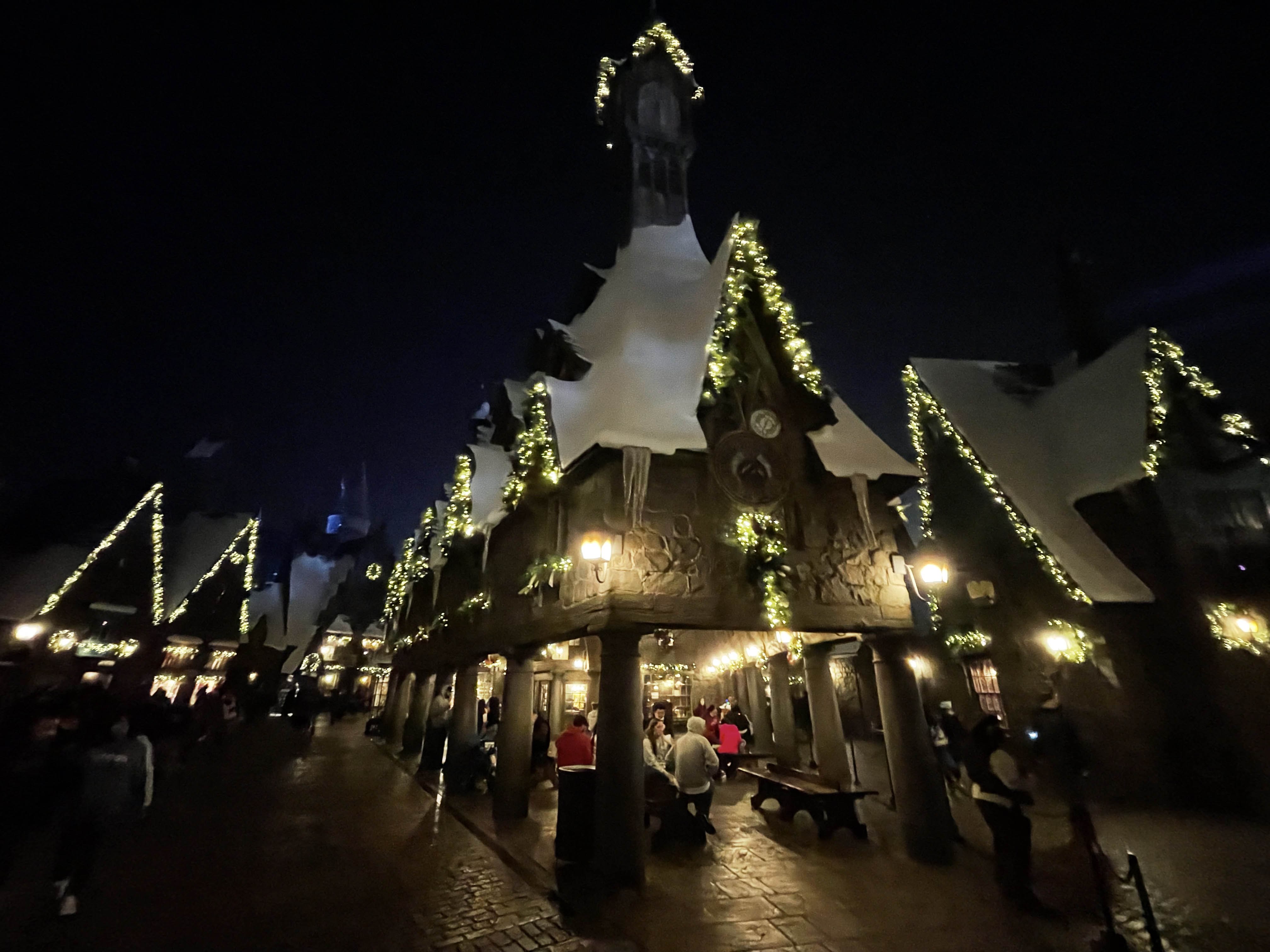Maybe The Grinch isn’t your speed and maybe you’re more interested in…magic. Then you’ll have to visit The Wizarding World of Harry Potter! The snow covered rooftops already lend itself to being the perfect holiday destination within the park. Wonderfully themed garland and wreaths adorn the buildings and really help set the tone of the holidays.