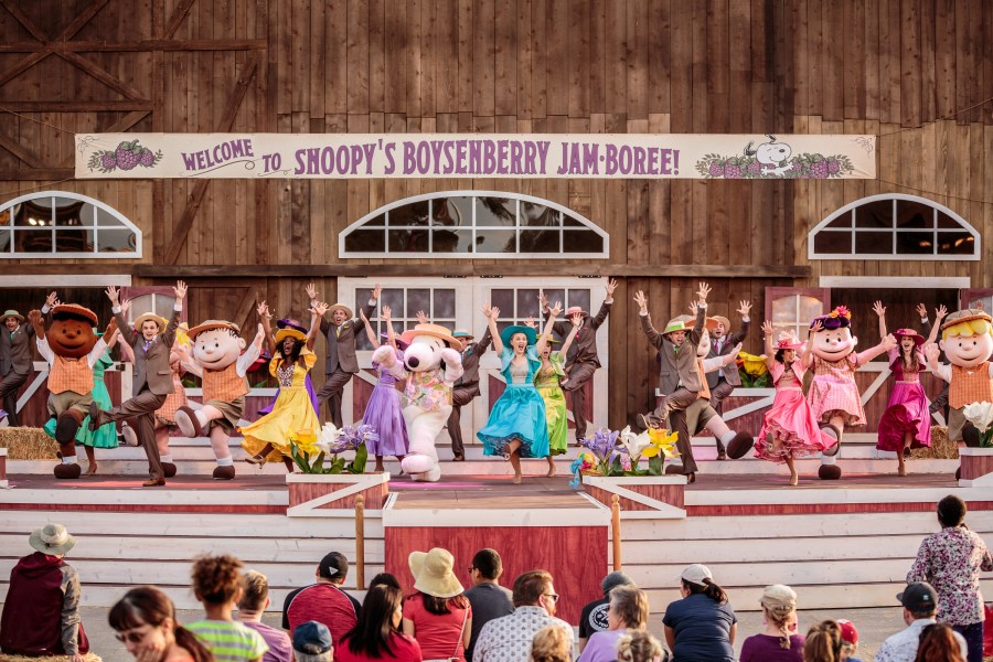 - Guests are invited to join Snoopy, Charlie Brown and the entire Peanuts Gang in the musical stage show Snoopy’s Boysenberry Jamboree! The show is sure to have families dancing and singing along at the Calico Mine Stage