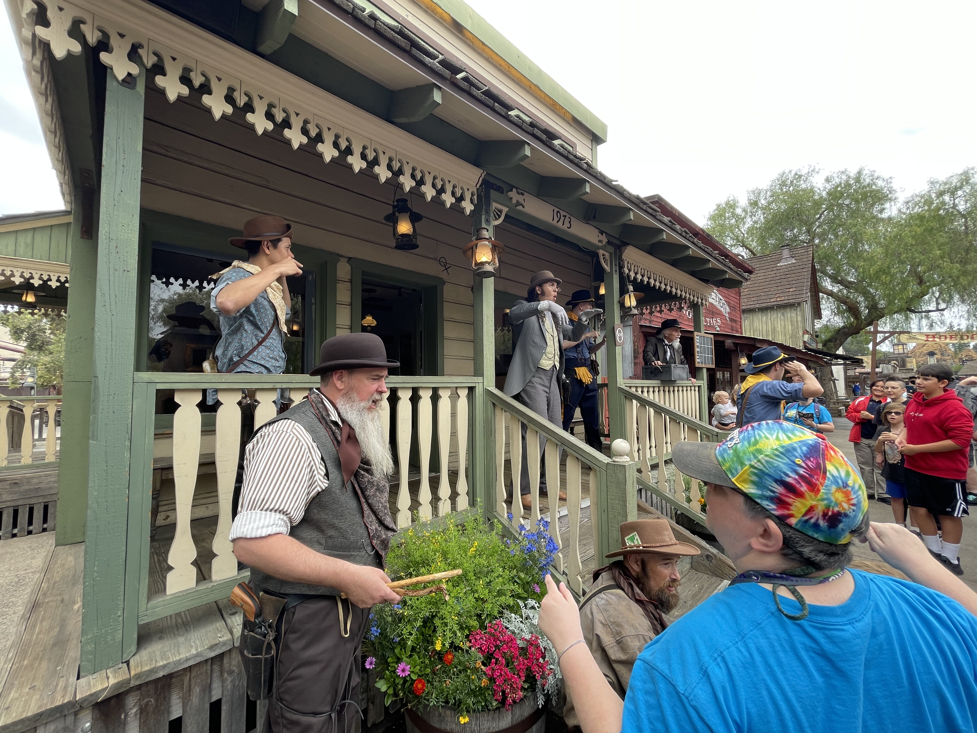 As mentioned before, it’s been two years since we’ve had Ghost Town Alive (GTA) at Knott’s Berry Farm and it’s truly been missed. Without GTA, there is a very obvious void in the entertainment offerings at the Farm. Especially when said offering is immensely popular. This is supported by the overwhelming amount of people who came to Knott’s to experience GTA for opening weekend. Countless smiles, painted mustaches, laughing families, and excited adults only cements GTA’s popularity and ability to wrangle up people of all ages. You can easily spend all day in Ghost Town enveloping yourself in the story that unfolds throughout the day.