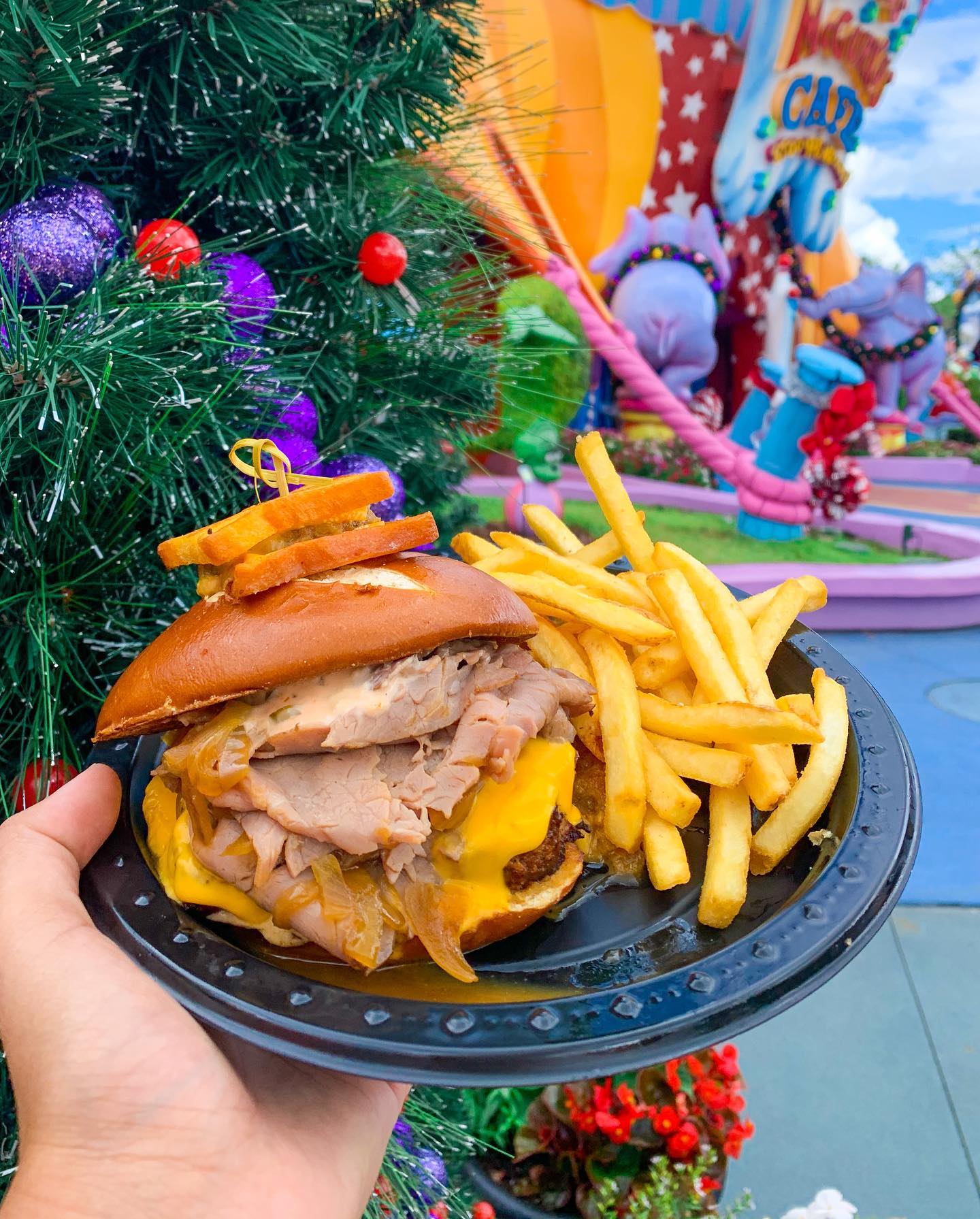 - Roast Beast Sandwich (available at Circus McGurkus Café Stoo-pendous): Guests looking for comfort food flavors can savor the Roast Beast Sandwich – a mini meatloaf sandwich featuring French onion soup-dipped roast beef with a cheddar cheese sauce – and even a “secret” sauce – served on a pretzel bun.