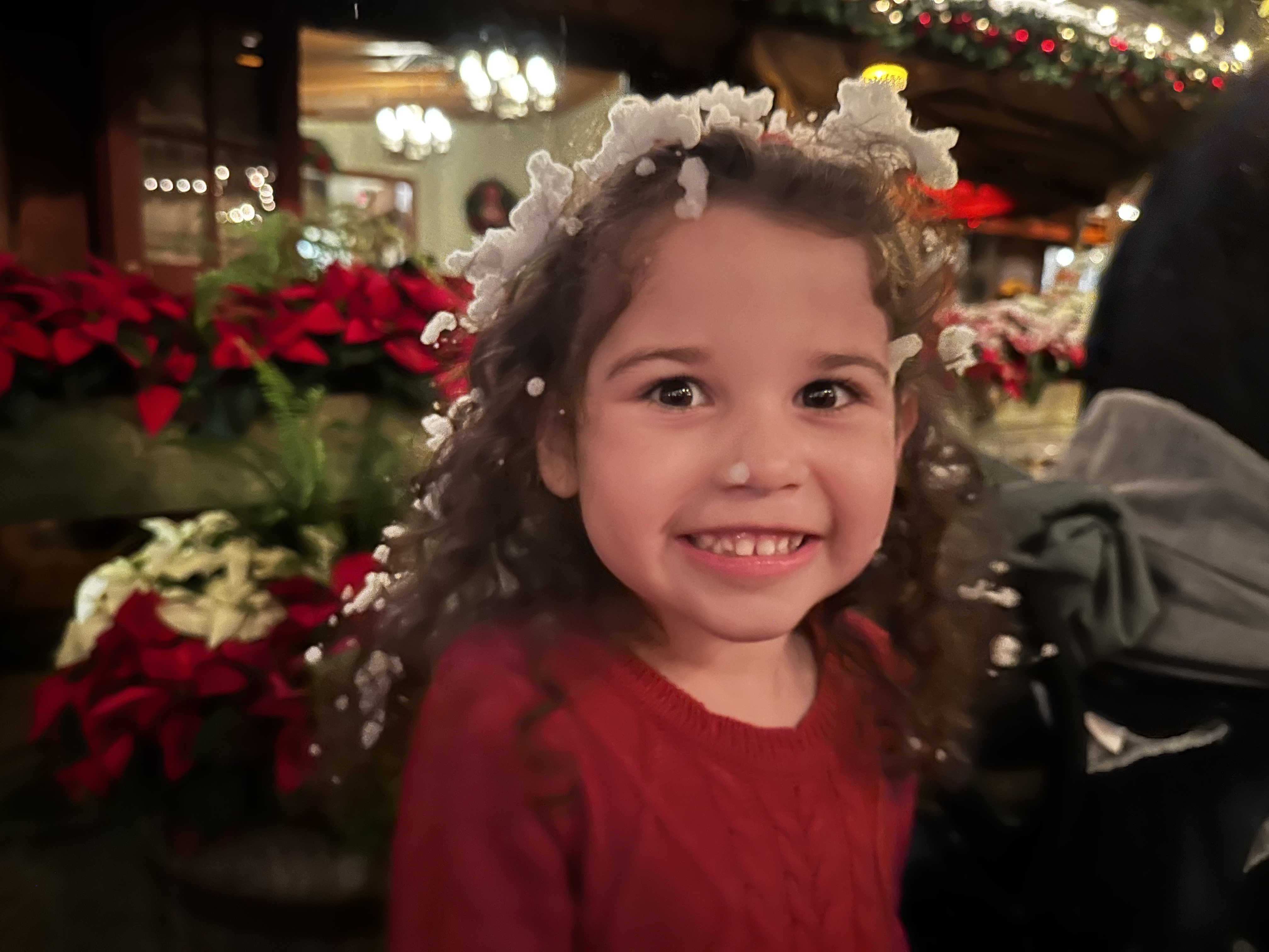 Then, multiple times a night, you can catch Snow and Glow in Ghost Town. Other than meeting Snoopy, this was our most highly anticipated item on our list when visiting with our Daughter. We knew she would be entranced by the lights and sounds of it all. Then to cap it all off, it snows in Ghost Town. It’s a really beautiful moment when you get to see your child’s eyes light up as the snow begins to fall. Something about the light, music and snow all together really evokes an emotional response from us. It feels so wholesome and put us right into the holiday mood.