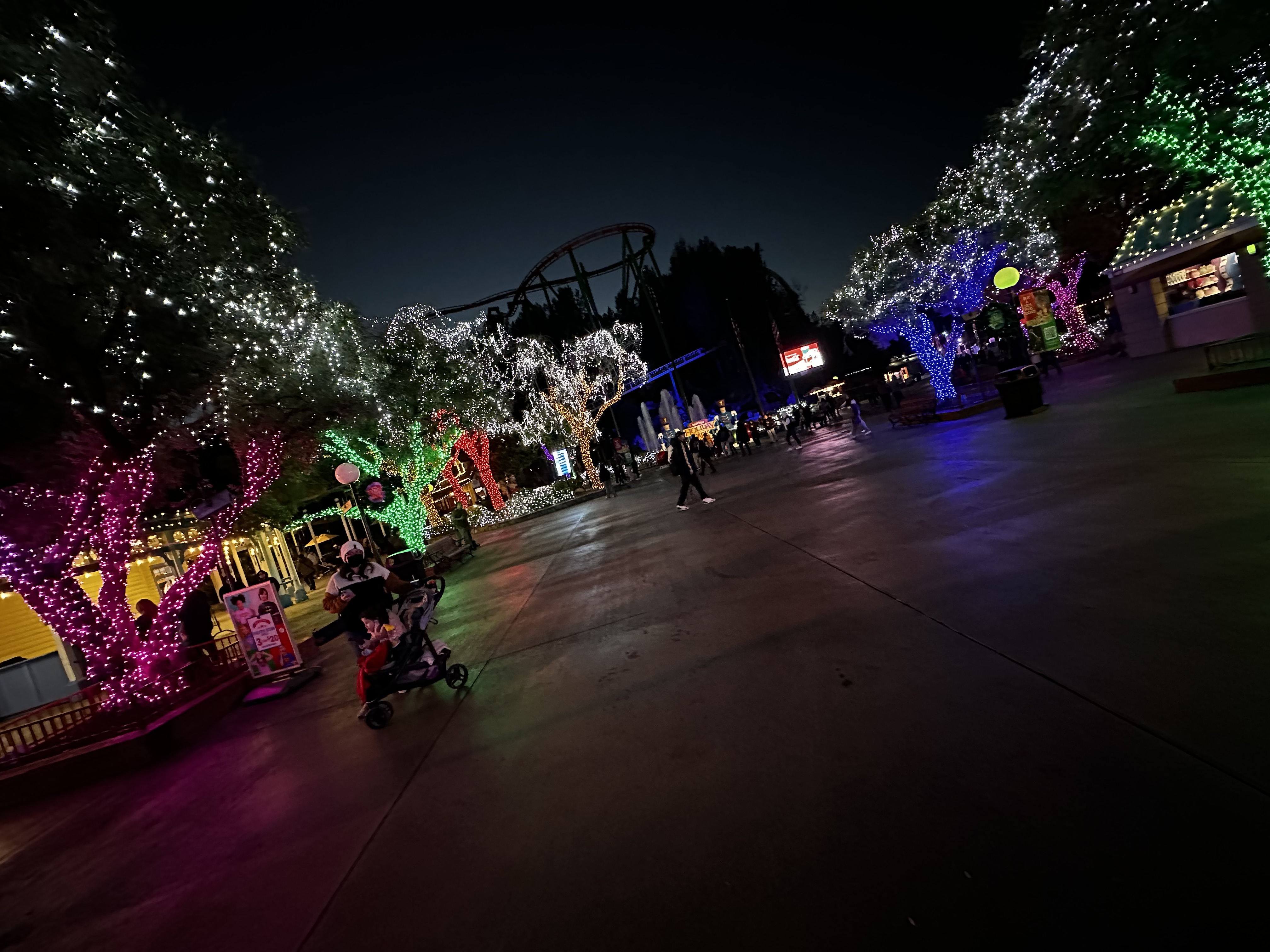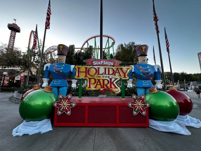 On a cold night in December, we ventured out to Valencia to experience Holiday in the Park at Six Flags Magic Mountain. This even has always been a favorite of ours because of their unique decorations, thousands of twinkling lights, fun meet and greets, and the guest interactions. We actually think Holiday in the Park is the strongest event SFMM puts on during the year in fact. And if our kiddo’s reaction to snow in the park is any indication, we think she would agree with us as well. Below will be a Visit In Pictures of our time at SFMM for Holiday in the Park.