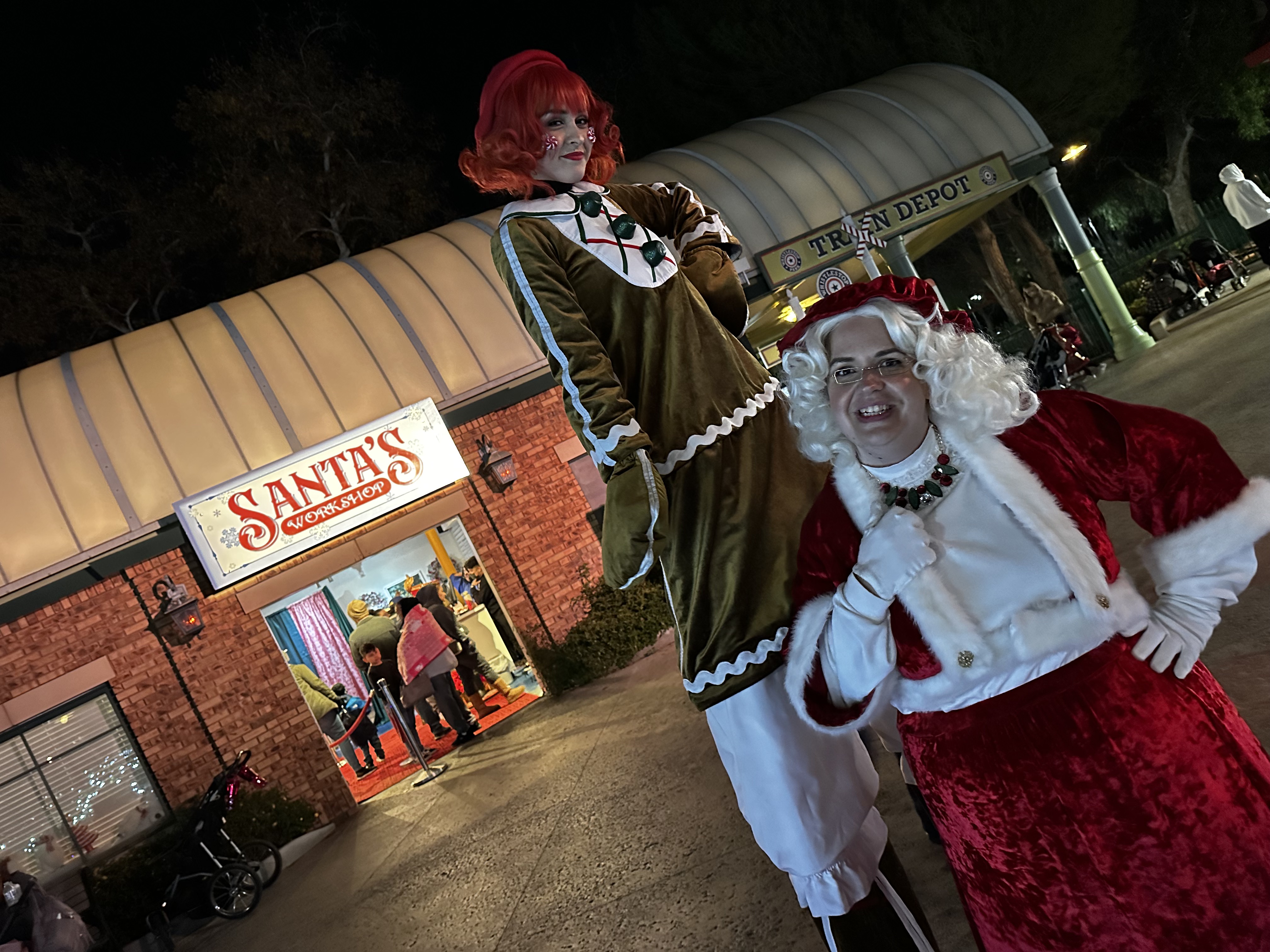 Our next stop was The North Pole which takes residence inside Whistlestop Park, next to Bugs Bunny World. This is an all new location this year and we think it better services the experience in this location as well. Here you can meet the jolly man himself, Mrs. Claus, some stilt walking characters and even have some fun with arts and crafts that you can take home.