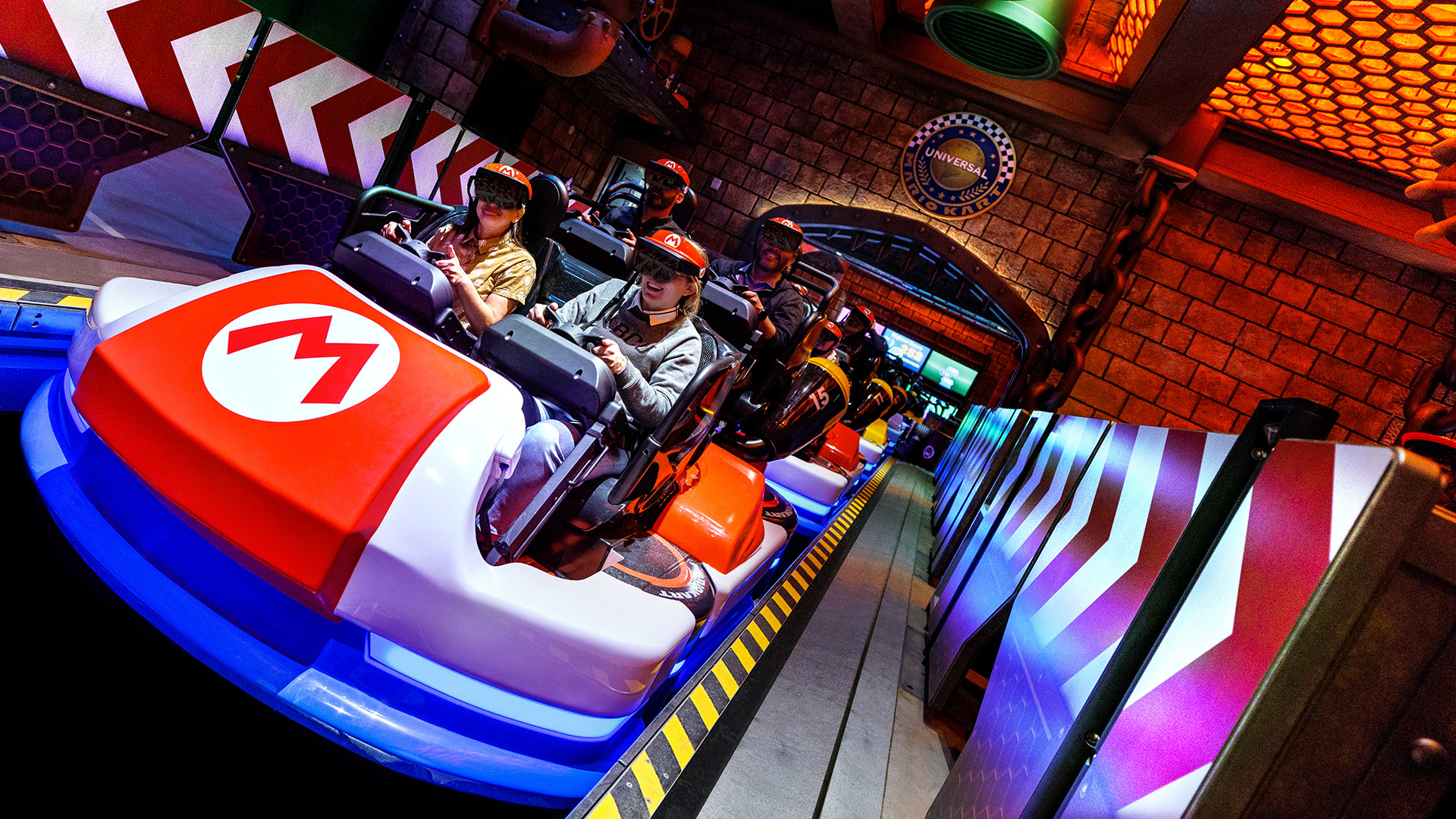 “Mario Kart: Bowser’s Challenge”: This all-new, technologically advanced ride, inspired by the popular Mario Kart™ video game series, seamlessly fuses cutting-edge augmented reality (AR) with projection mapping technology and actual set pieces along a moving ride track. Set against a multi-sensory backdrop of color, sound and movement, guests will be seated in stadium-style, four-seat vehicles as they navigate familiar courses through the creative use and integration of head mounted AR goggles. This unique feature is a key point of differentiation that distinguishes this ride from other theme park attractions.