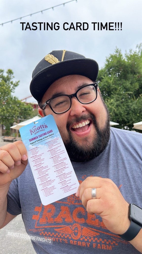 And with 40 different items on the tasting card, there is no shortage of options. Typically this type of offering is only associated with the Knott’s Summer Nights event, but this year the offerings are made available all day long throughout the park which is the best change. And we started to use our tastings in Fiesta Village!