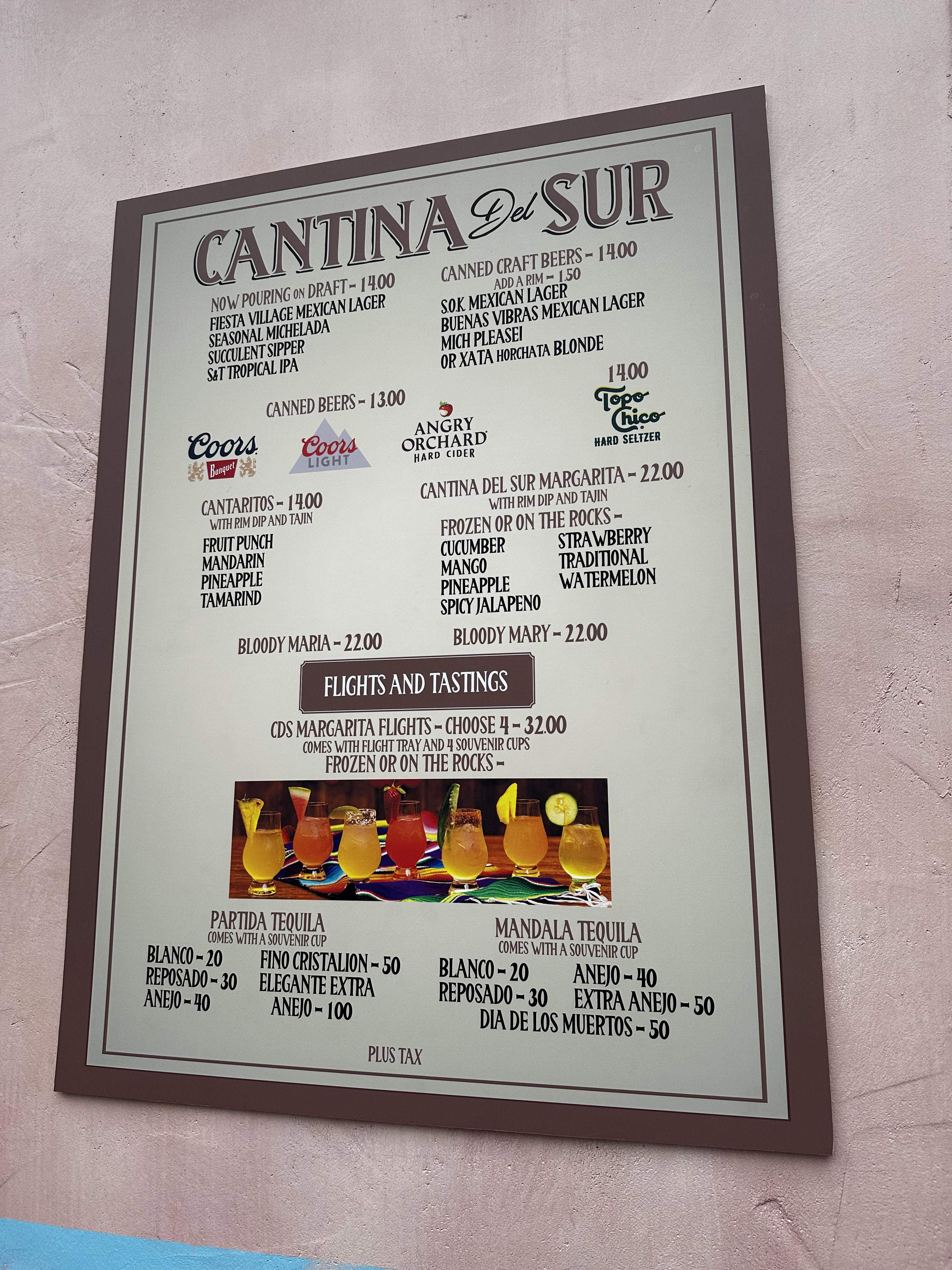 We tried some of the different margarita offerings from Cantina Del Sur. Nikki purchased a margarita flight while I opted for a full size spicy margarita. While some people might be unhappy with how much alcohol comes with these margaritas; I’m pretty sure they are inexperienced with theme park libations. Even with that, we felt as though we were more than satisfied with the product. Especially when it comes with some really cute and fun souvenir cups you can take home to enjoy.