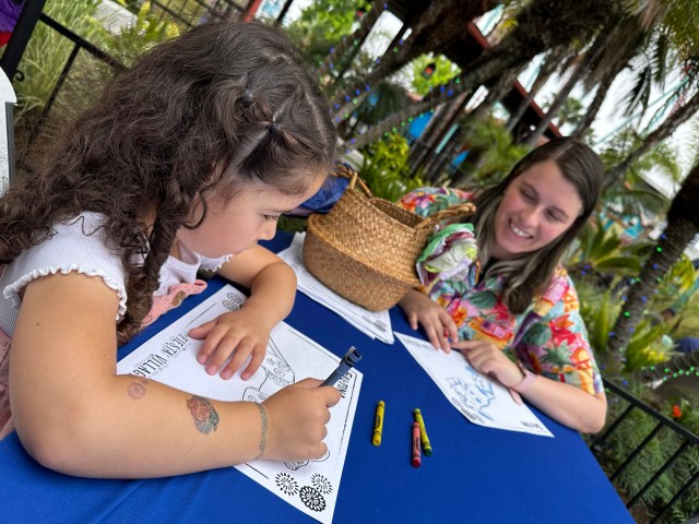As we approached the main stage, we could hear the live Mariachi music playing as the Bob Baker Marionette’s entertained the crowd. Guests could be seen at tables all around feasting upon the new foods within the land, enjoying a storyteller recounting whimsical tales of the alebrijes, and even taking a small break to color. While we did partake in some of the fun flat rides within the alebrije gardens area, the biggest draw for us was the food and drink offerings.