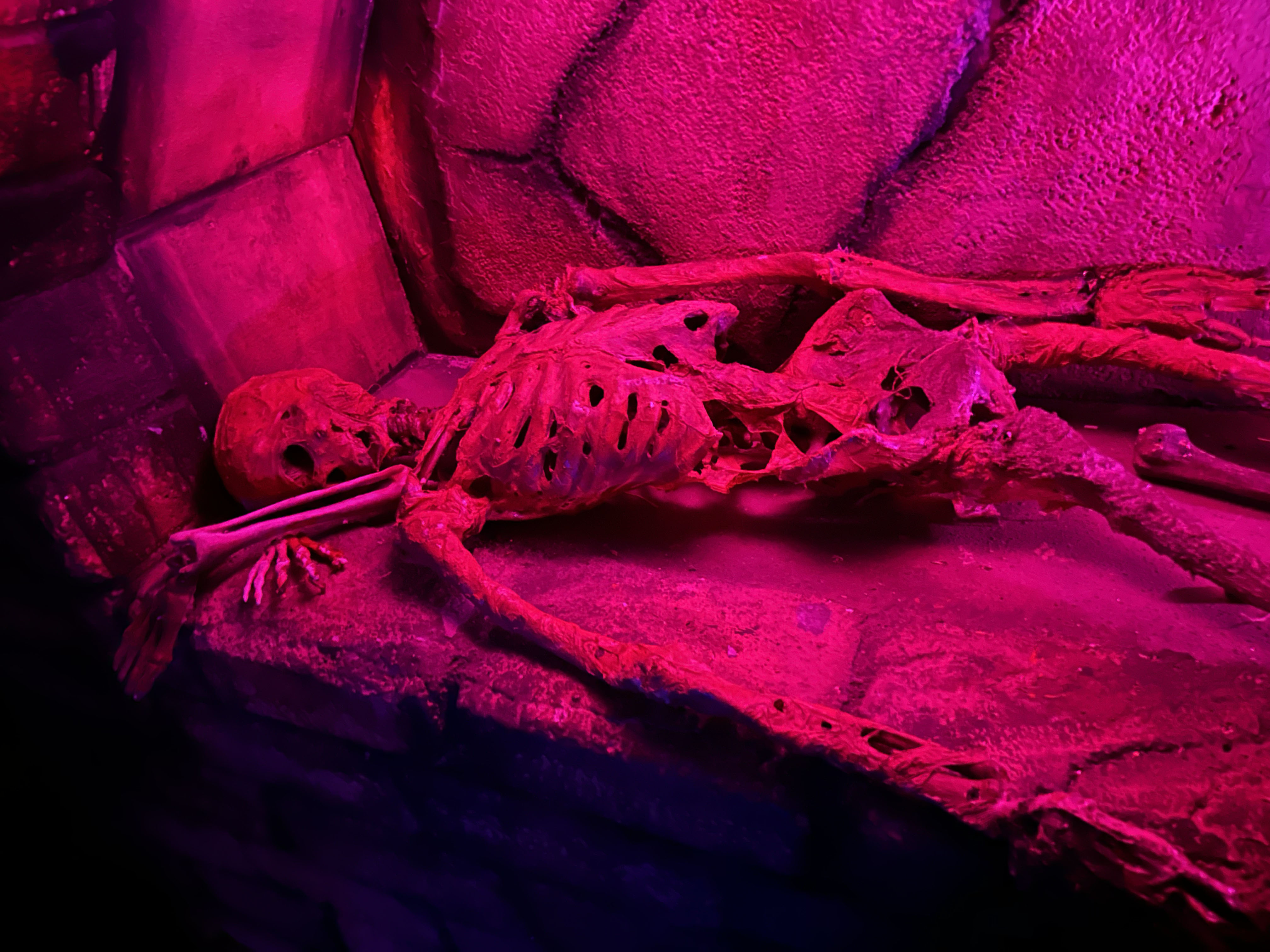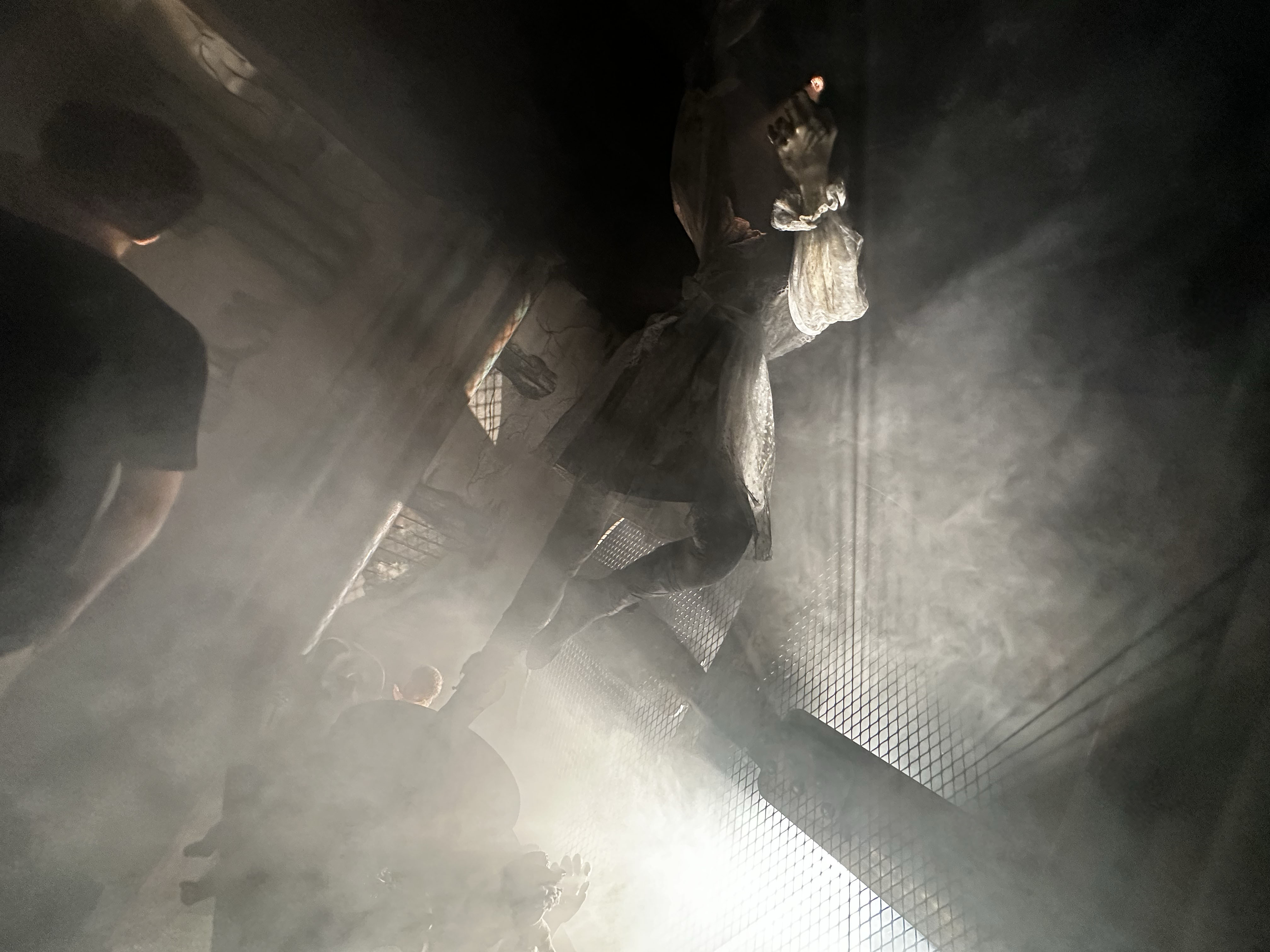 One thing I truly loved about the experience was that the scares weren’t always in your face, they were more about presence. Being approached by a menacing wizard in a large black cloak, calmly talking to you in a tone of voice that we can only describe as troubling, is somewhat intimidating. Especially when you’re cornered by them and another hideious creature of the realm. Which this actually happened to us and Nikki clung onto my arm with a death grip. We were actually being questioned why we came to the realm and if they could take the my arm…the one Nikki was holding onto at the time. While we don’t get scare too often anymore, it’s interactions like these that leave a last memory with us.