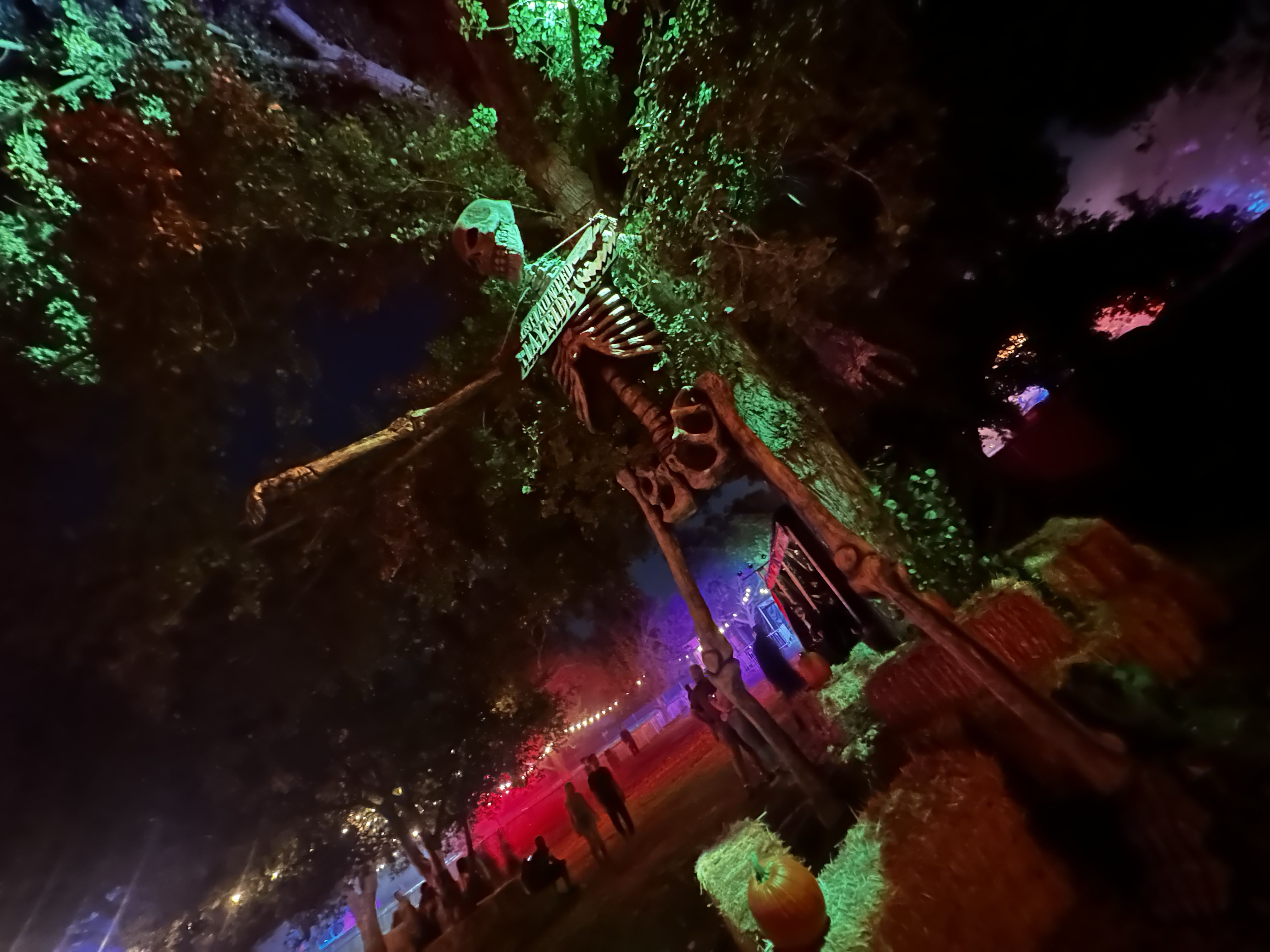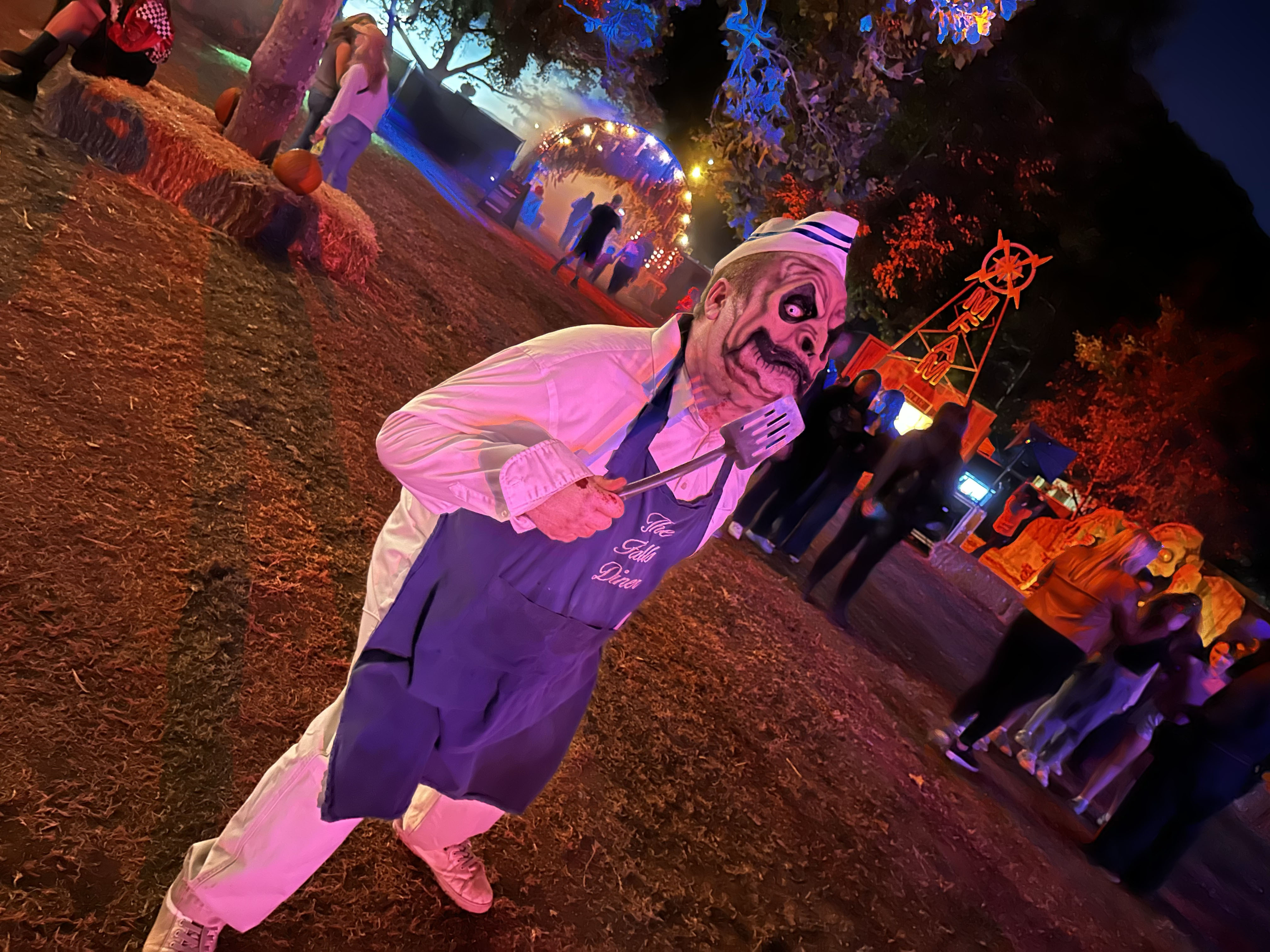 As mentioned earlier, we simply don’t scare easy, so it delighted us to learn that there were plenty of gags that were more entertaining and fun as opposed to outright scary. With that being said, we did have some people on our hayride that flopped right in the middle of our vehicle because they got scared! Our only issue with the hayride is its extremely loose connection to the story of Midnight Falls. According to the website descriptions the Haunted Hayride sits “Within the foothills of Midnight Falls, the leaves turn brown and the veil between the living and the dead is at its thinnest. The Witch of the Woods has cast her spell to summon the spirits of the underworld to cross over and assimilate into form. The Hayride leads to a thrilling adventure of horrors afflicting the town. Dazed within the spell cast upon them, the Witch commands her army of crops and flesh to seek revenge on the people that have casted her out. The Spirit of Halloween comes to life surrounding helpless victims brave enough to board The Hayride.” But in execution, the story is absent. I think having some more blatant references to Midnight Falls or even establishing every scene as a connected piece of story would be helpful in connecting the hayride to the overall experience of LAHH.
