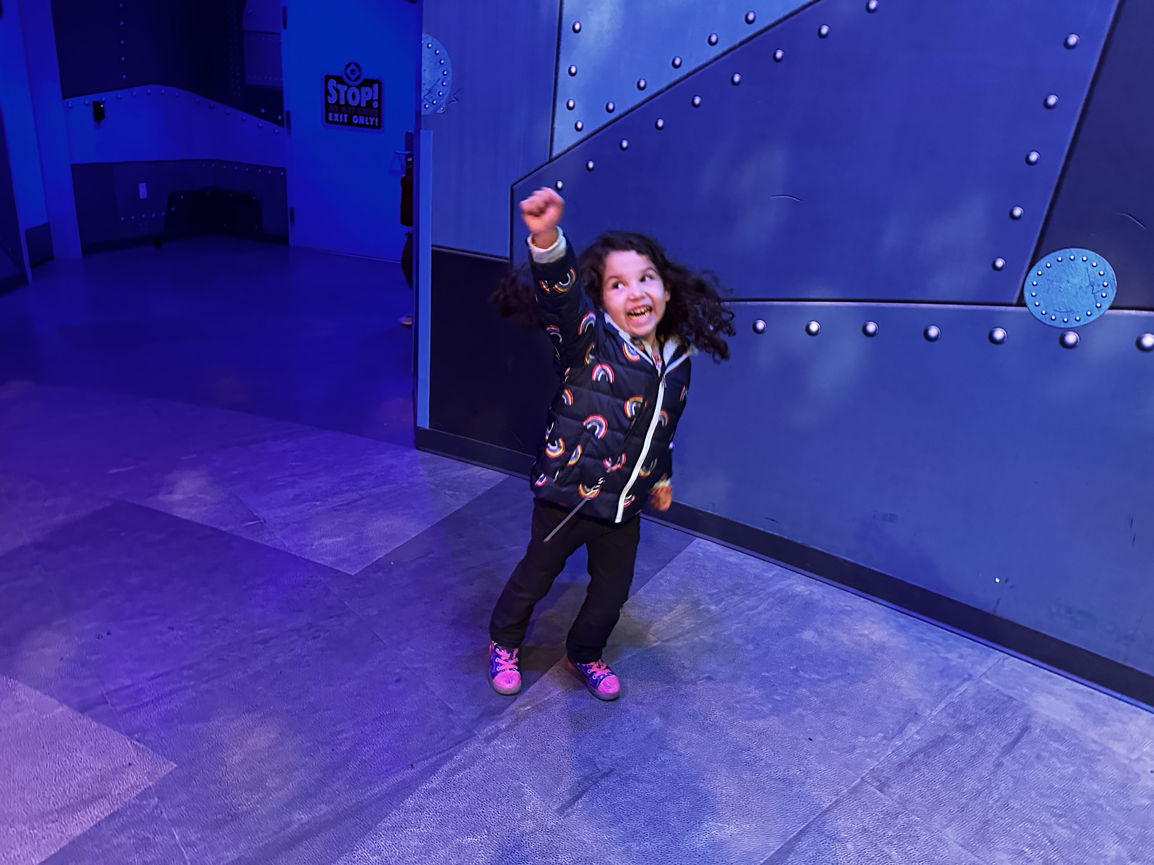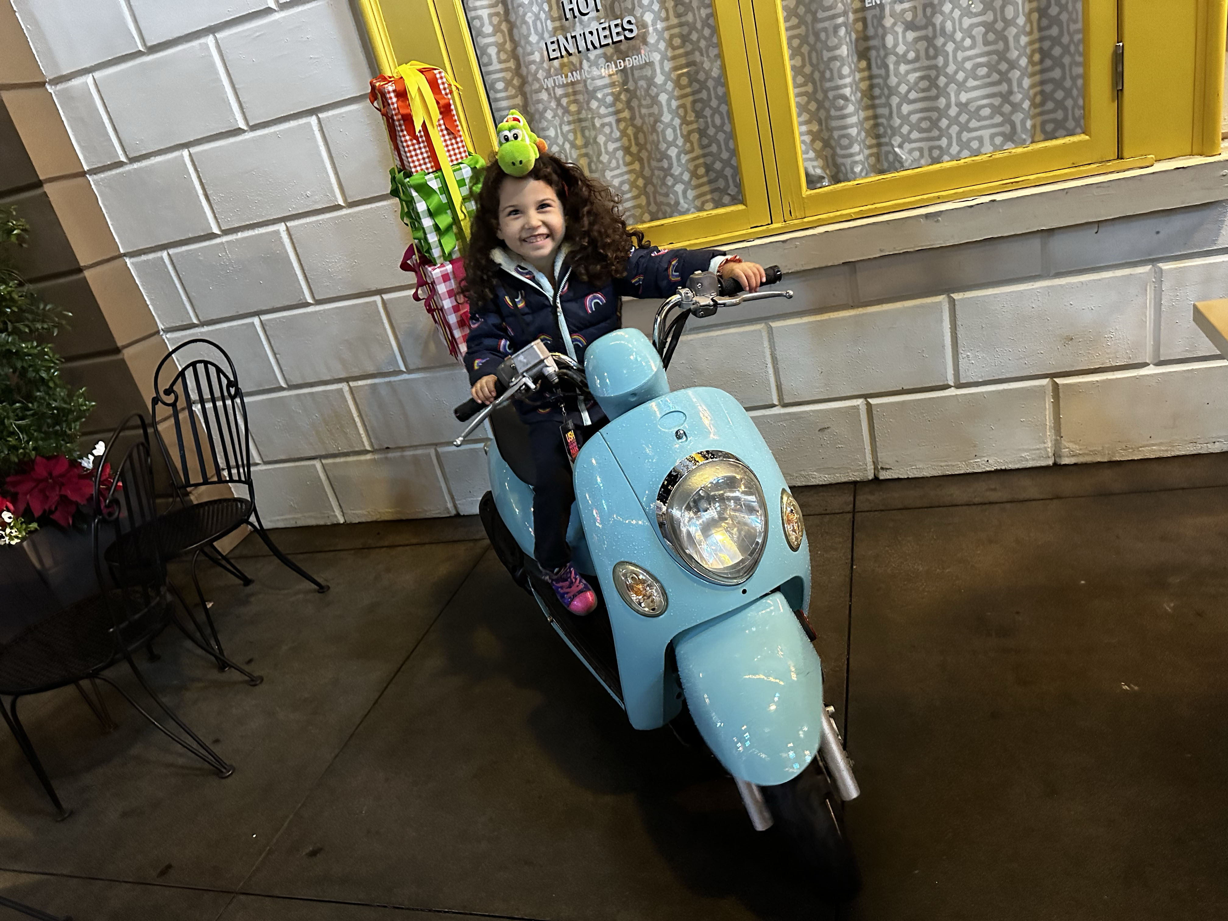 With that being said, The Grinch, Max and any of the Grinchmas offering were the only experiences that had significant waits. When we arrived, The Grinch has a 2 hour wait in the Universal Plaza! But, there is another way to meet the “jolly” green Grinch. If you head down to the Lower Lot, you can also meet the Grinch right above the Jurassic Cafe. This is actually (during daytime hours) a dedicated Grinch Meet and Greet location ONLY for passholders (Nov. 24-26, Dec. 2-3, 9-10, 2023 Select Times from 12pm-6pm) This location saved the day because this is where we were able to meet the Grinch and our kiddo couldn’t have been happier meeting him.