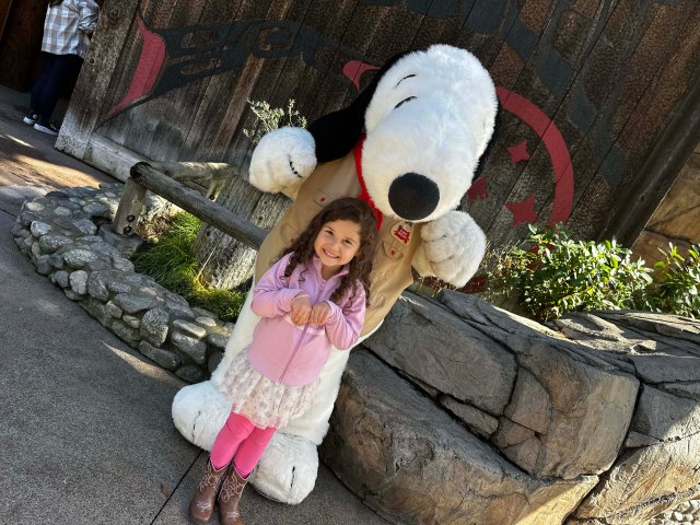 Next, we made our way down towards the former Mystery Lodge entrance to meet everyone’s favorite Beagle, Snoopy! Once again, this was another fantastic meet and greet! Snoopy was being so silly with our kiddo, and you can tell that is just made her day.