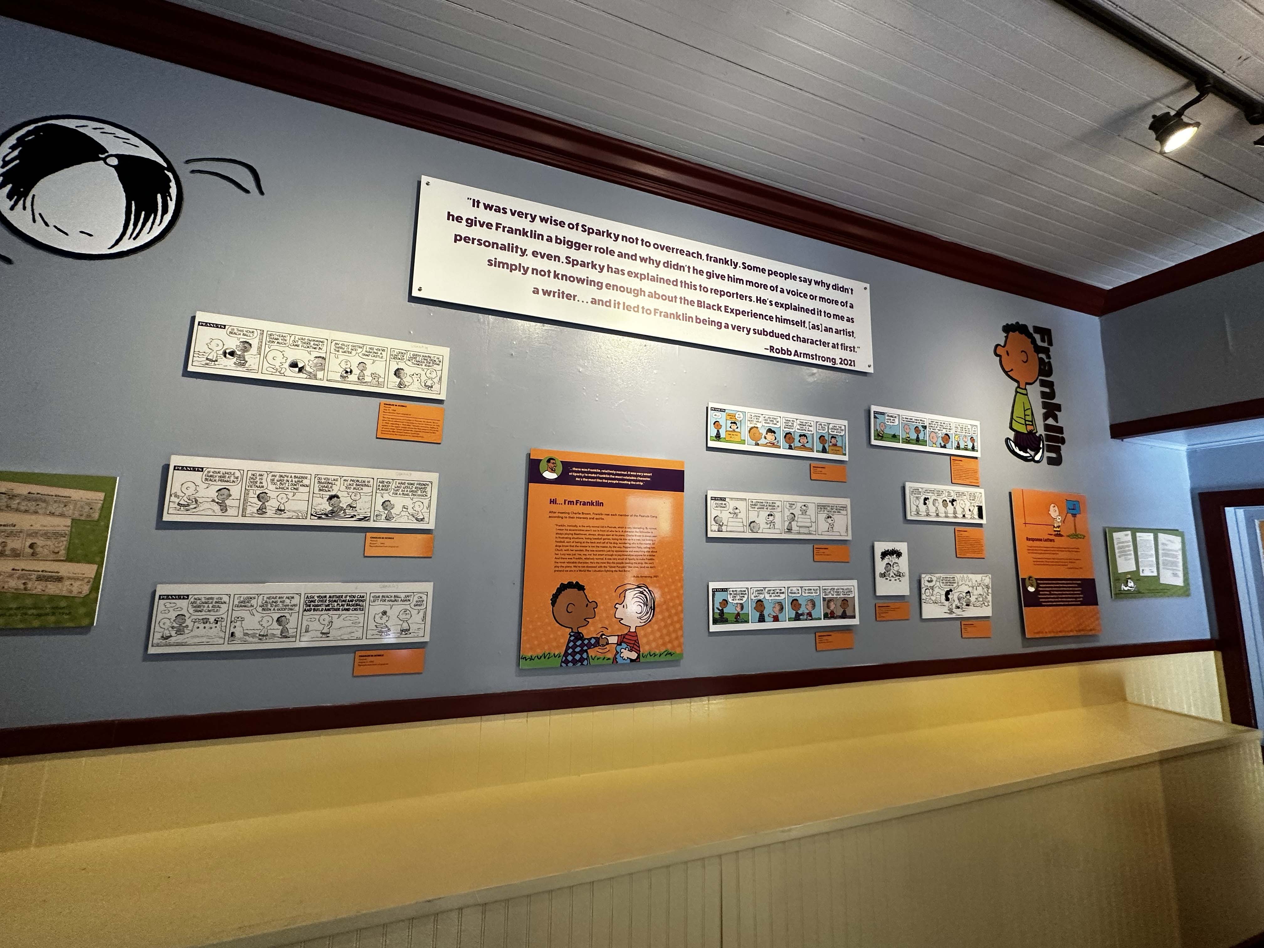Just around the corner from the Livery Stable was our next stop, Town Hall! This year the Town Hall Peanuts exhibit was dedicated to Franklin! It was nice to see this character get some attention, and we had another stellar meet and greet. Another amazing part of this exhibit, and a favorite of our kiddo, was the light box where you could trace your favorite Peanuts characters and create your own little comic strips. Such a simple thing, and yet we saw so many kids (and adults) loving this activity.
