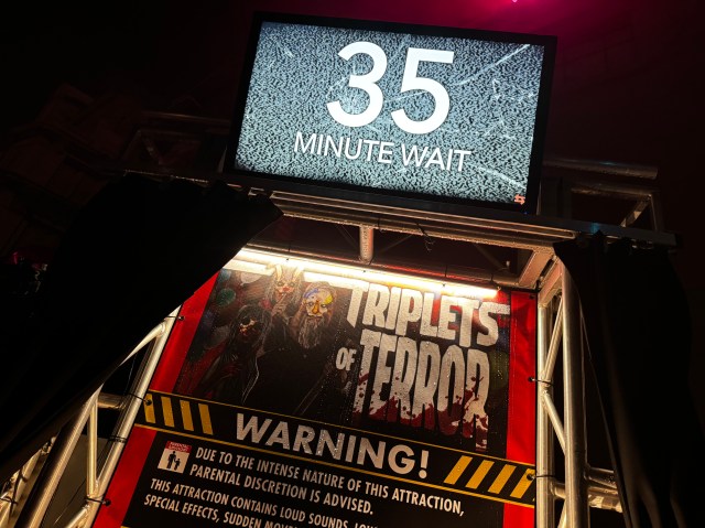With Triplets of Terror, we loved the story and how absolutely gory it all is. It’s gory to the point of hilarity! We found ourselves giggling at the sign that says “Happy Birthday” spelled out in someones intestines. Additionally, we love the scares in this house. Mainly because of the fantastic trigger noises for the 3 titular characters. The trigger noises added to the experience by helping establish specific characteristics to the 3 killers and helping them stand out respectively. Everyone we encountered ended up having their favorite of the 3, which is probably not how Universal saw it happening. The scares are also right in your face even with the house not feeling totally claustrophobic. Which I must give massive props to the cast for not only getting in guests faces, but also bringing a certain level of physicality to each character. It also felt like there were so many scare in this house as well. I’m not 100% sure to convey exactly how this house made us feel. There is something about the trigger noises and overall sound design that had us completely dorking out. The distinctive personalities and well thought out approach to the characters felt very cinematic at times.
