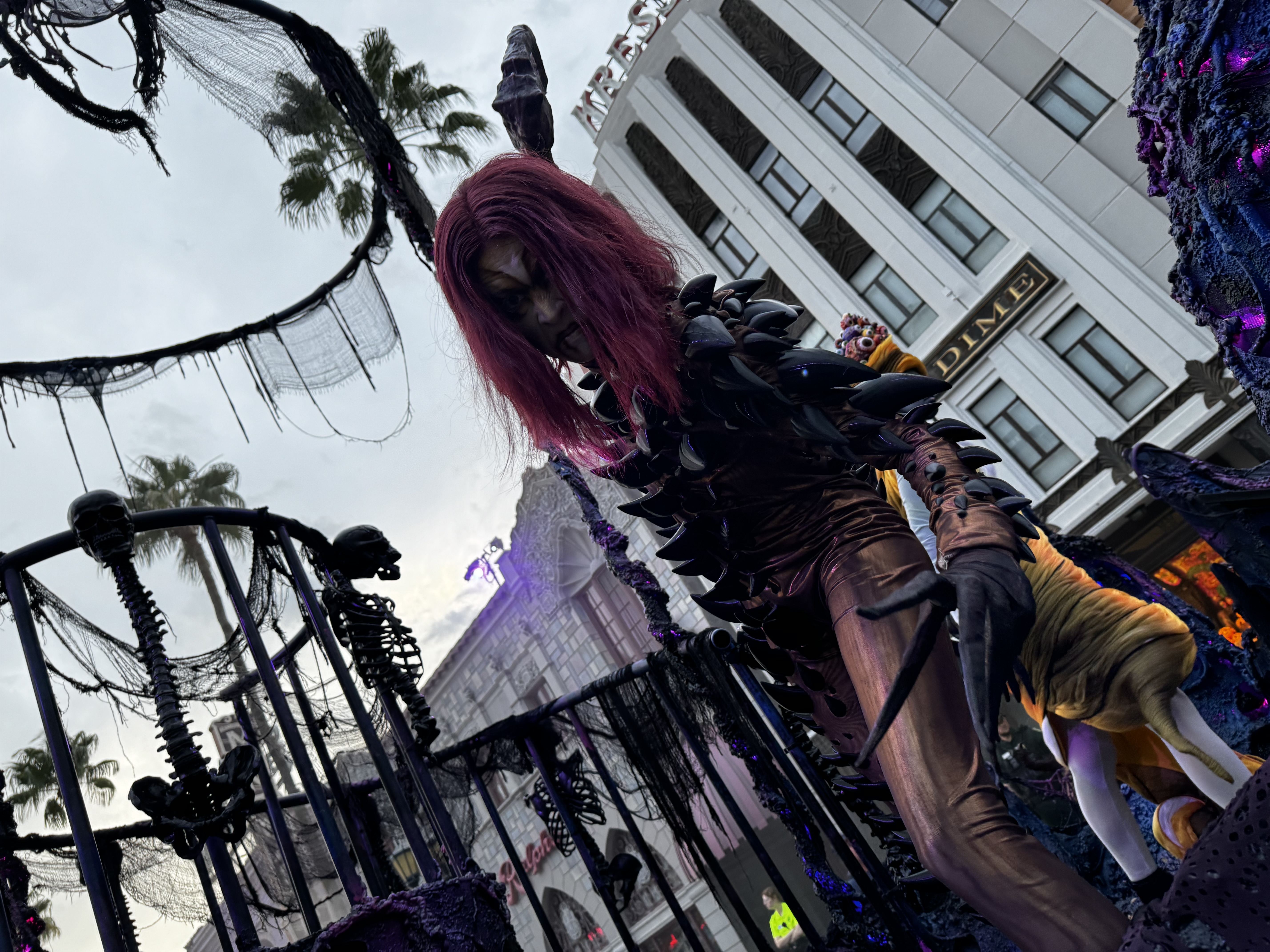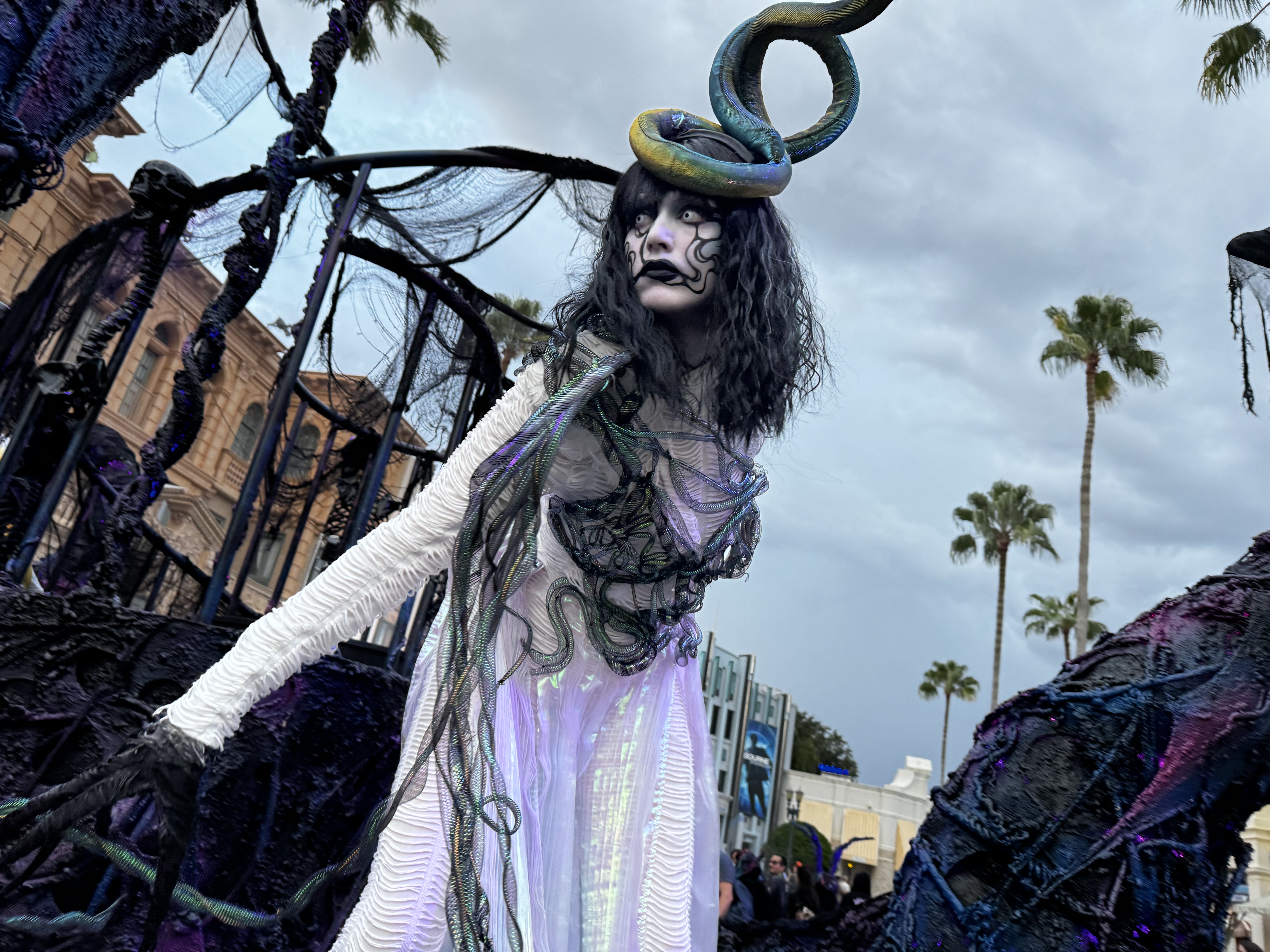 It’s the type of monster that isn’t overtly scary, but just gets under your skin and gives you the creeps. Which sometimes is much worse than all out scares. If you’re left thinking about it hours after you leave, we think that constitutes a win. Additionally, there were “show moments” where 3 other major characters on a float almost controlled the minion monsters. Causing them to writhe in pain. It completely threw us off when it happened. In all honesty, we just left this zone smiling from ear to ear because of it’s haunting tone and otherworldly monsters floating on the fog.