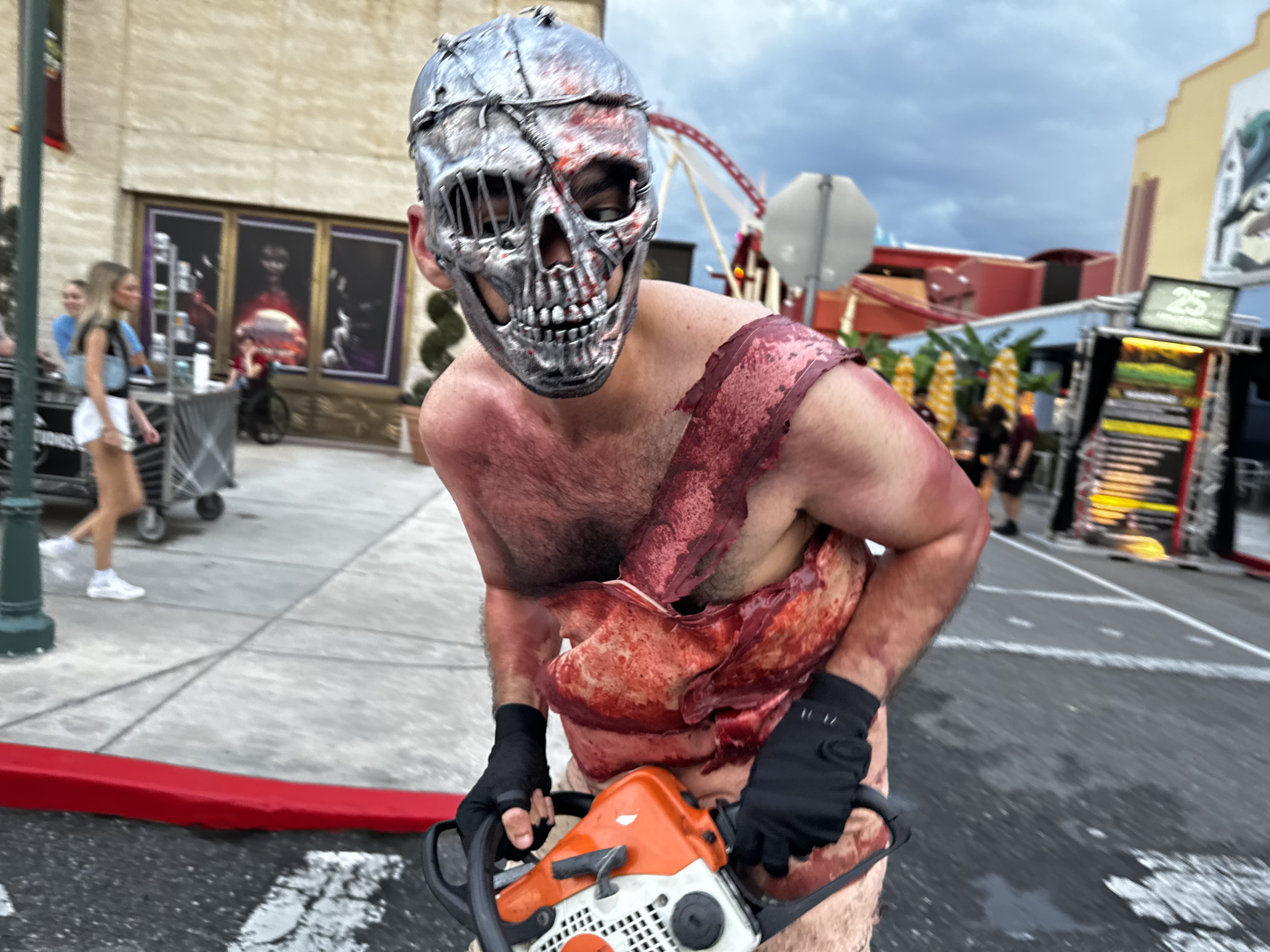 Aside from making us feel right at home in Florida with all of the chainsaws, we enjoyed the “live mic” aspect to SINIST3R and SURR3AL. Greeting or sometimes harassing guests as they traverse the zone. This gives the zone a bit more personality and unpredictability. It’s not often you get a personalized experience with a monster at HHN. It’s also nice to see both SINIST3R and SURR3AL pose for photos as well. It’s the best greeting guests can get as they enter the event…a very HHN style greeting at that!