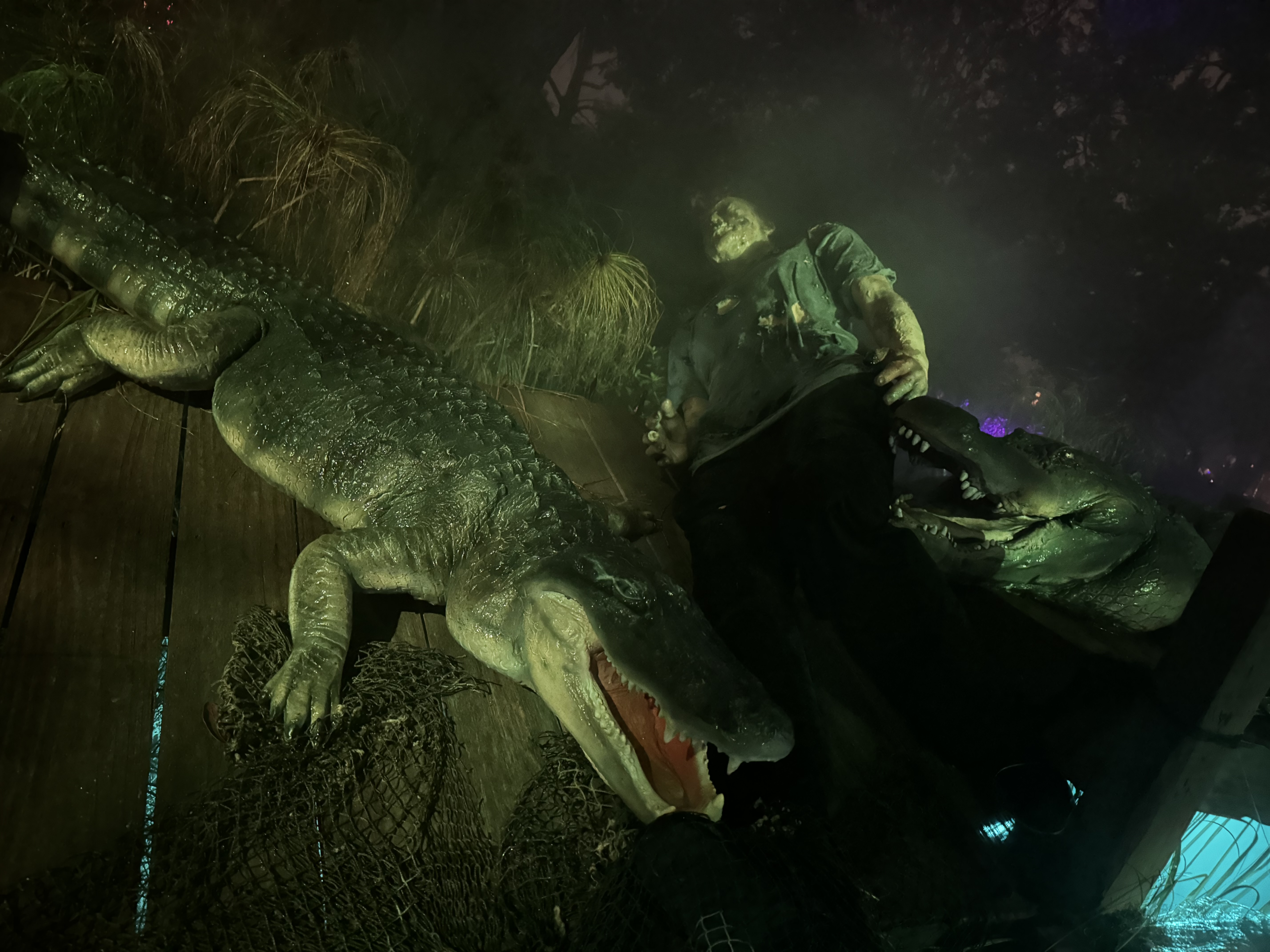This zone is located within the Central Park area of Universal Studios Florida. While this zone is small and condensed, it packs a punch. Although these are zombies, they are fast and vicious. It’s also the only zone that truly packed itself full of fog to the point where you couldn’t see anything in front of you. In fact, this image of the gator below was the only picture that we were able to capture that was clear! While some of the other zones have the ability to be “instagramable” this is purely about the scares.