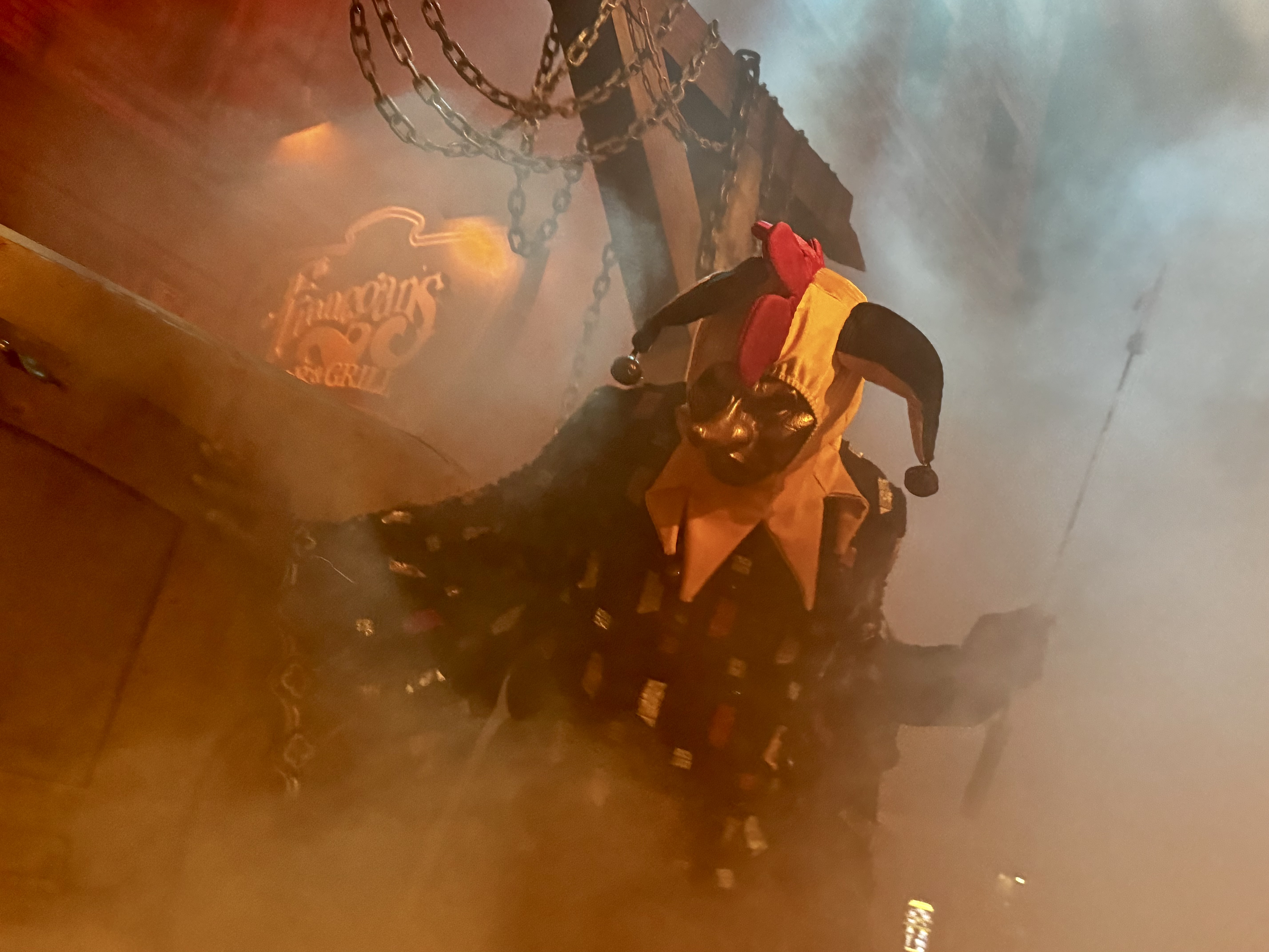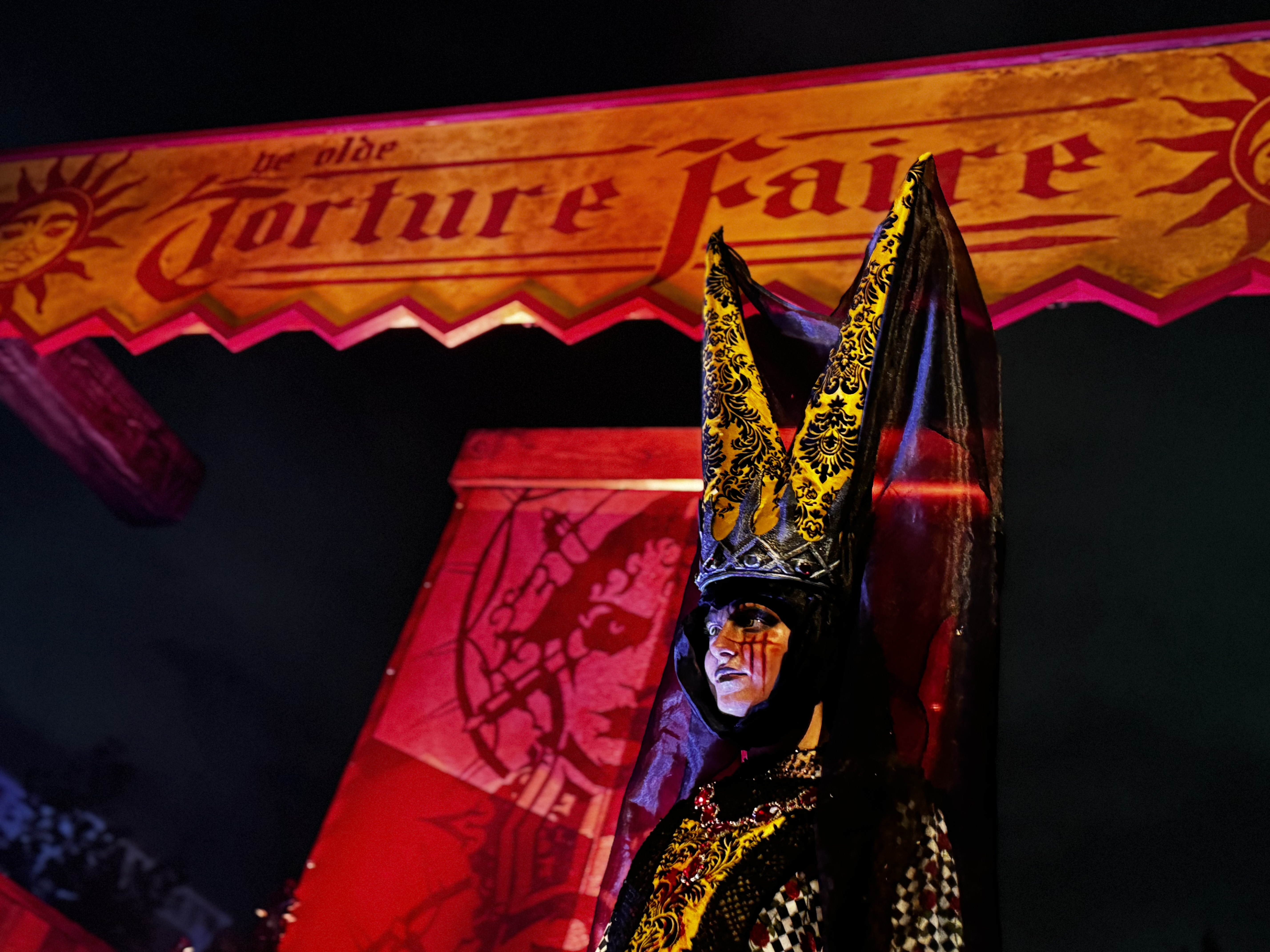 There were so many little moments to catch from not only the roaming monsters but those upon the various stages. The King and Queen of the realm were putting someone within an iron maiden and the Jester was torturing someone within a brazen bull…all while laughing. Honestly, it just left us smiling and giggling. There is something about how much delight these characters found in putting people through medieval torture that we found to be incredibly fun.