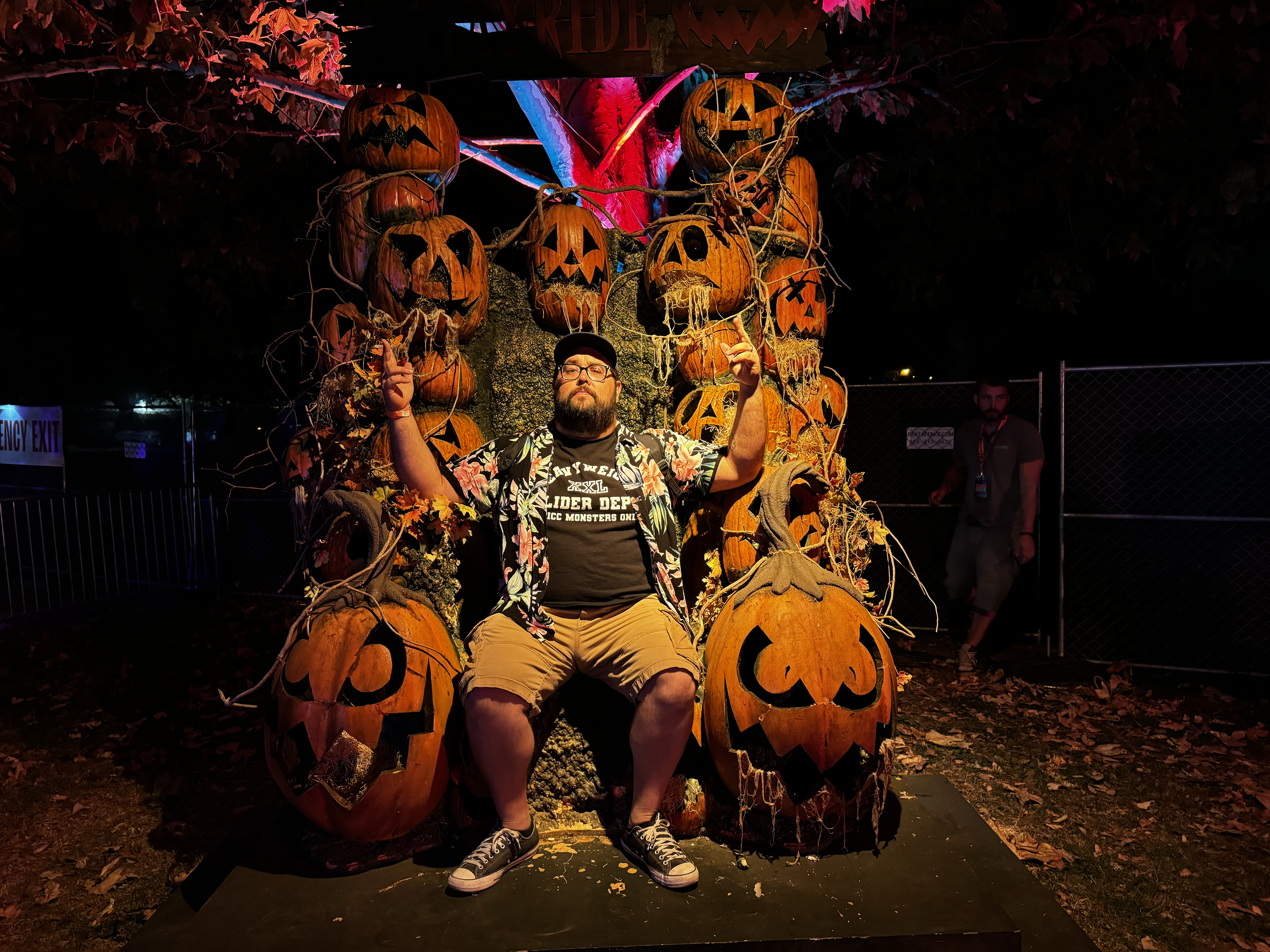The Hayride is also fantastic this year, offering a plethora of different environments from the town of Midnight Falls and some very fun scenes. While we don’t find it particularly scary in the slightest (keep in mind we are dead in inside) we did find it charming. We also really loved the seating arrangement so people don’t find themselves sitting on the floor anymore. Additionally, in prior years we’ve had issues with staffing. This year, it felt like the Hayride was staffed well, so the experience felt cohesive. The only issue that I felt was pacing. There were some longer gaps between large sets, which I’m sure is purposefully done to reset moments. If this is the case, there needs to be more monsters in-between the larger moments to help keep guests on the edge of their seats. They can’t be given time to relax between scenes or else the whole experience feels like it lacks energy.