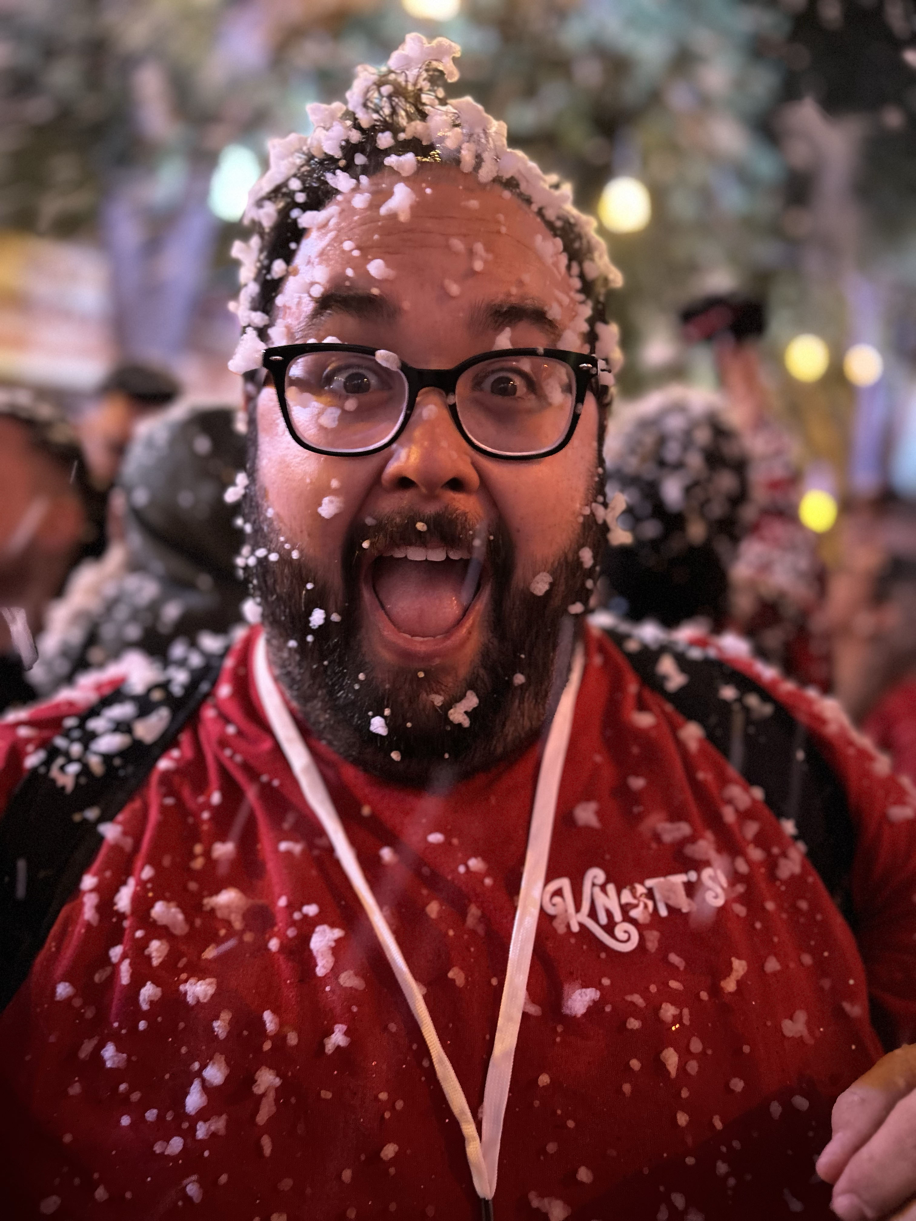 And of course, it wouldn’t be Merry Farm without a couple special holiday offerings. You have the Tree Lighting Ceremony & Snow and Glow in Ghost Town. Both a must see! For us, Snow and Glow takes the cake. Knott’s doesn’t mess around with their “snow” and we’ll take it over Disney’s any day! Something about the cold air, wonderful music, and lights in Ghost Town; create the perfect atmosphere for the holidays. Also, it makes for some wonderful pictures!
