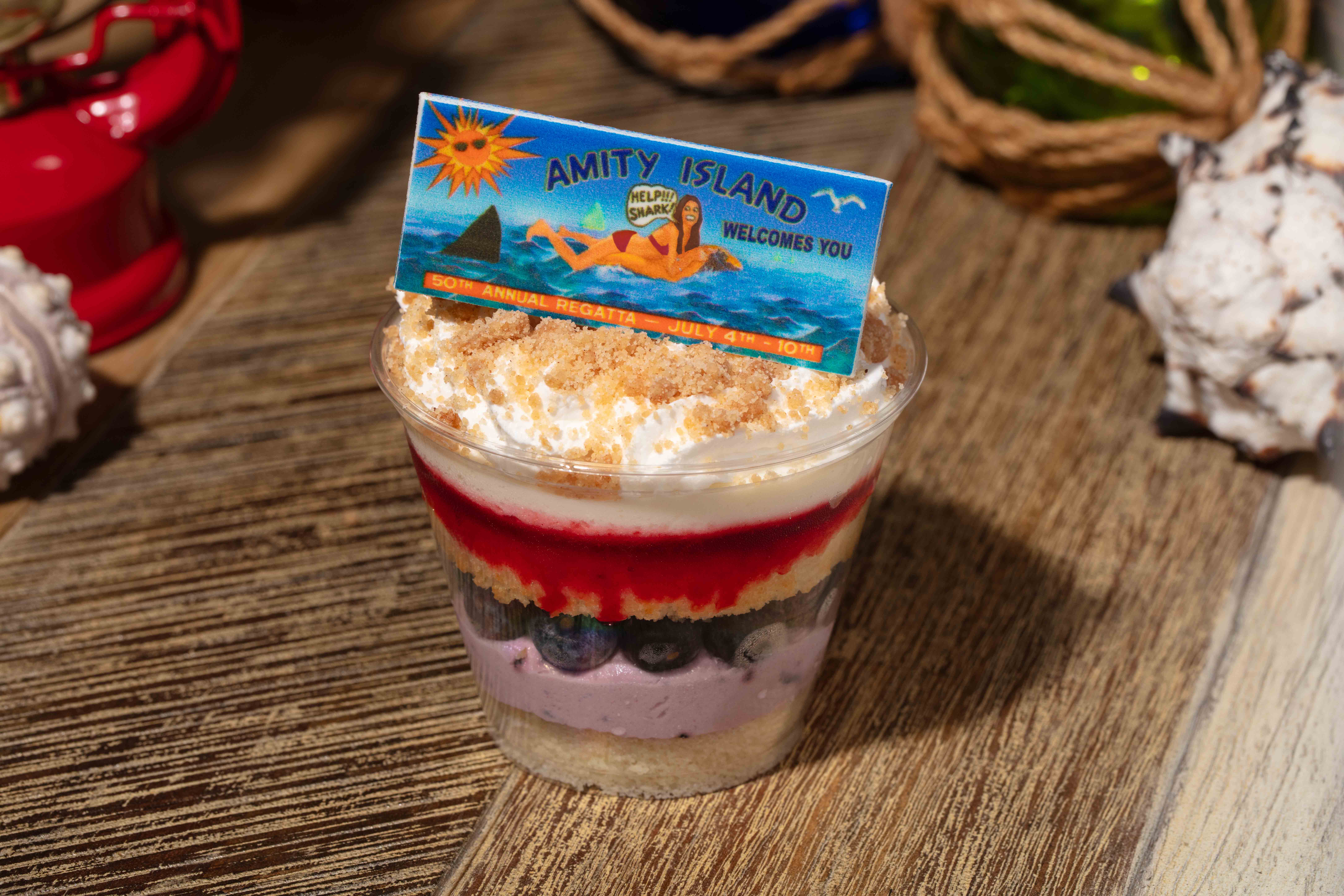Hollywood & Dine, located just inside the theme park’s main entry, will transform into Amity Island Cafe, serving up a menu fit for a great white. Menu and beverage highlights will include Lobster Roll, Vegan Crab Cake Sandwich, Fish and Chips, Fish and Chicken Basket, Shark Bait Burger, Shark Fin Funnel Cake, Amity Island Parfait and Amity Beach Lifesaver Donut, as well as The Shark Bite cocktail and Amity Open Water, a non-alcoholic beverage.