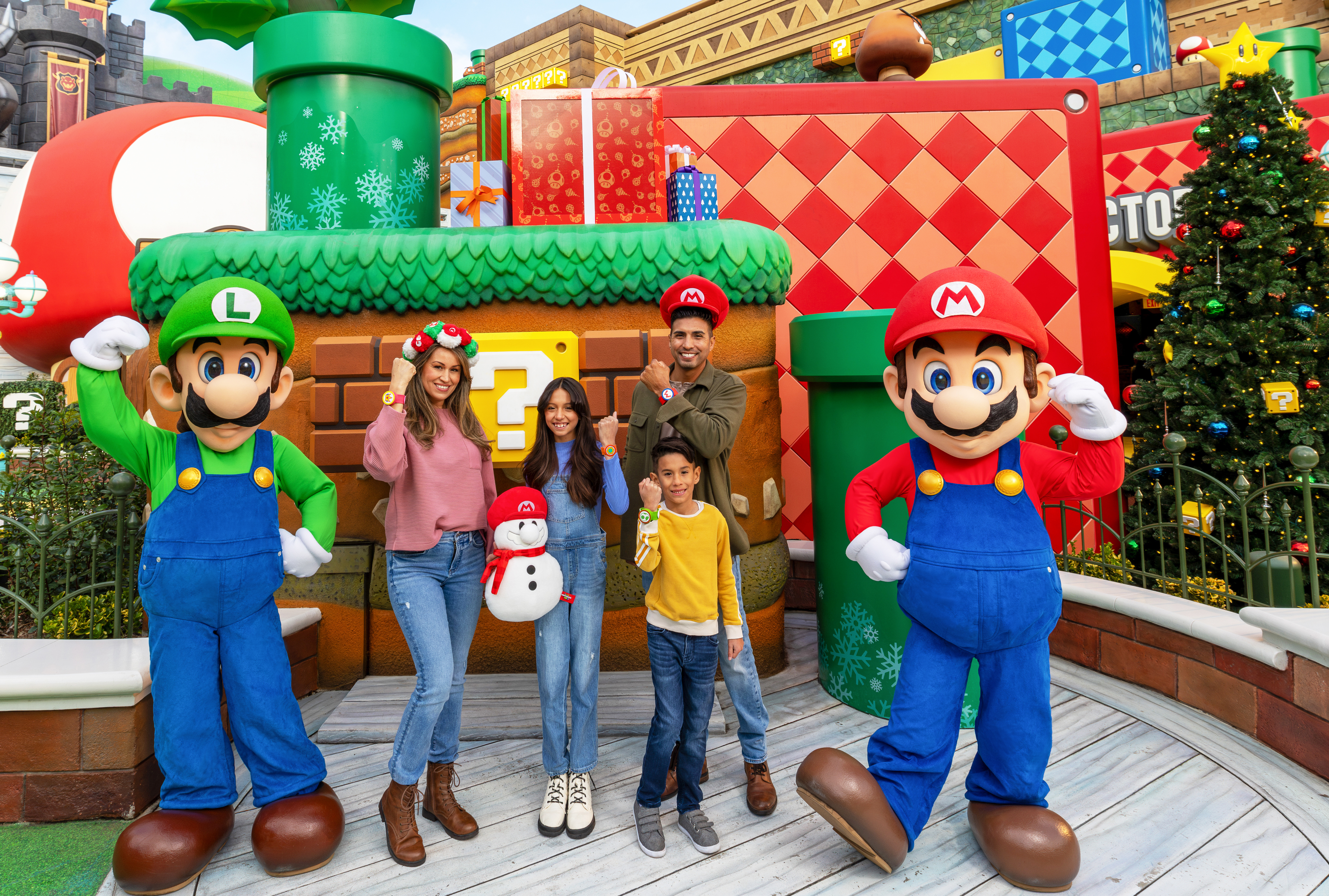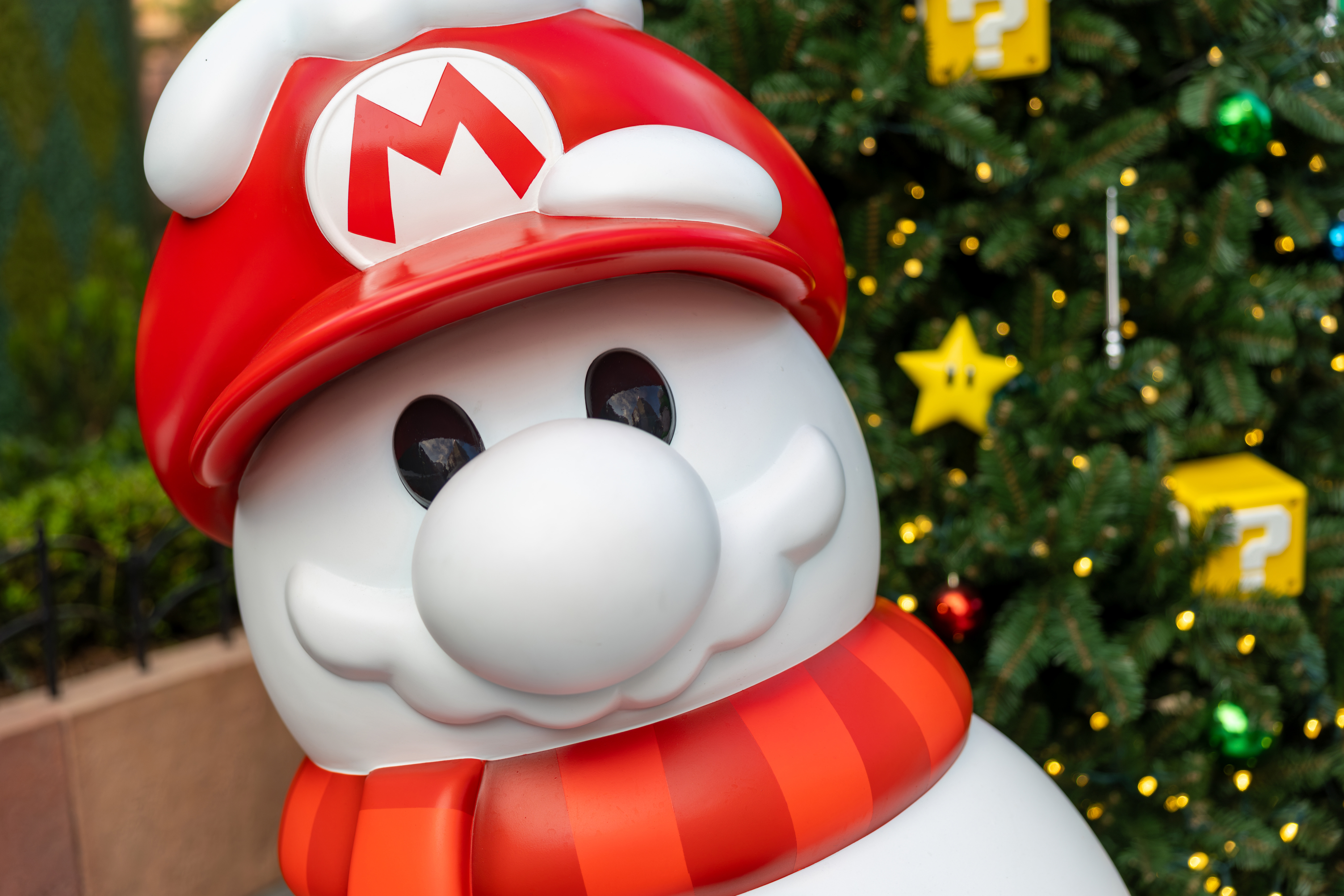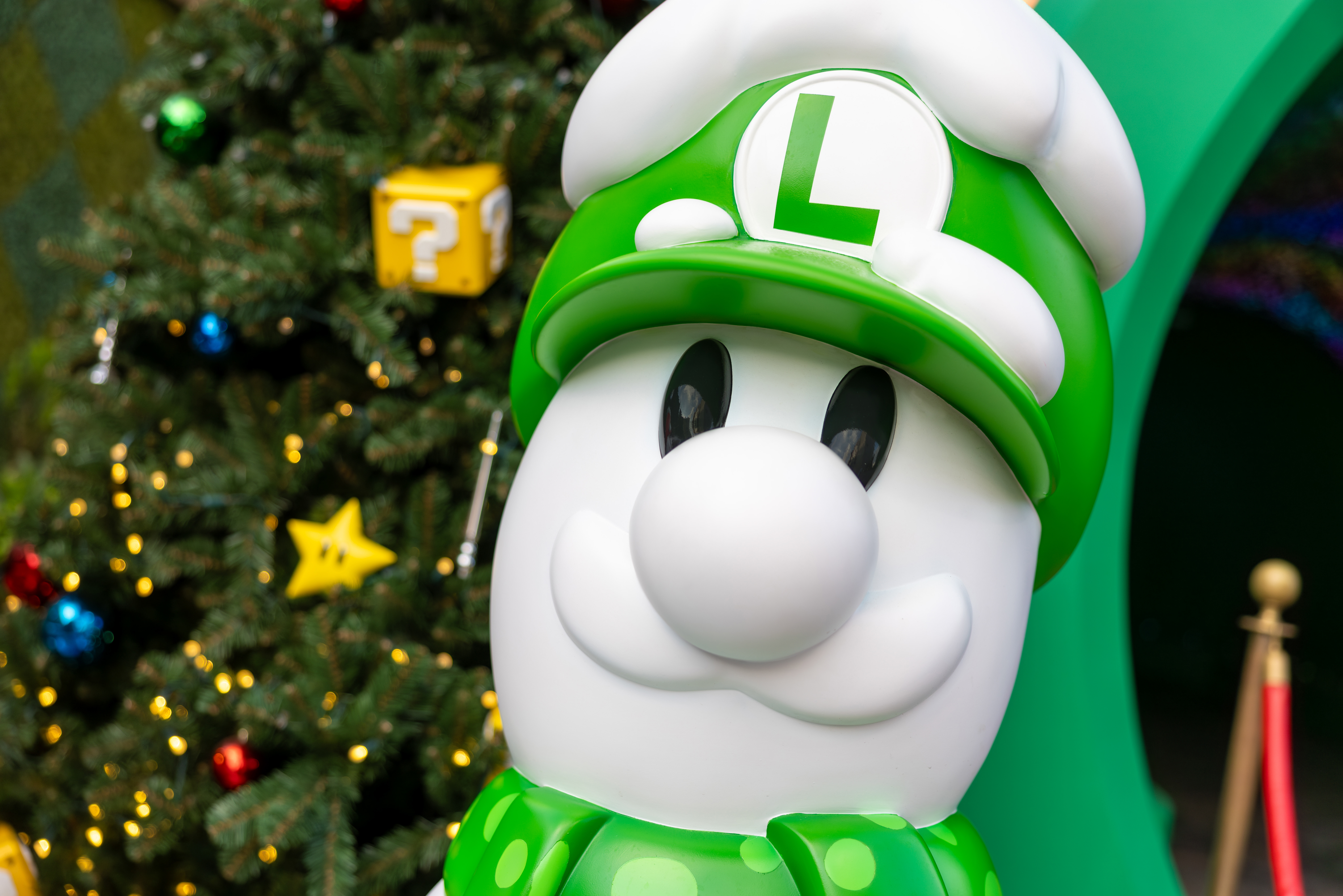 Before stepping into the Mushroom Kingdom at SUPER NINTENDO WORLD, guests will encounter two cheerful snowmen, one sporting Mario’s signature red hat and scarf, the other donning Luigi’s green cap and scarf, alongside a sparkling tree crowned with a Super Star. Guests can also explore a selection of special holiday merchandise available at retail locations throughout the theme park, including the 1-UP Factory™ shop within the land.