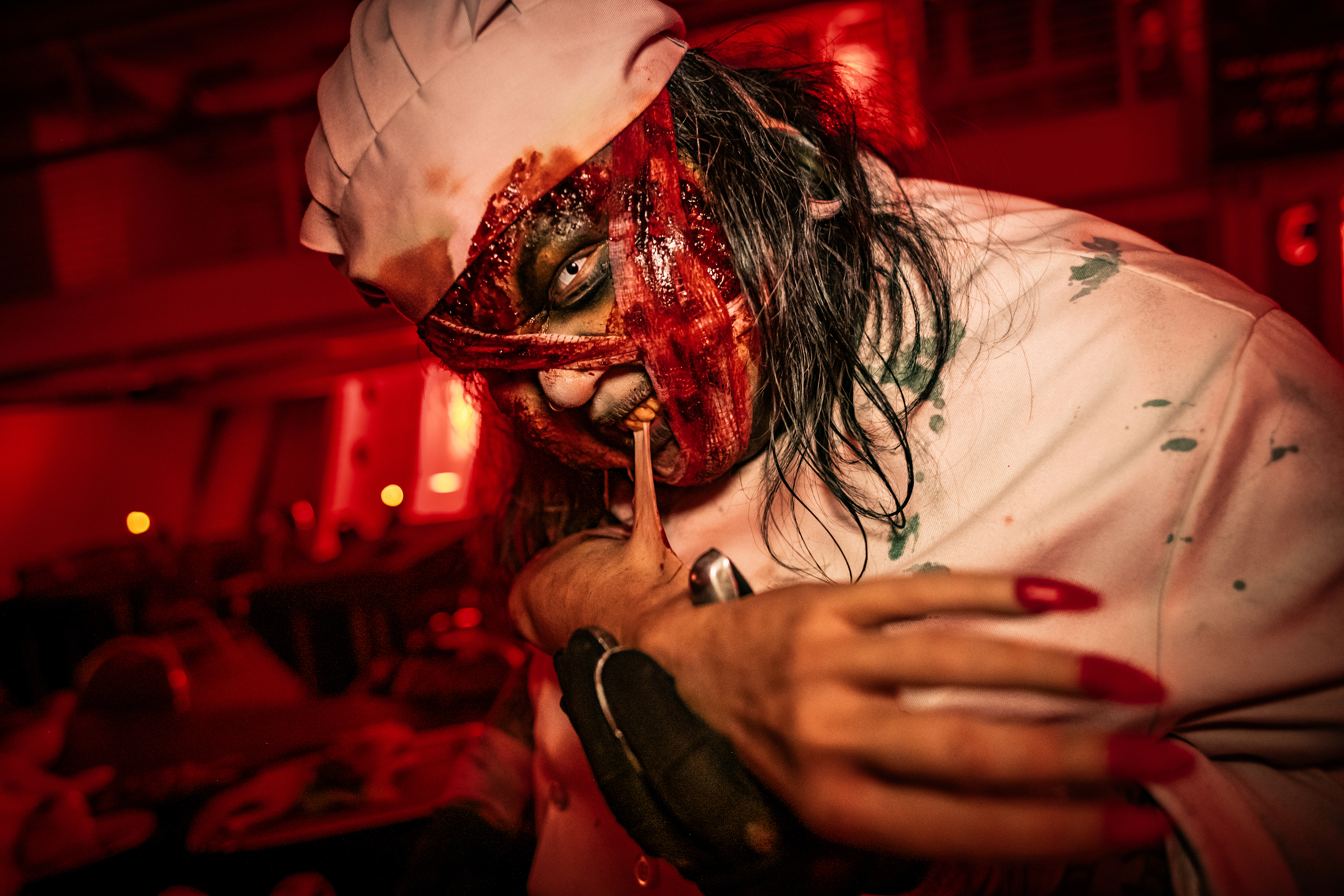 Sweethearts’ Slaughterhouse – Interactive experience with a small curated treat, themed storytelling, and character interaction: Peek past swinging kitchen doors, thread the prep line between hanging “orders,” and decode the Chef’s love-letter menu before you’re offered a bite-sized “tasting.” Decide if you dare a nibble… before the dessert bites back.