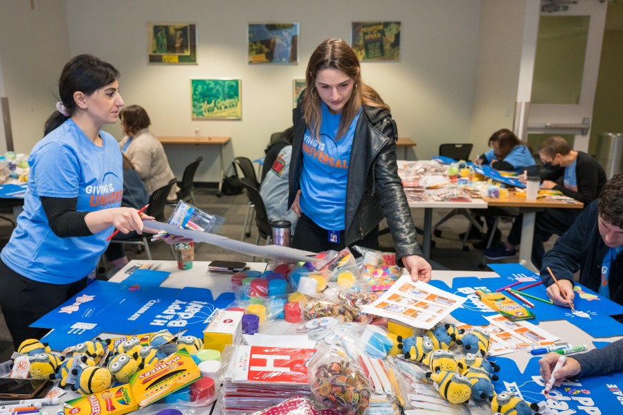 On November 9th, Universal held their annual "Day of Giving" event in front of Universal Studios Hollywood. Universal teamed up with Operation School Bell to give over 300 homeless school children shoes, backpacks, toys and more. If you haven't heard of Operation School Bell, they provide more than 6,700 underserved elementary-age school children in LA Unified School District (LAUSD) with new school clothes, enhancing their self-esteem and chance to succeed. In addition to ordering, preparing, and organizing the shoes, clothing, and other items, OSB fundraise to purchase these items. OSB member volunteers contribute more than 25,000 service hours annually to make all this happen! They work one-on-one with the children, making sure that the clothing fits well and that each child feels valued and special.