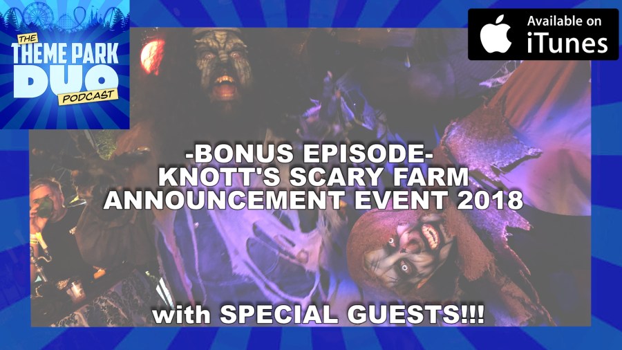THE THEME PARK DUO PODCAST: SUBSCRIBE ON iTUNES, GOOGLE PLAY, STITCHER, iHEART RADIO AND SPOTIFY! On another special Halloween episode of The Theme Park Duo Podcast, The Duo talk about Knott's Scary Farm for 2018! The Grandaddy of all Haunts, Scary Farm returns with two new mazes, a new scare zone, and a ton of …